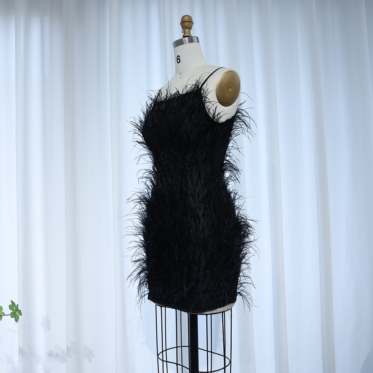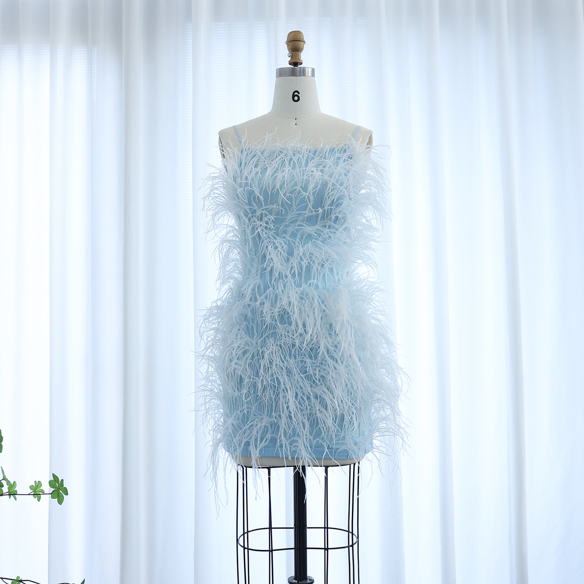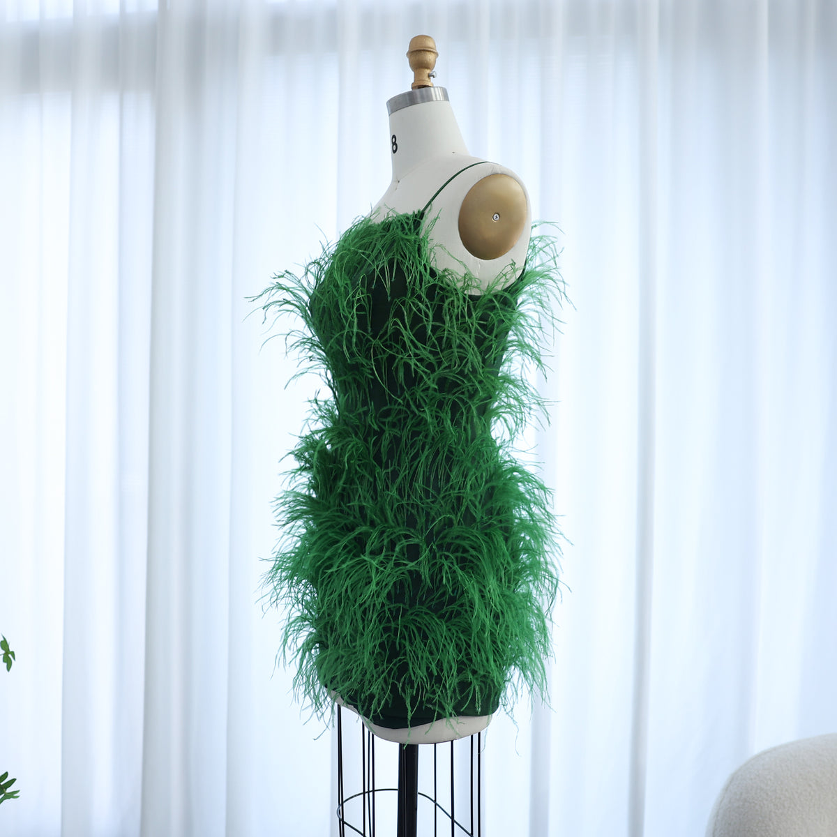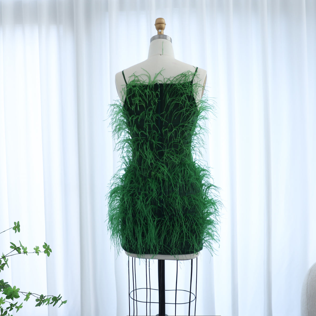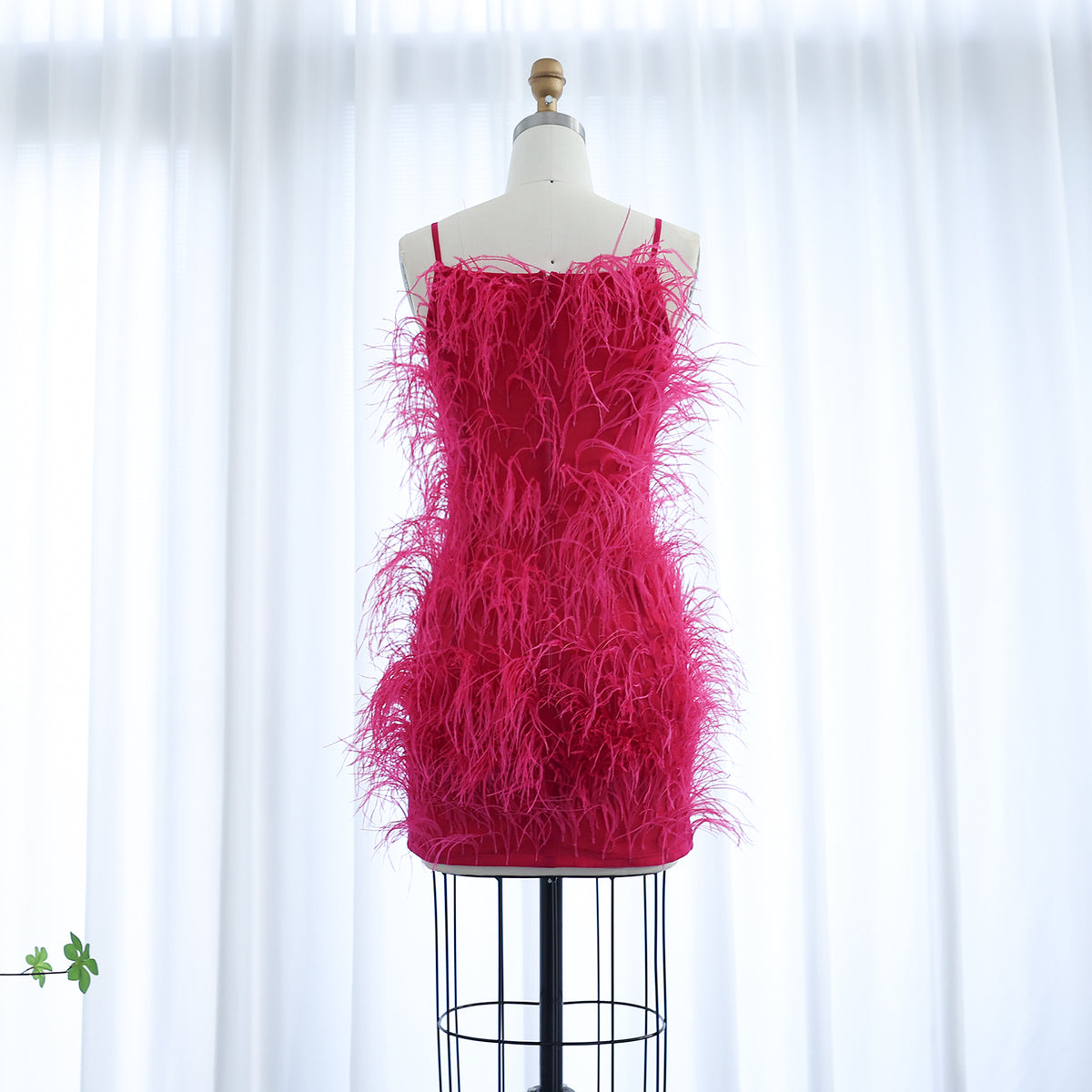 Luxury Feather Fuchsia Spaghetti Straps Mini Evening Dress SF089
