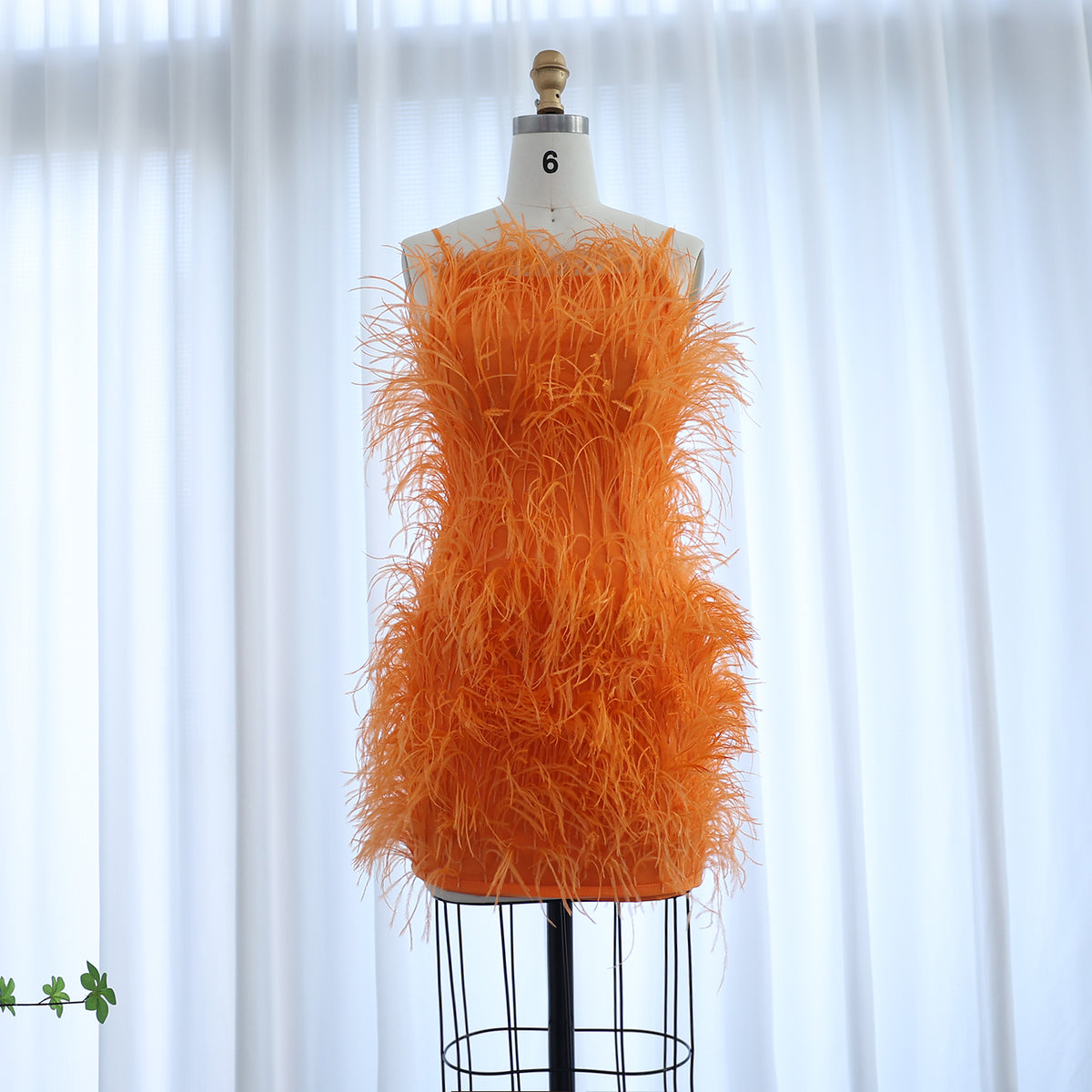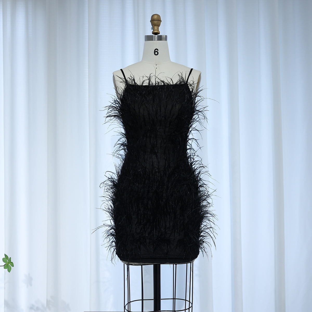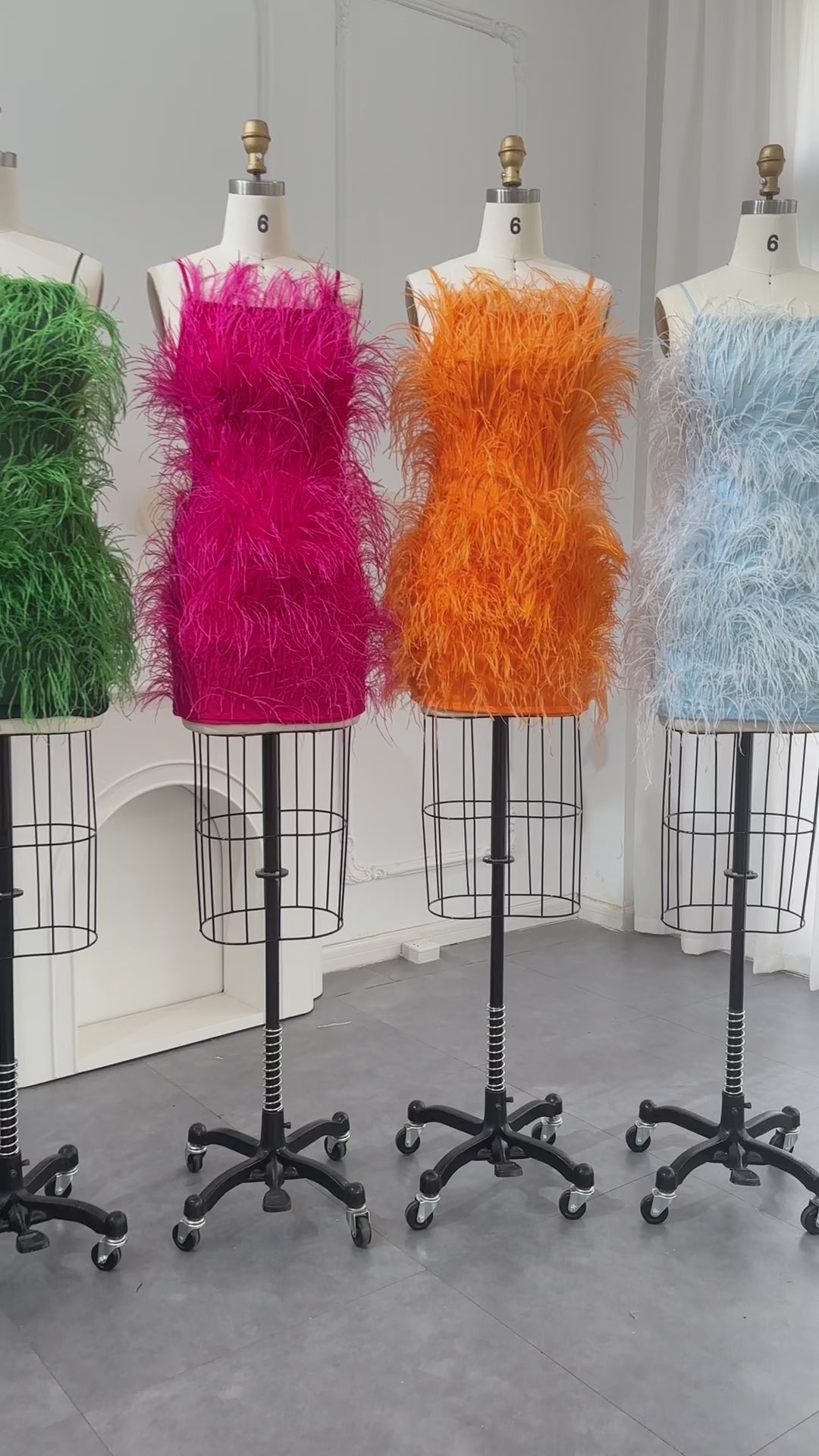 Indulge in luxury with our Feather Fuchsia Spaghetti Straps Mini Evening Dress SF089. Crafted with exquisite feathers and designed with delicate spaghetti straps, this dress is the epitome of elegance. Perfect for any evening event, this dress will make you stand out and feel confident.