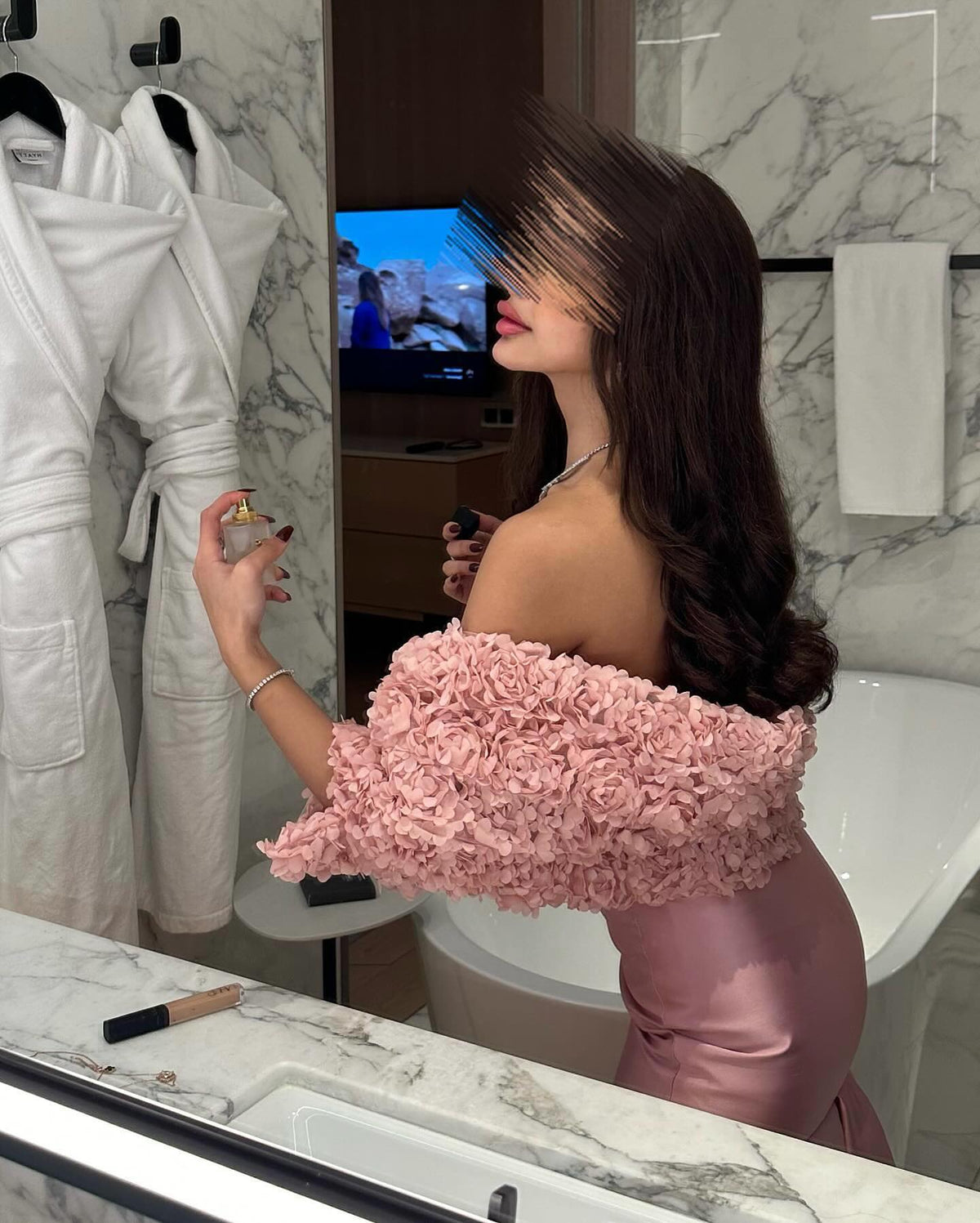 Luxury Pink Evening Dress with 3D Floral Capelet SF203