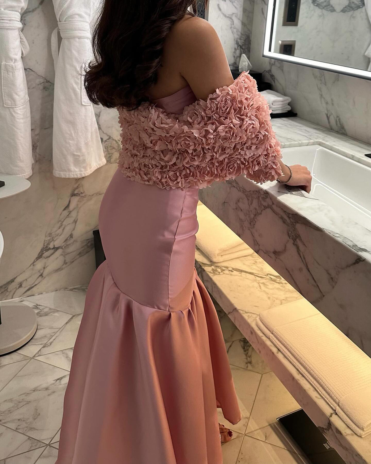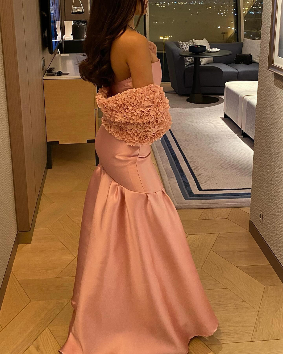 Elevate your evening wear with our Luxury Pink Strapless Evening Dress. The 3D Floral Capelet adds a touch of whimsy, while the strapless design exudes elegance. Made with high-quality materials, this dress is perfect for special occasions.