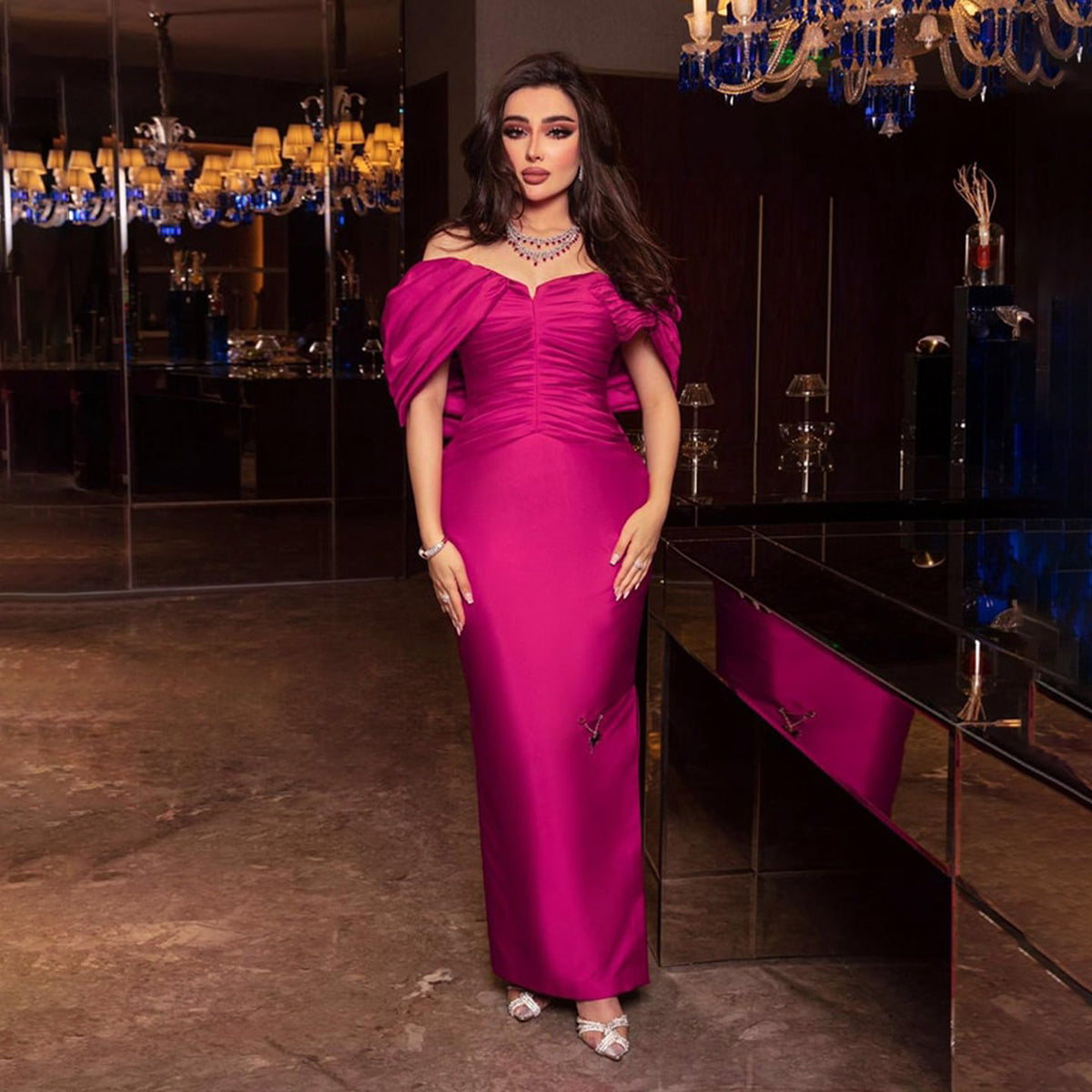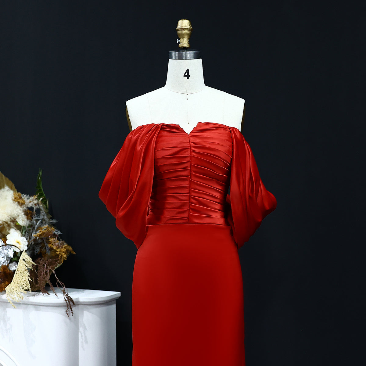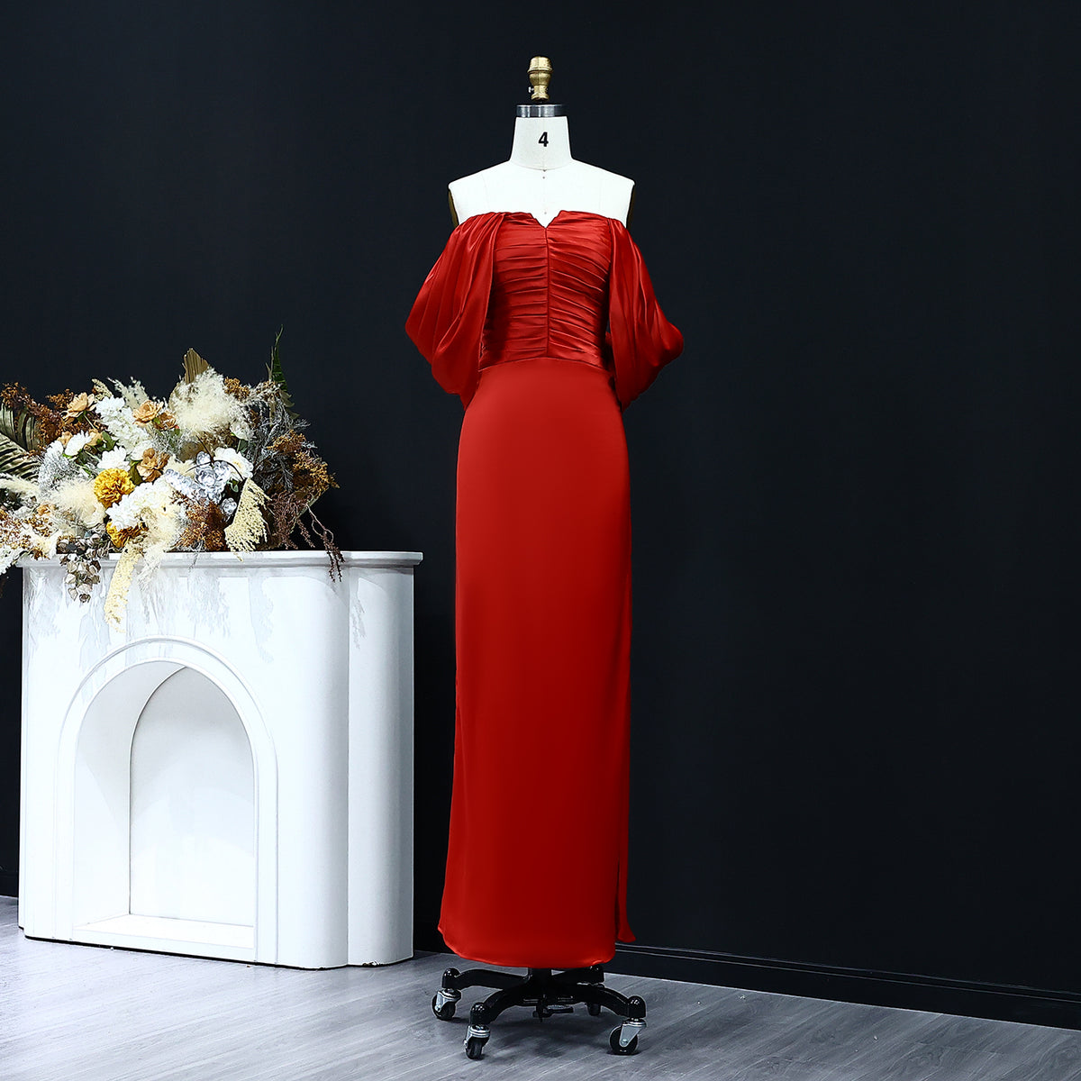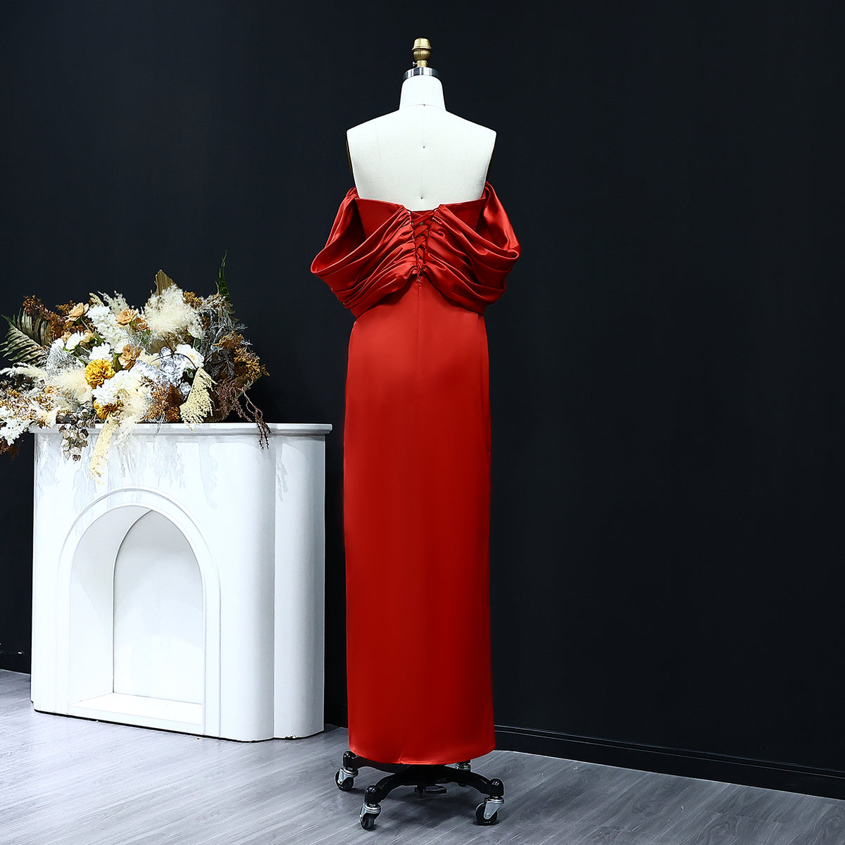 Luxury Red Off Shoulder Sheath Satin Long Evening Dress SF056