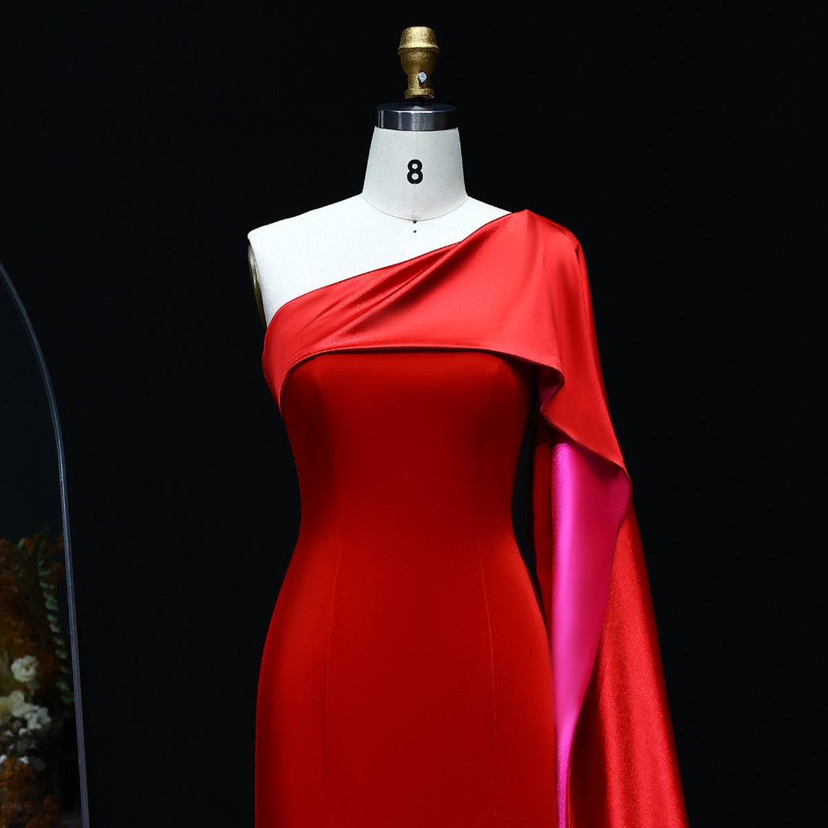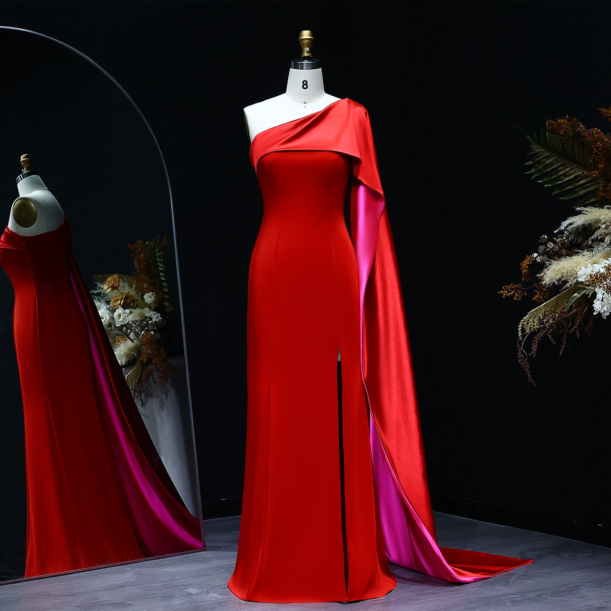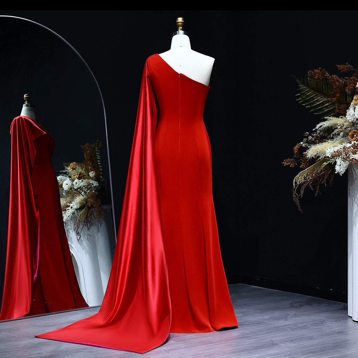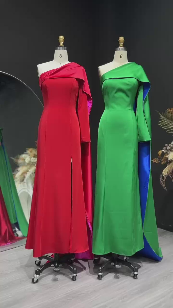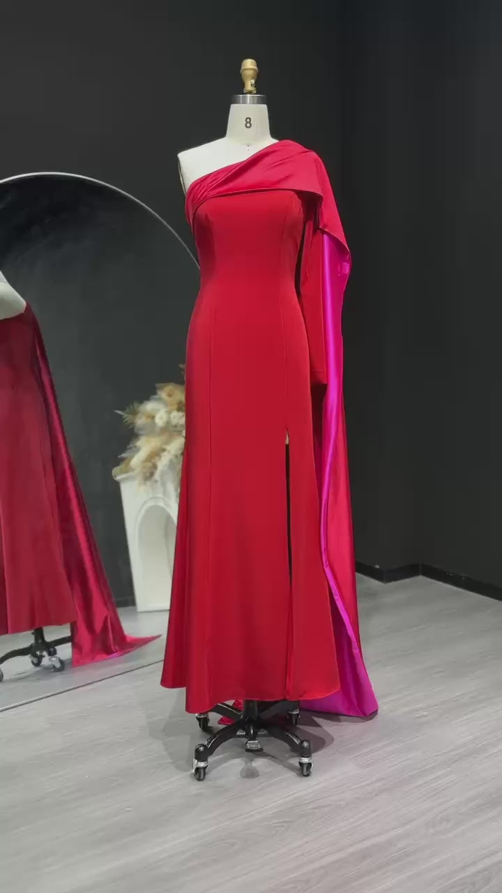 Luxury Red One Shoulder Sheath Evening Dress with Cape SF102