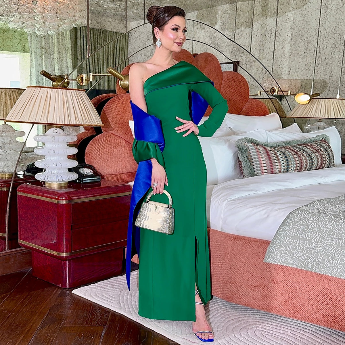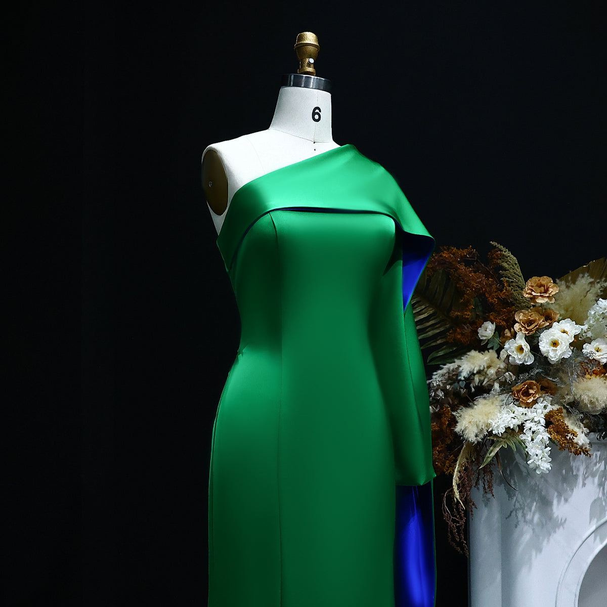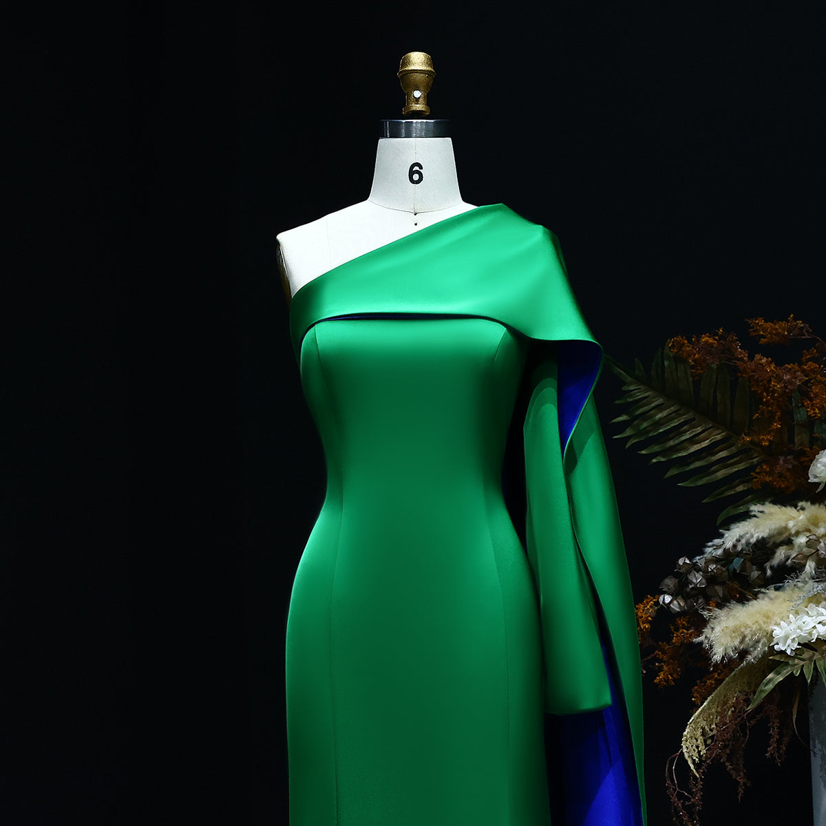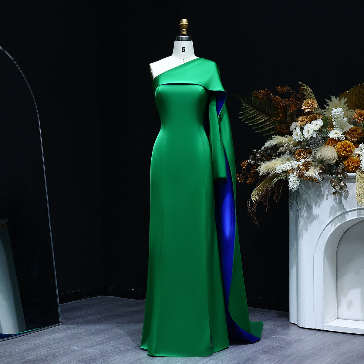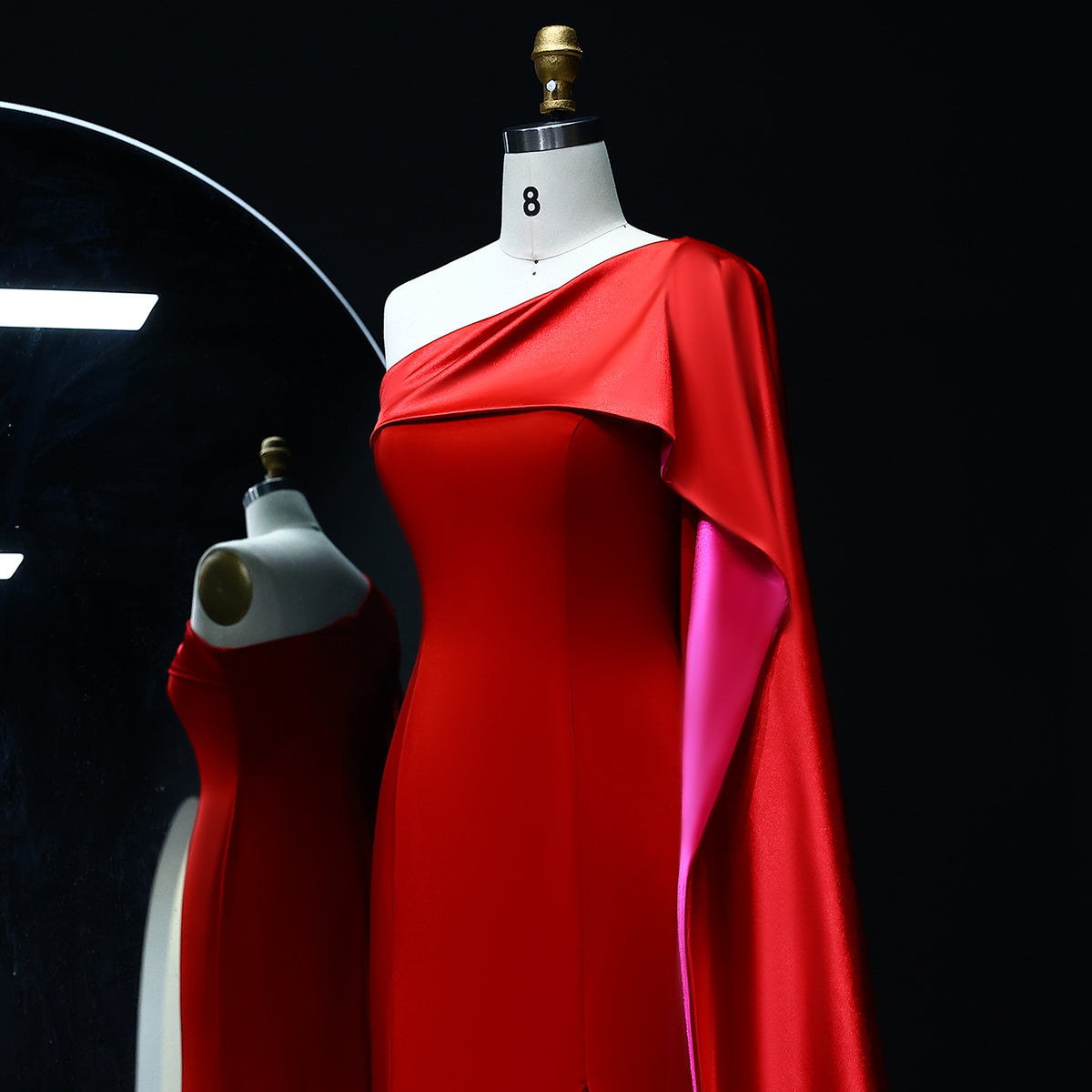 Luxury Red One Shoulder Sheath Evening Dress with Cape SF102