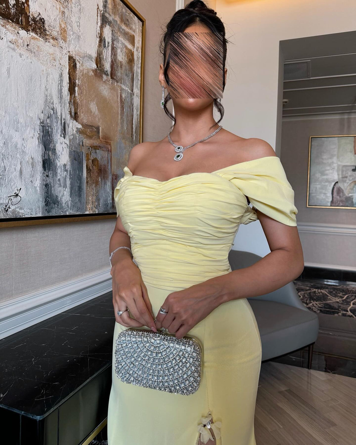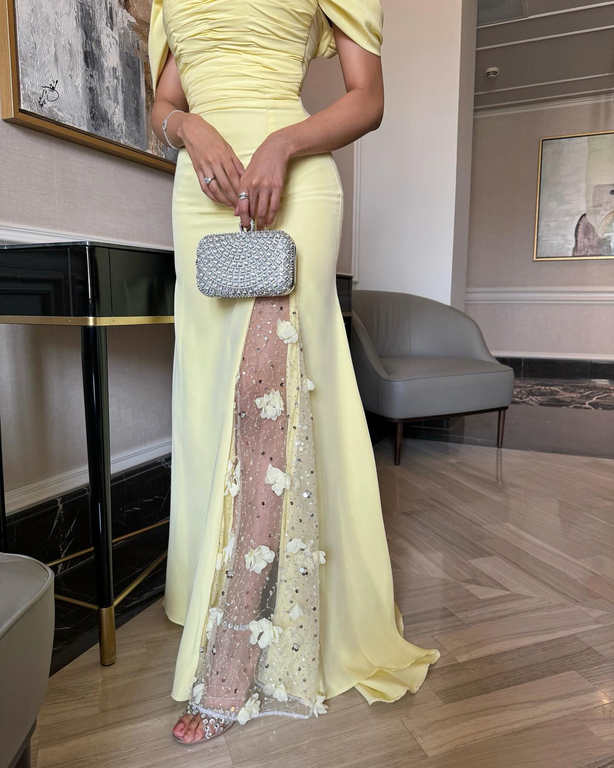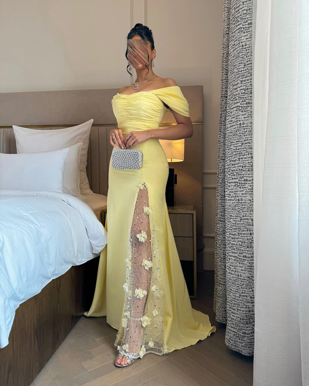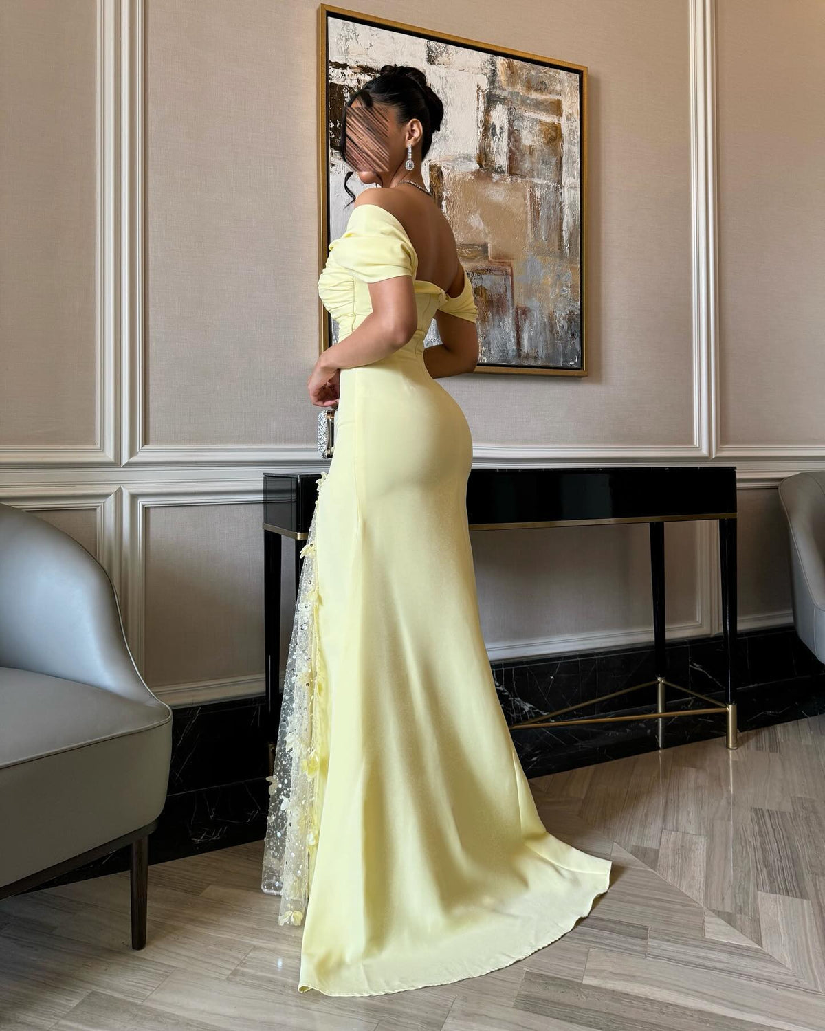 Luxury Yellow 3D Flowers Off Shoulder Evening Dress SF429