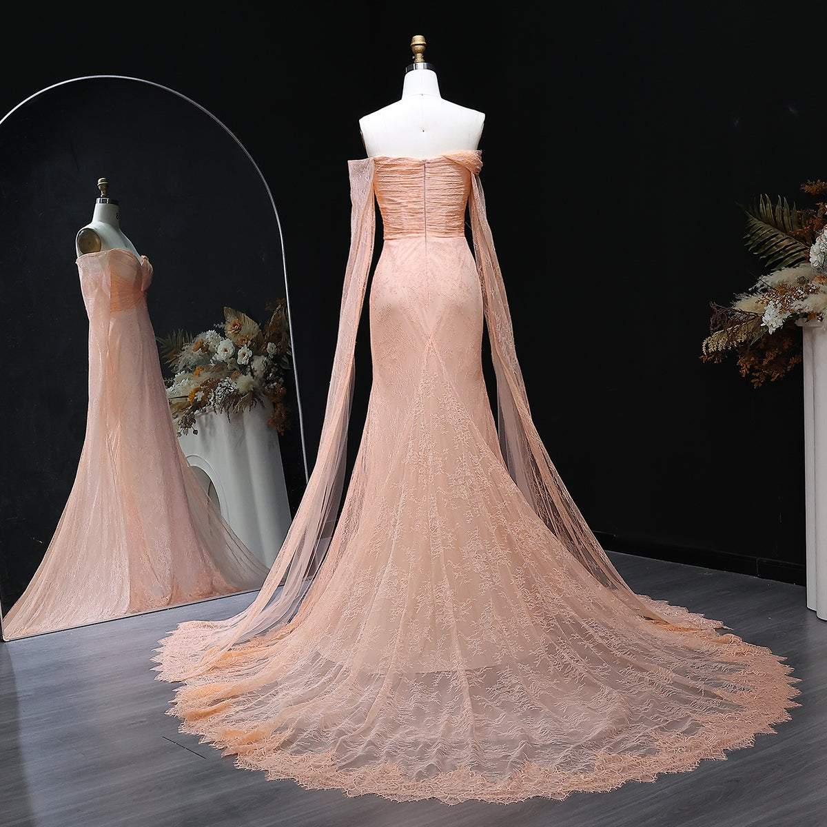 Unleash the elegant and alluring power of our One-Shoulder Lace Mermaid Purple Evening Dress with Cape Sleeves SF055. The perfect balance of sophistication and boldness, this dress features delicate lace, a mermaid silhouette, and stunning cape sleeves. Make a statement and turn heads at your next evening event!