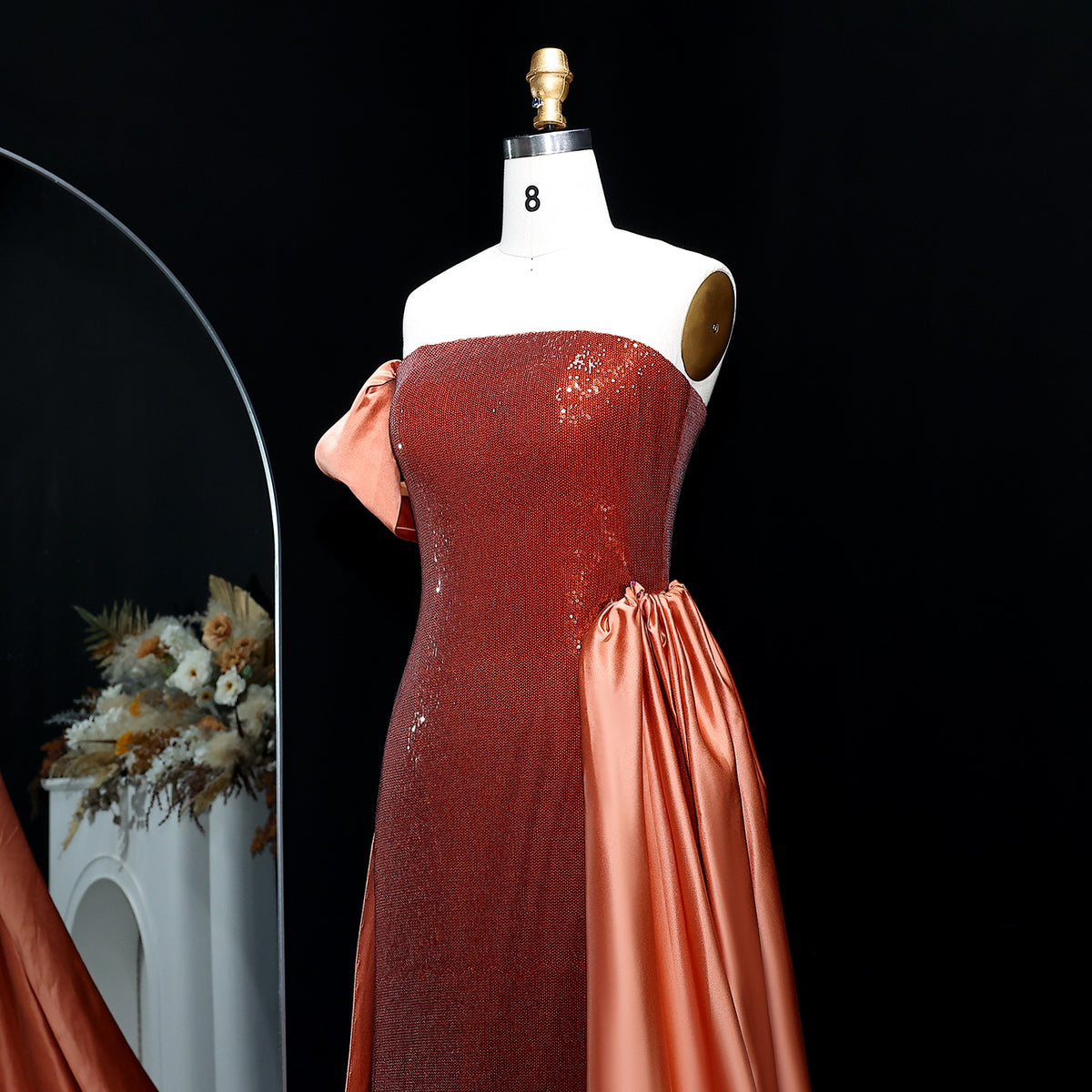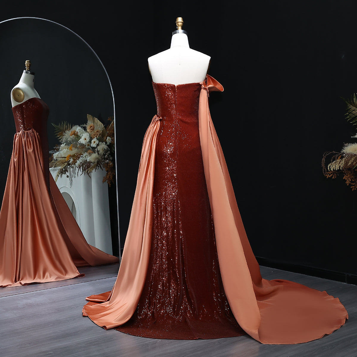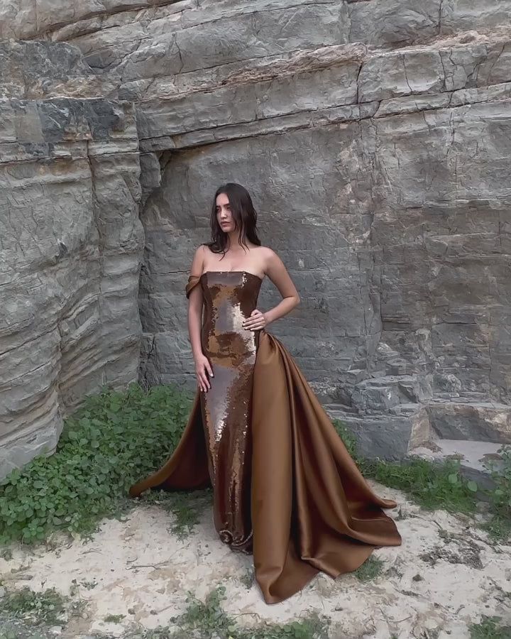 Stunning Sequined Brown Evening Dress with Overskirt SF236