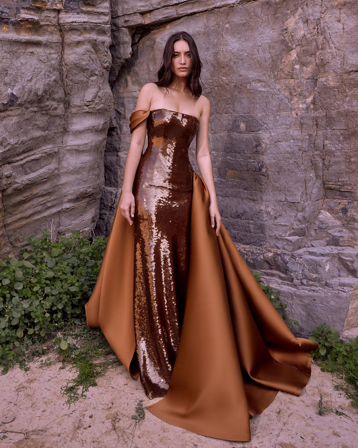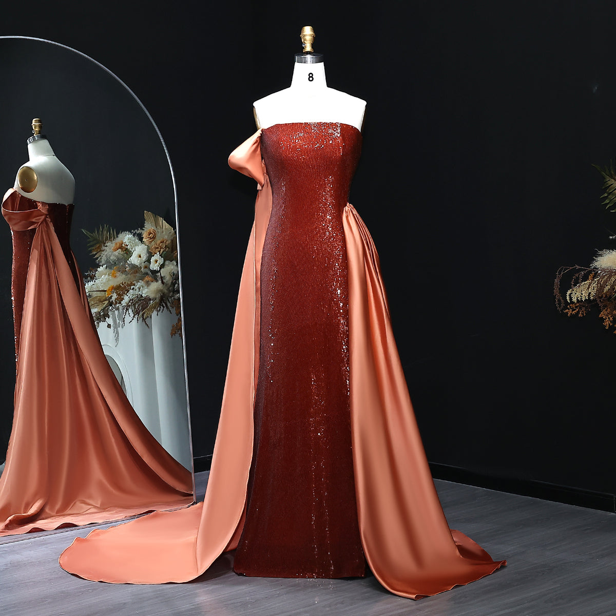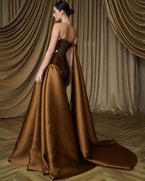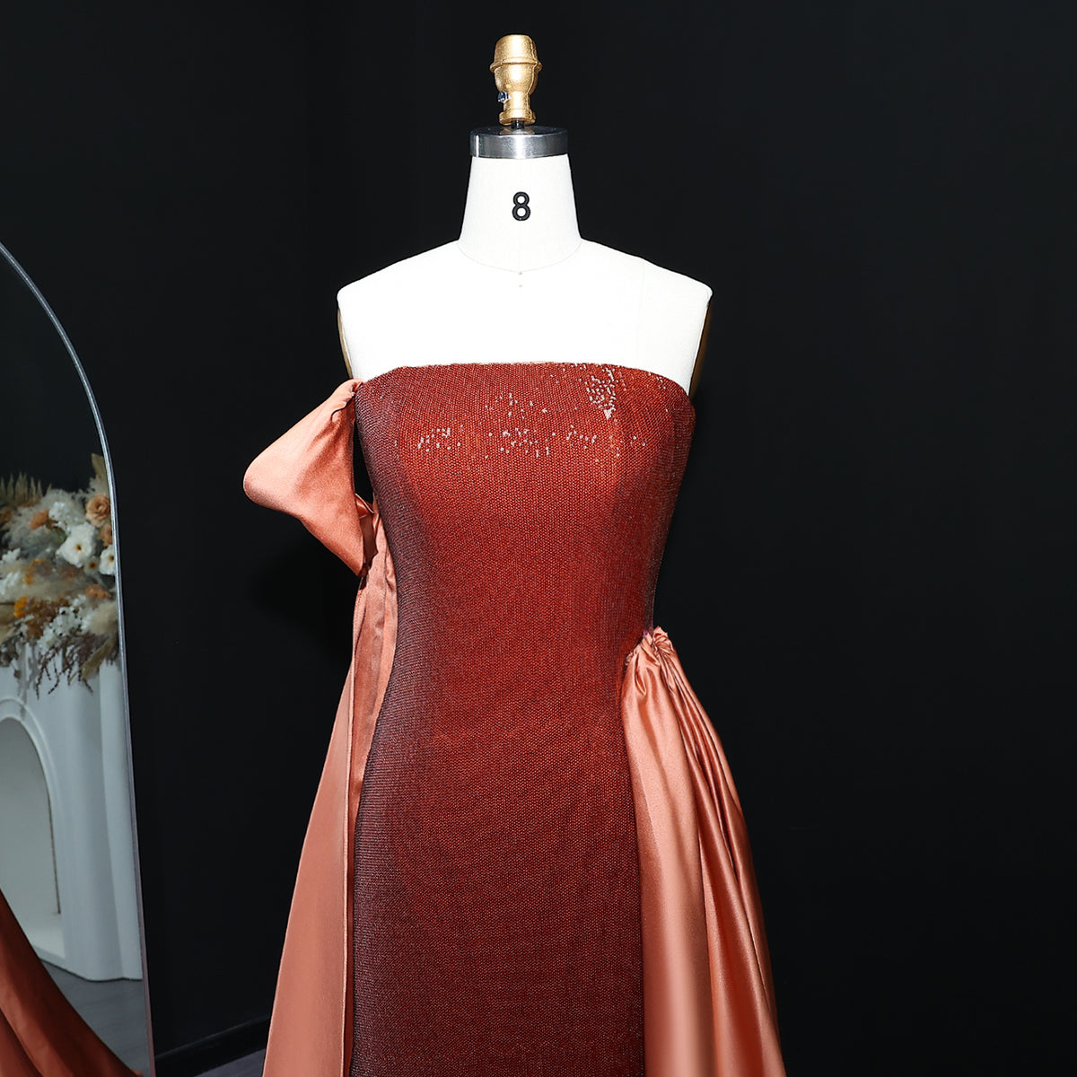 Stunning Sequined Brown Evening Dress with Overskirt SF236
