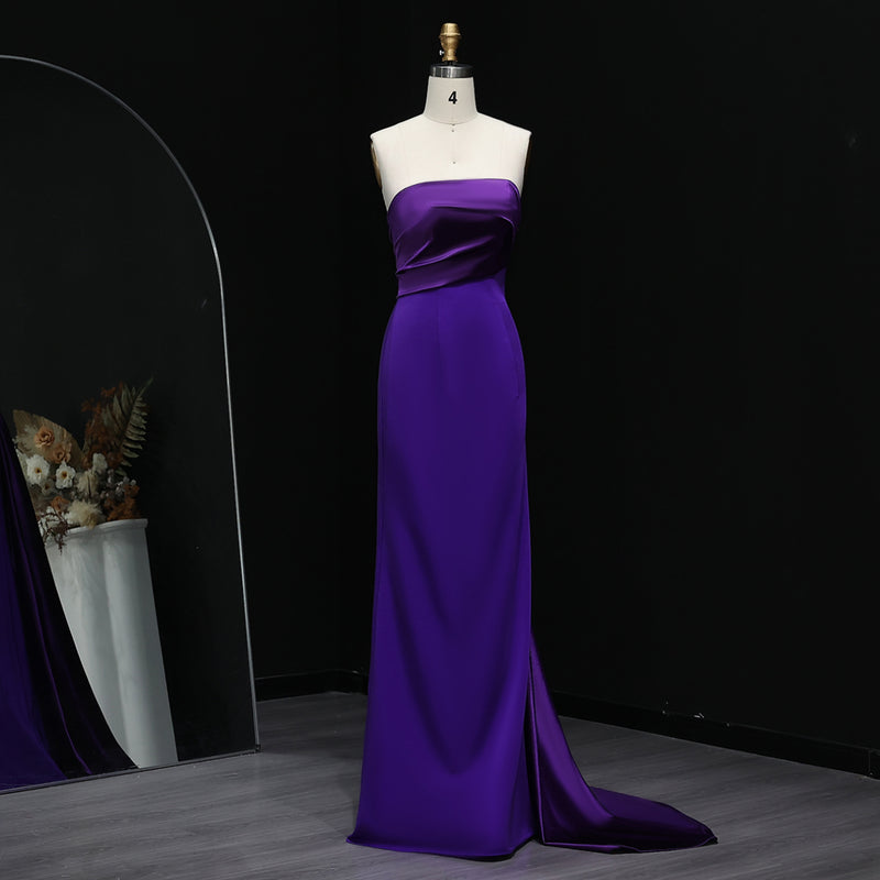 Luxury Purple Strapless A-Line Long Evening Dress SF380