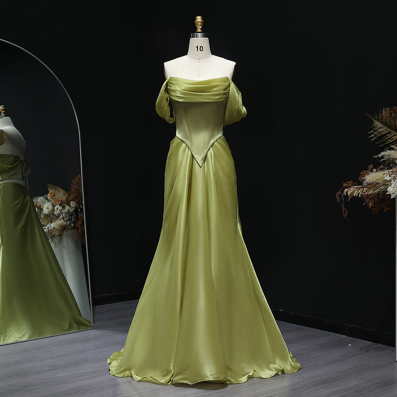 Luxury Green Long Sleeves Mermaid Satin Evening Dress with Cape SF068