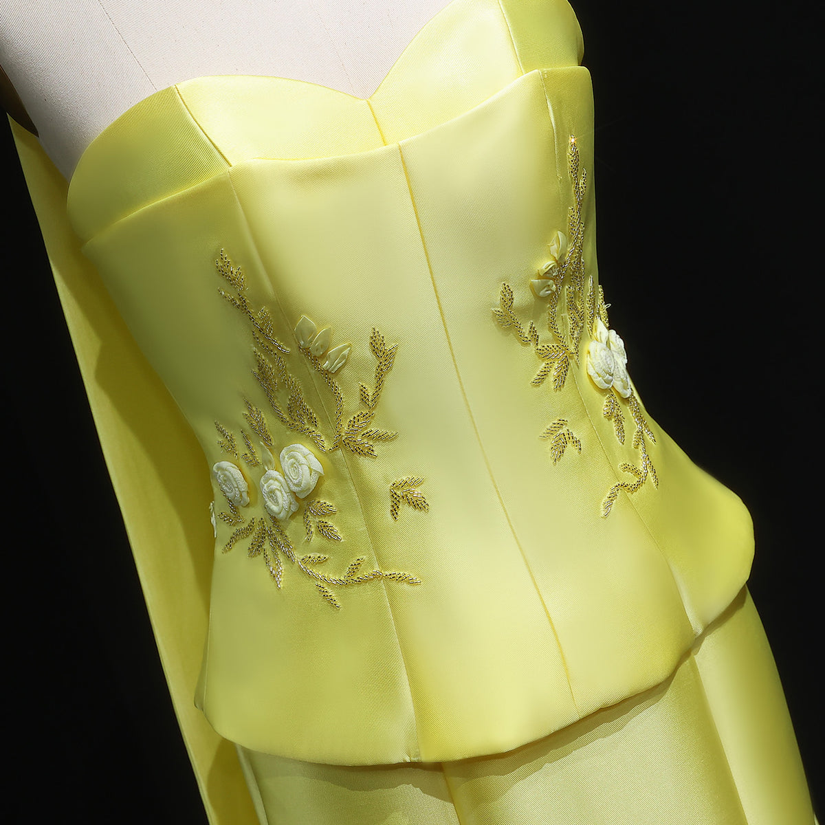 Expertly crafted with a mermaid silhouette, this elegant evening dress showcases 3D floral embellishments and comes with a matching scarf. Perfect for formal events and special occasions, its graceful design adds a touch of sophistication. Feel confident and beautiful in this stunning blue dress.