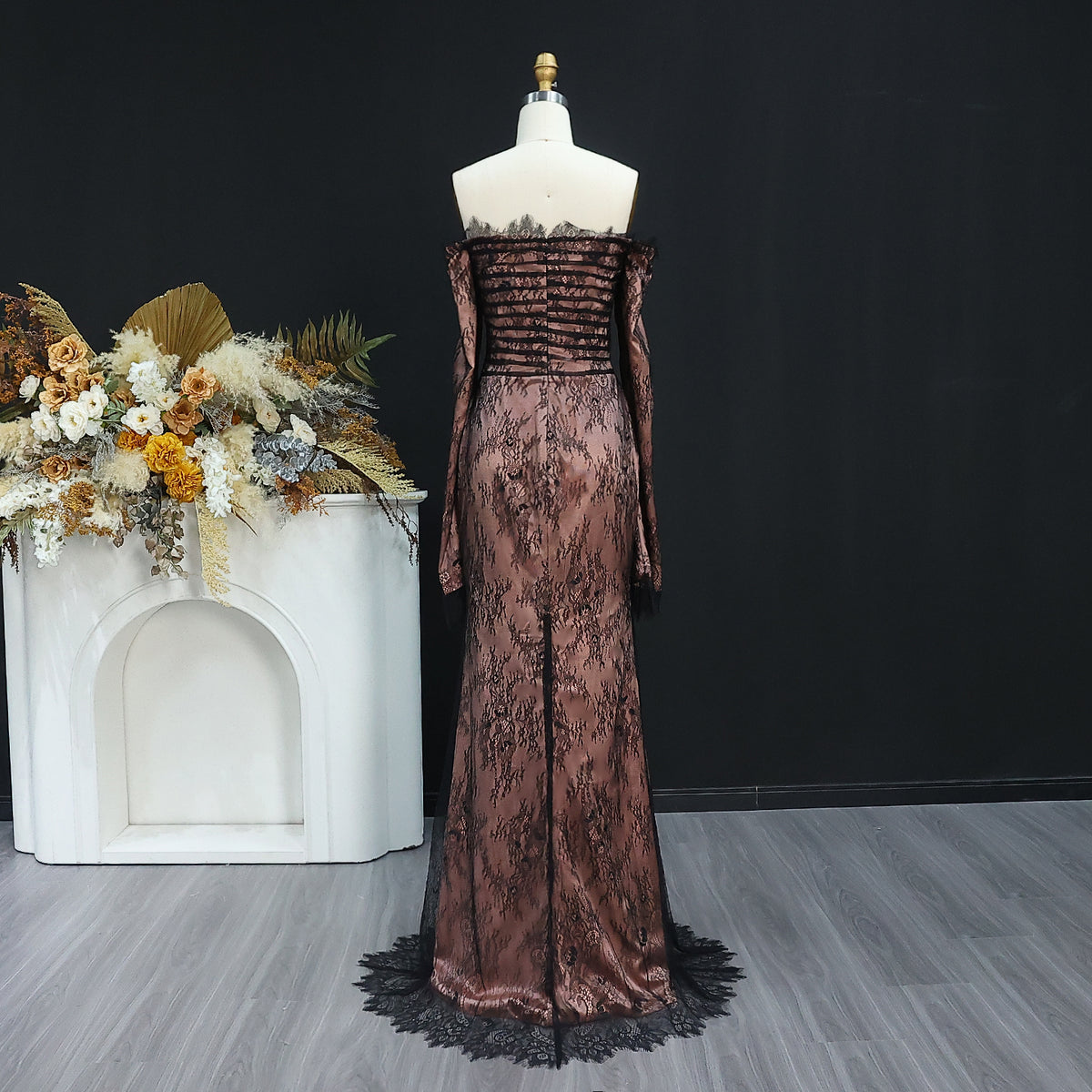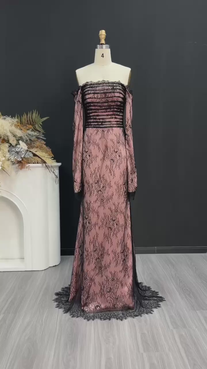 Luxury Black Long Sleeves Strapless Lace Evening Dress SF125