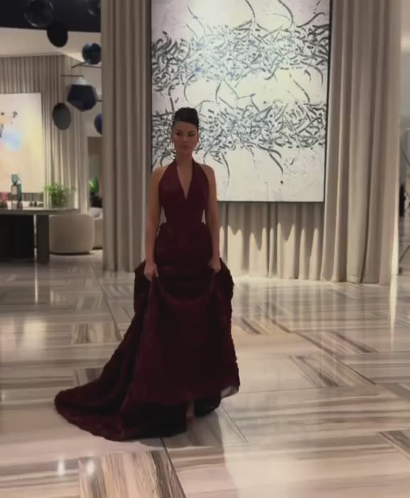 Gorgeous 3D Floral Burgundy V-Neck Evening Dress SF197