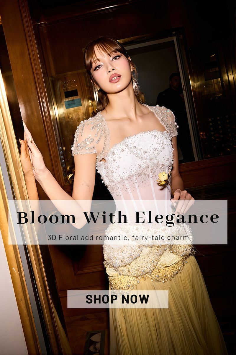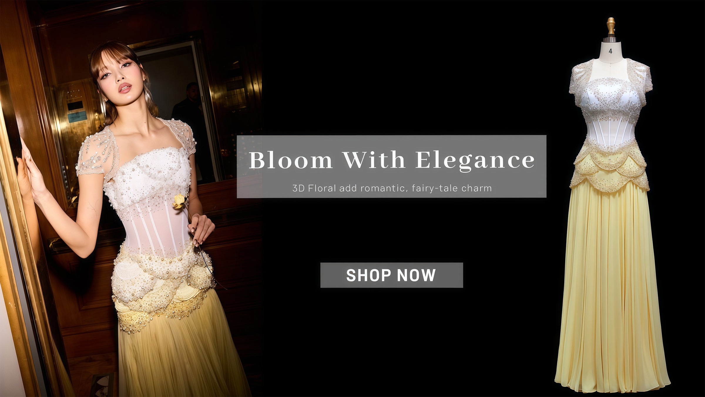 Elegant 3D Flowers Pink Evening Dress with Overskirt SS352