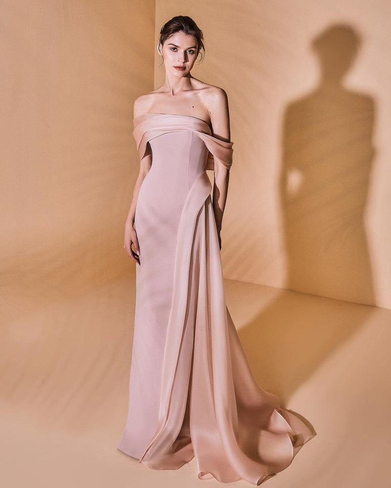 Elegant Off Shoulder Beige Mermaid Evening Dress SF001