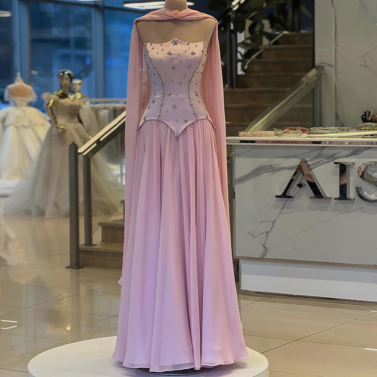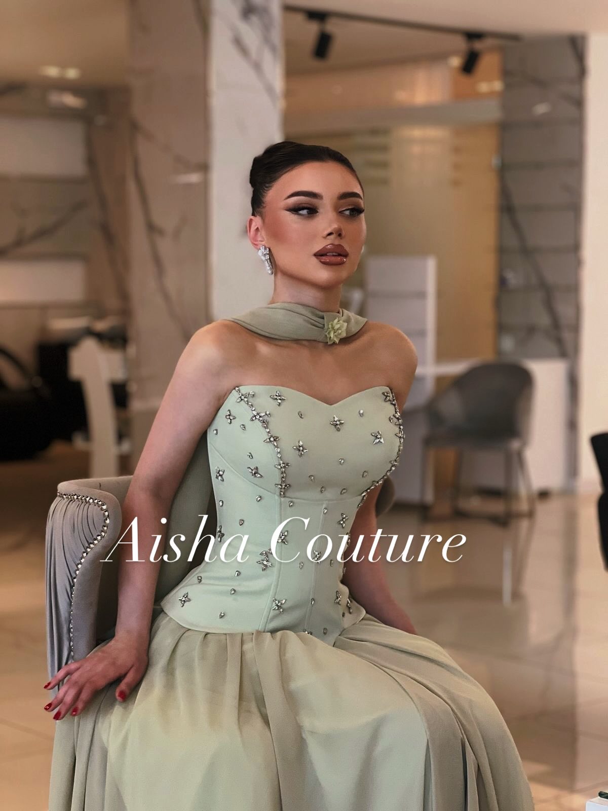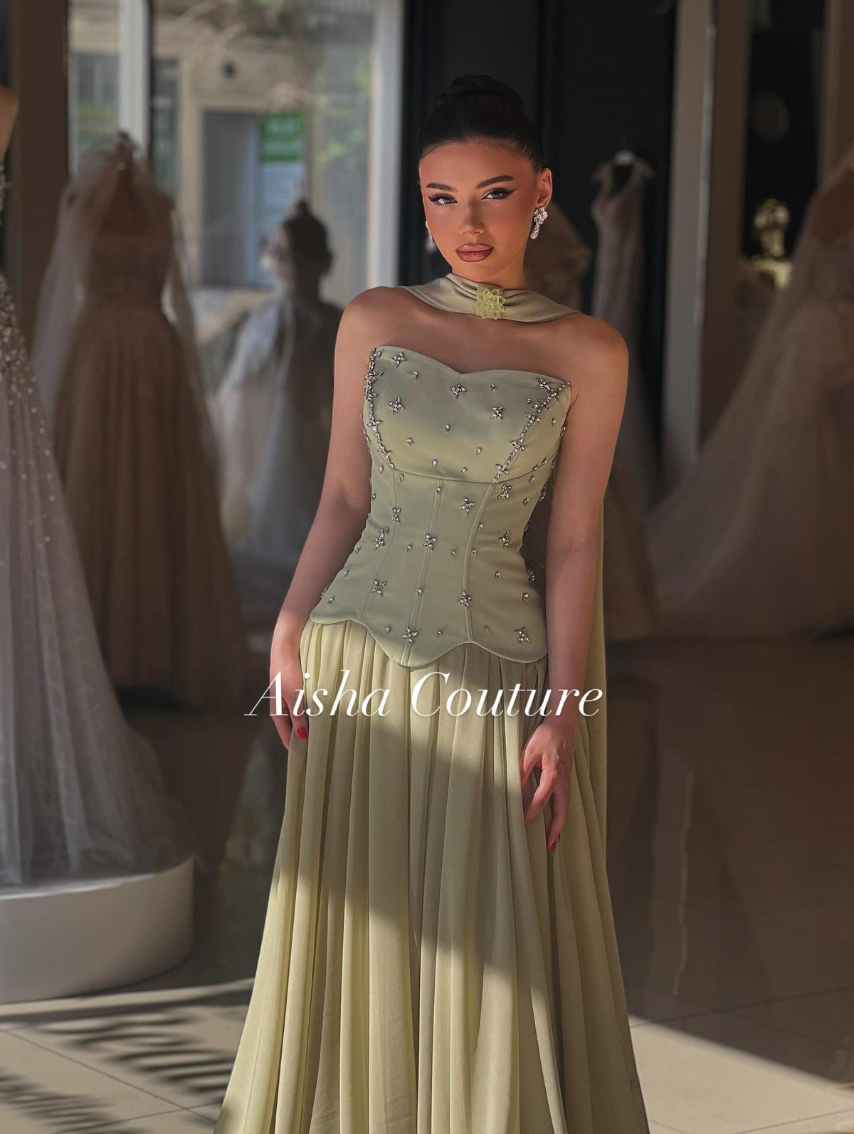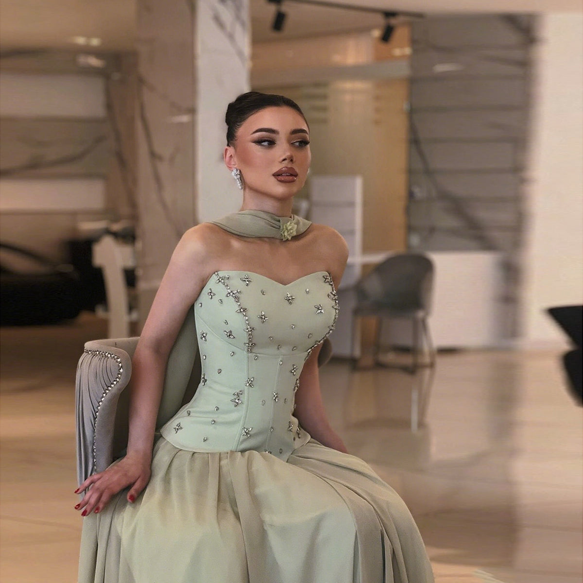 Elegant Sage Green Beaded Beaded Corset Evening Dress with Scarf SF226