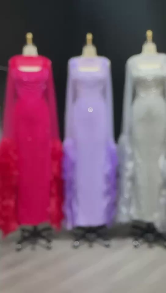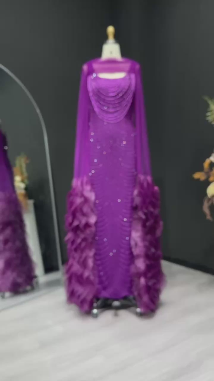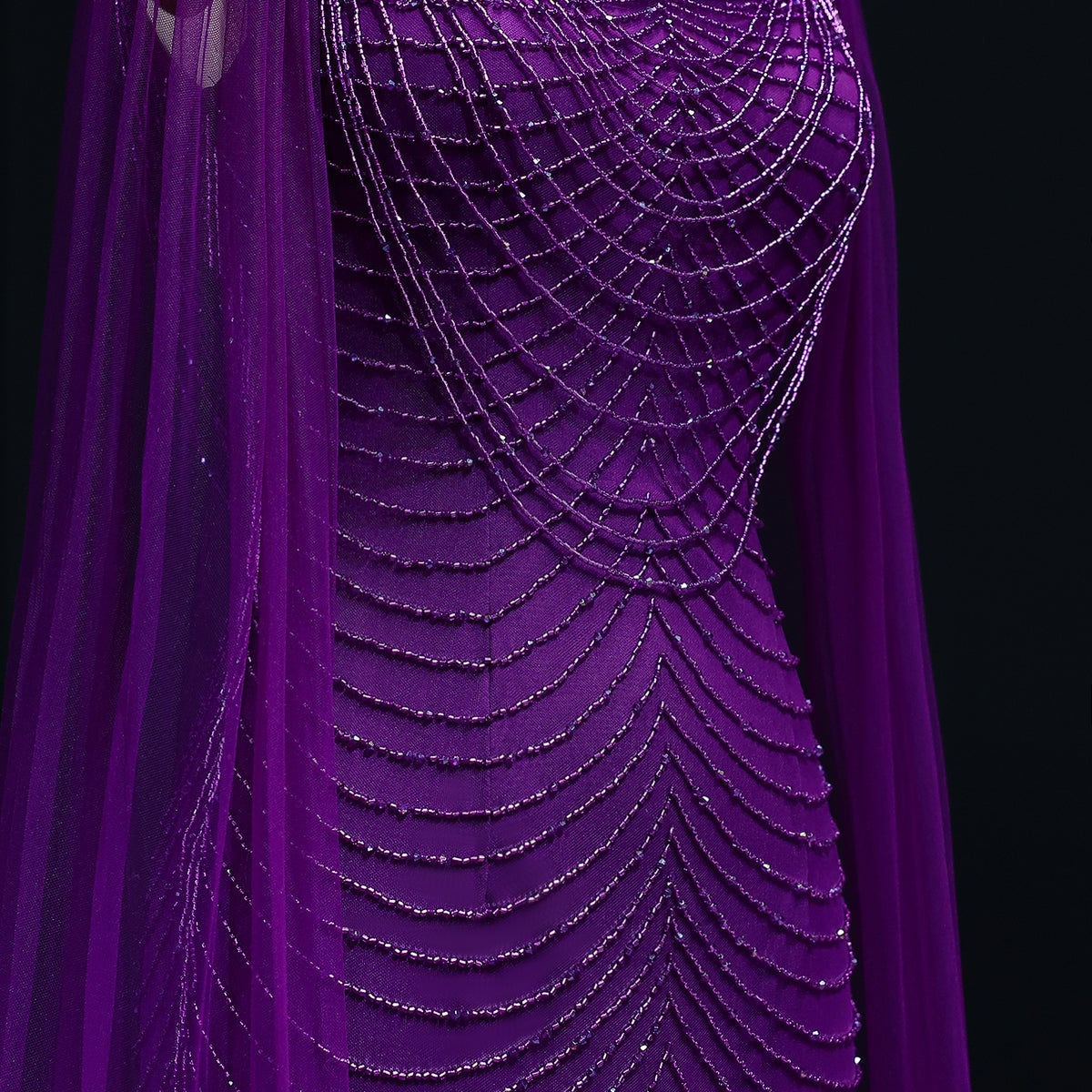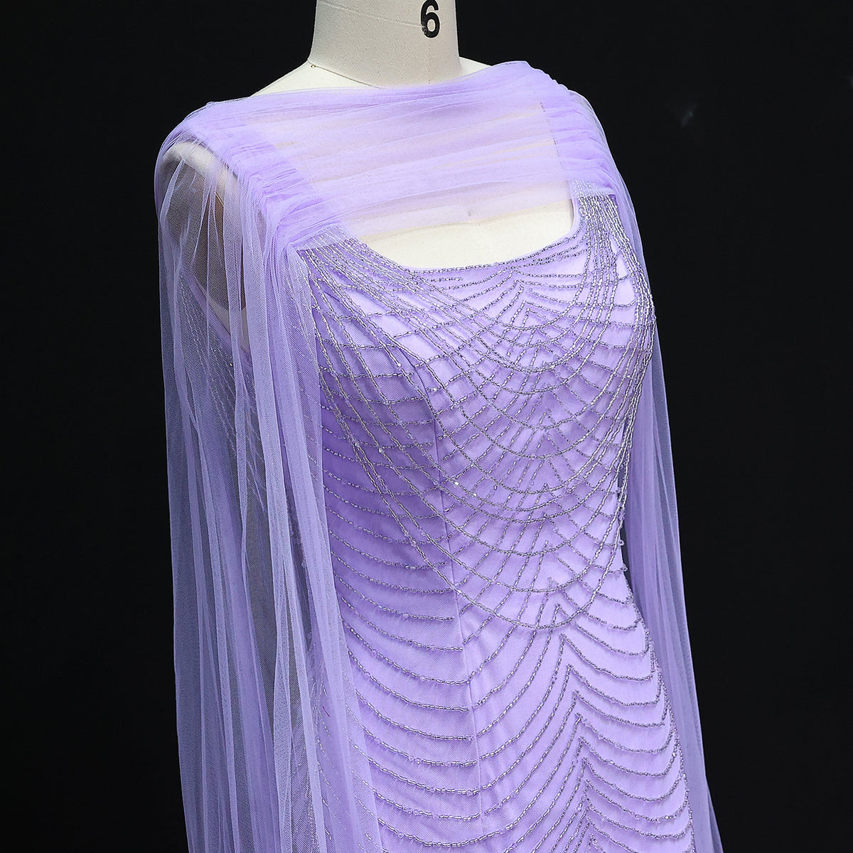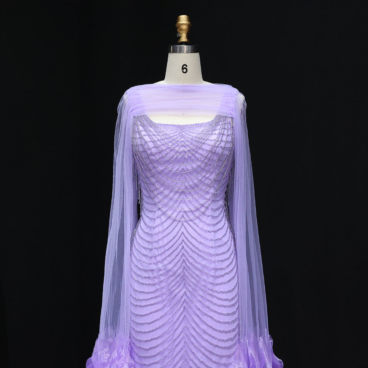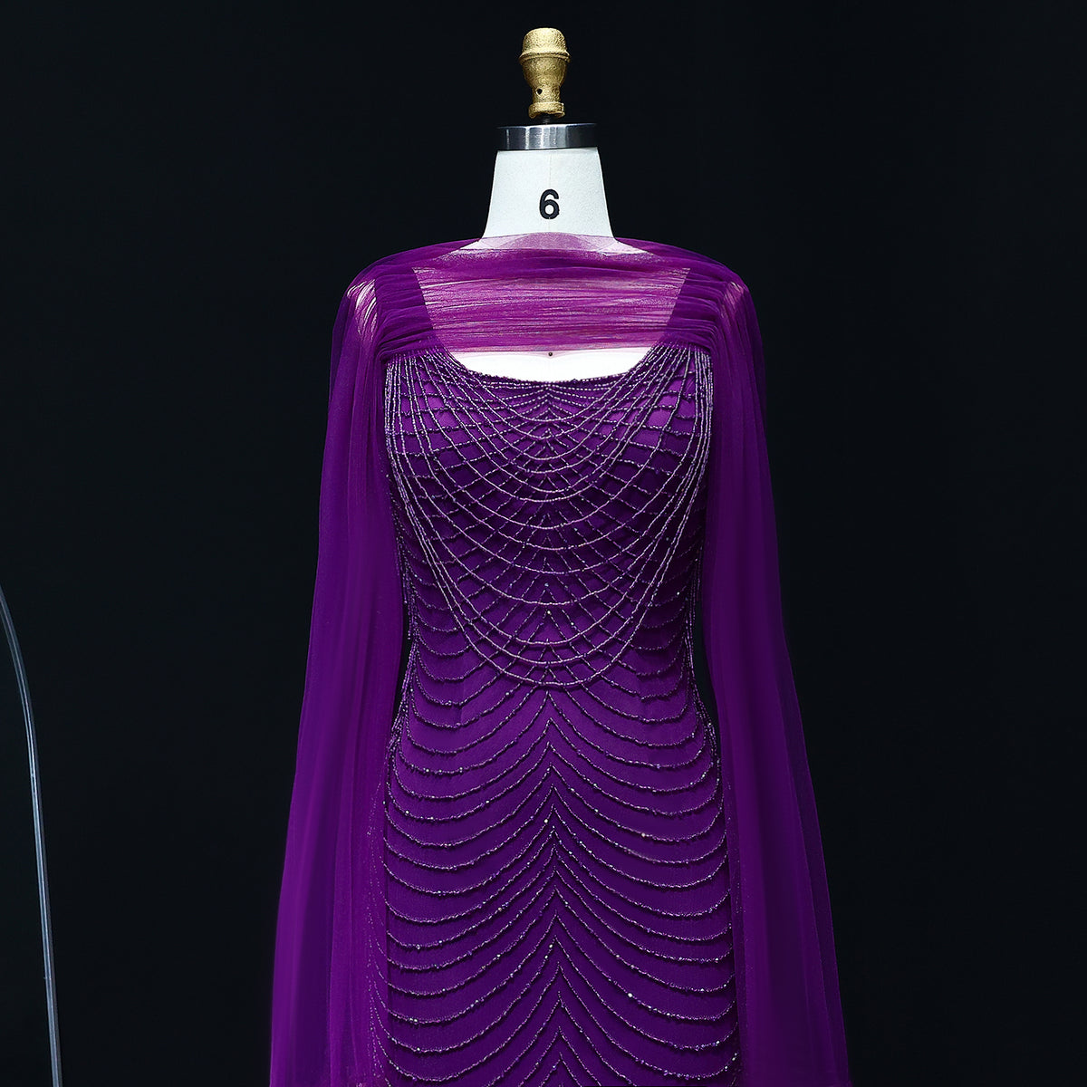 Luxury Beading Purple Evening Dress with Cape Sleeves SS280