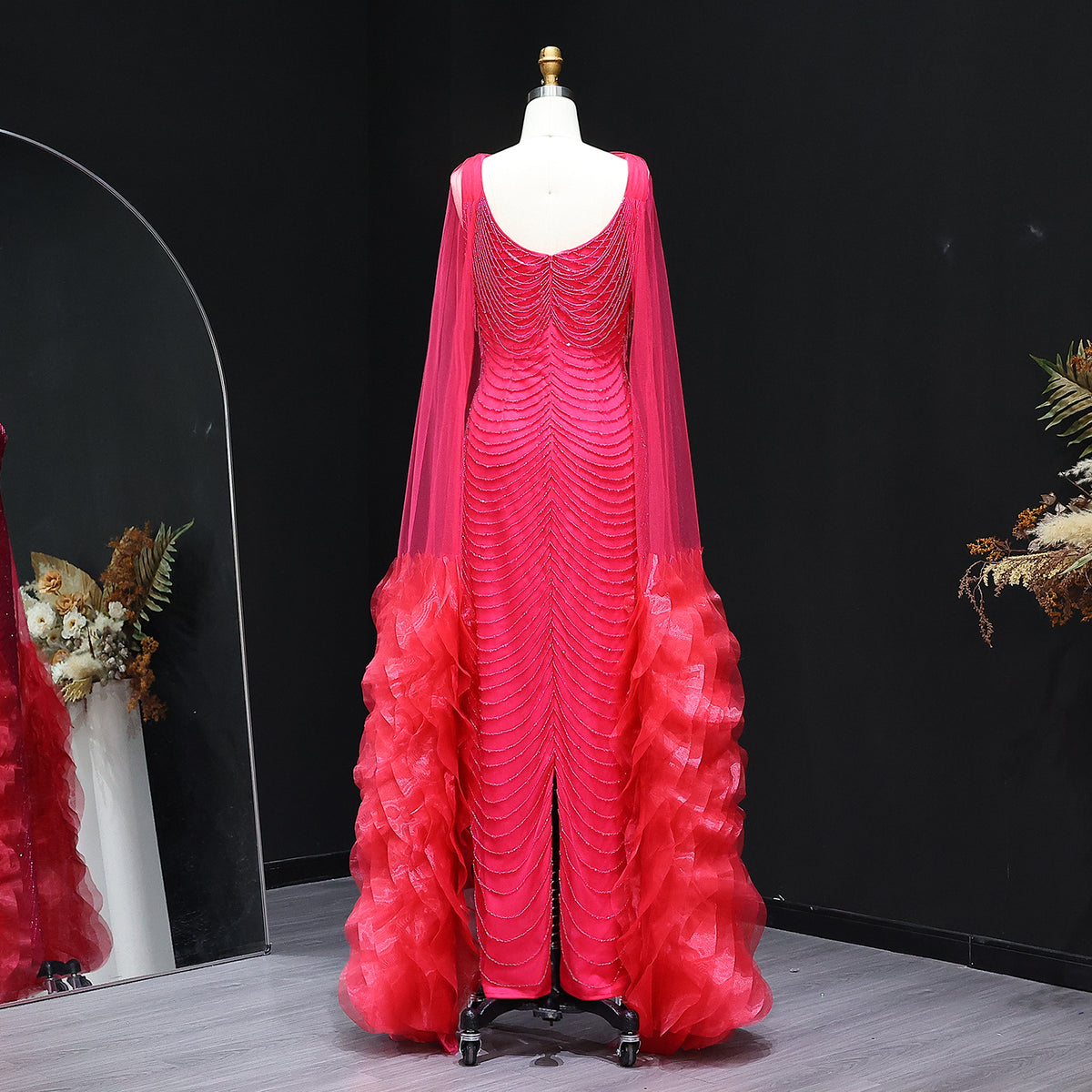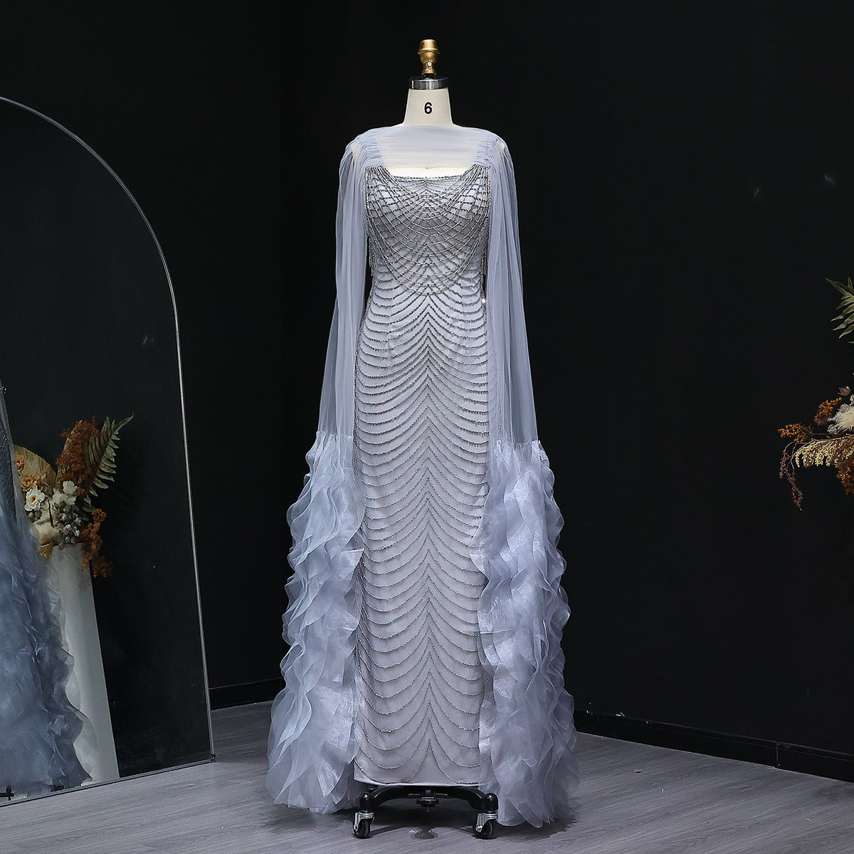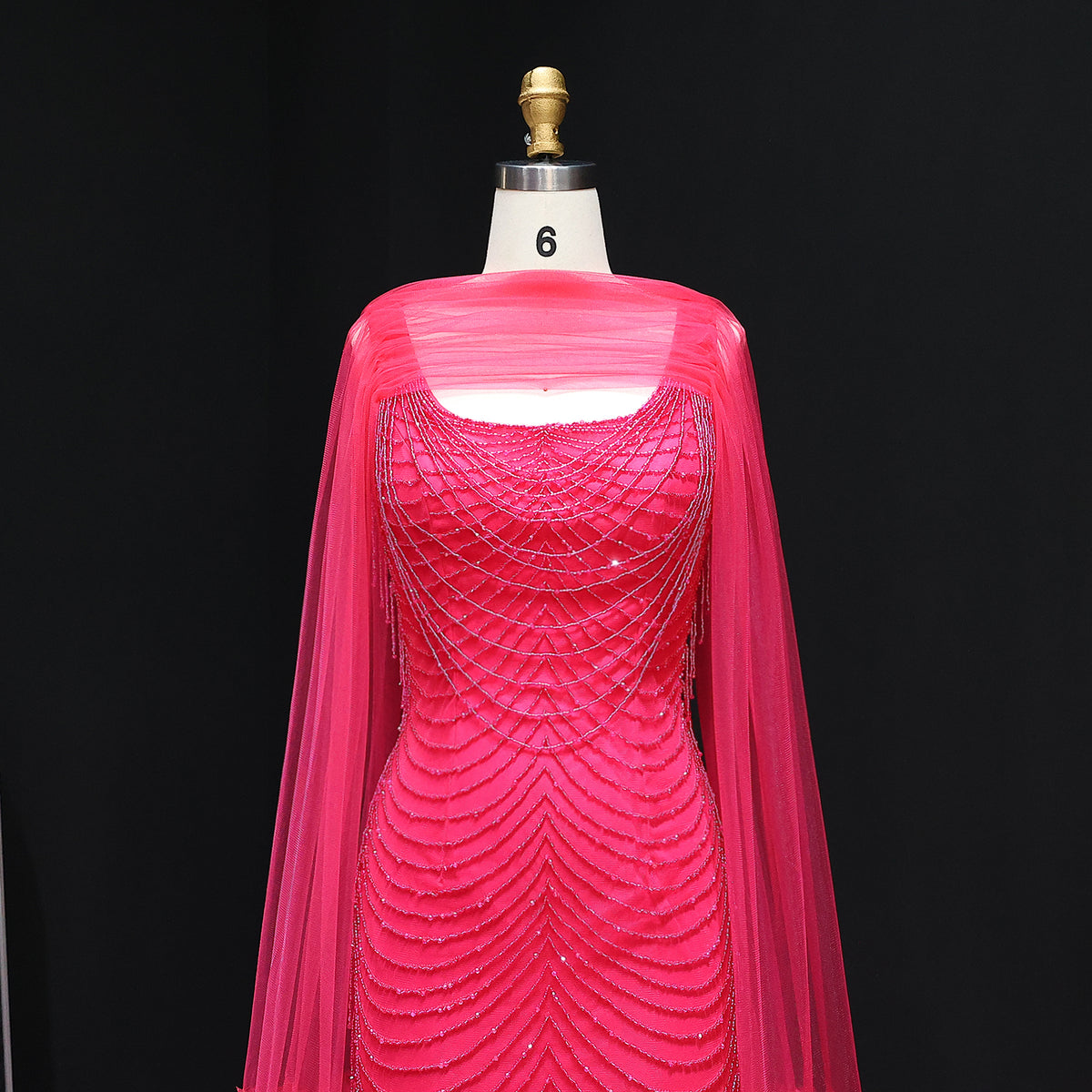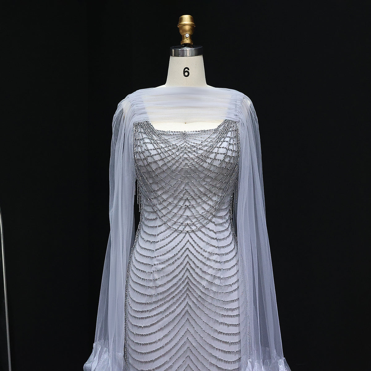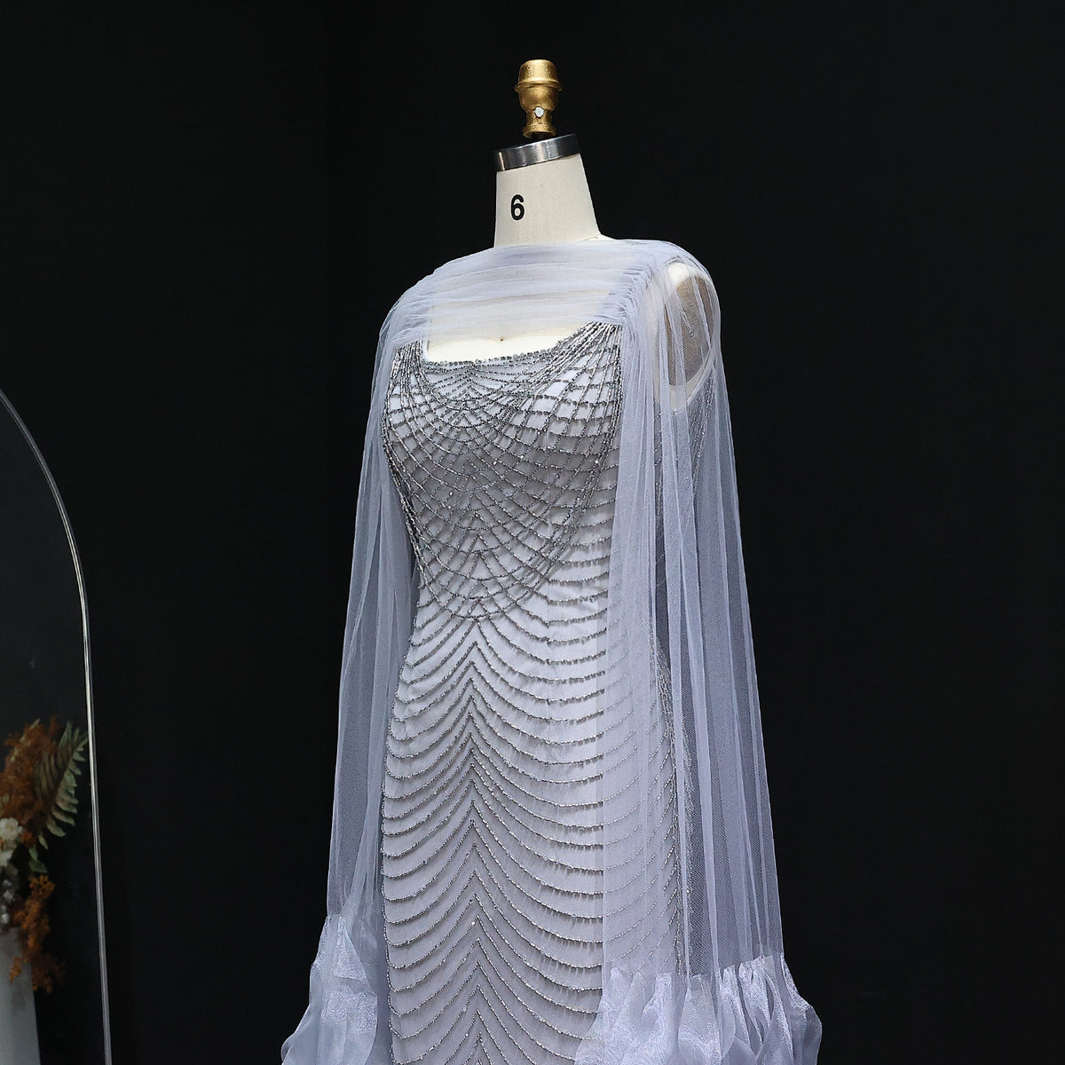 Luxury Beading Purple Evening Dress with Cape Sleeves SS280