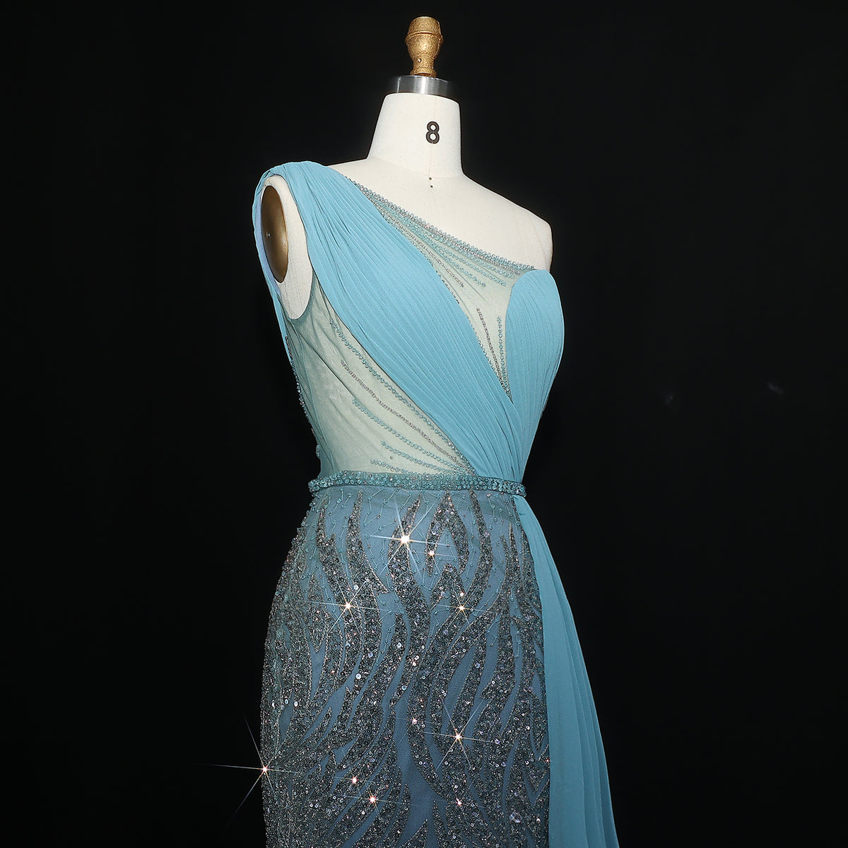 Luxury Beaded Turquoise Mermaid Evening Dress SS007