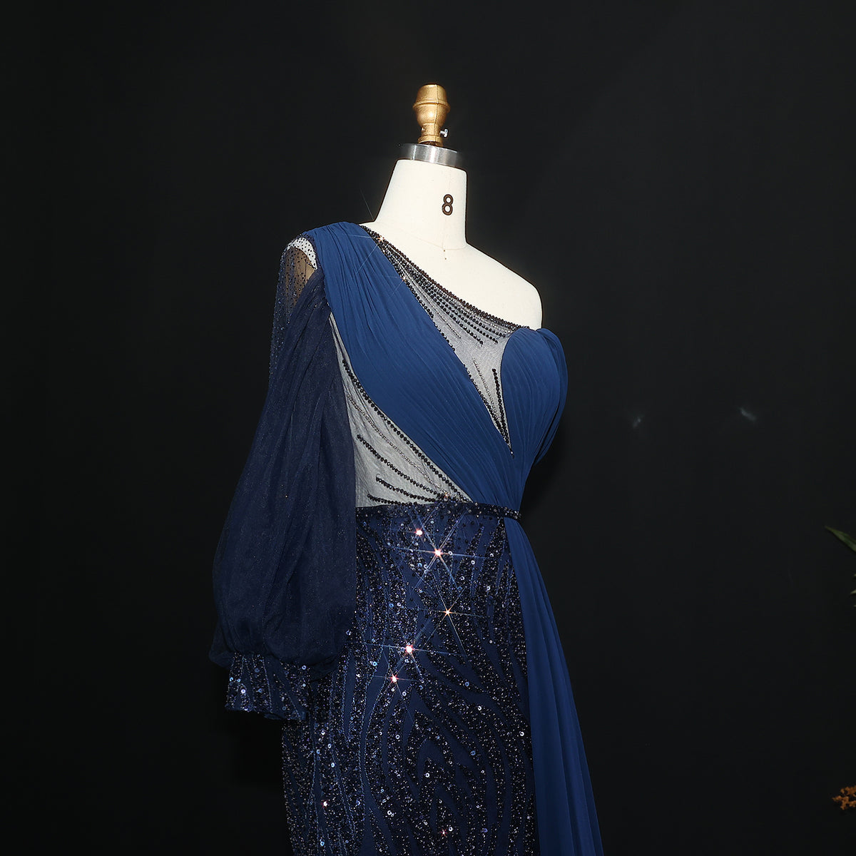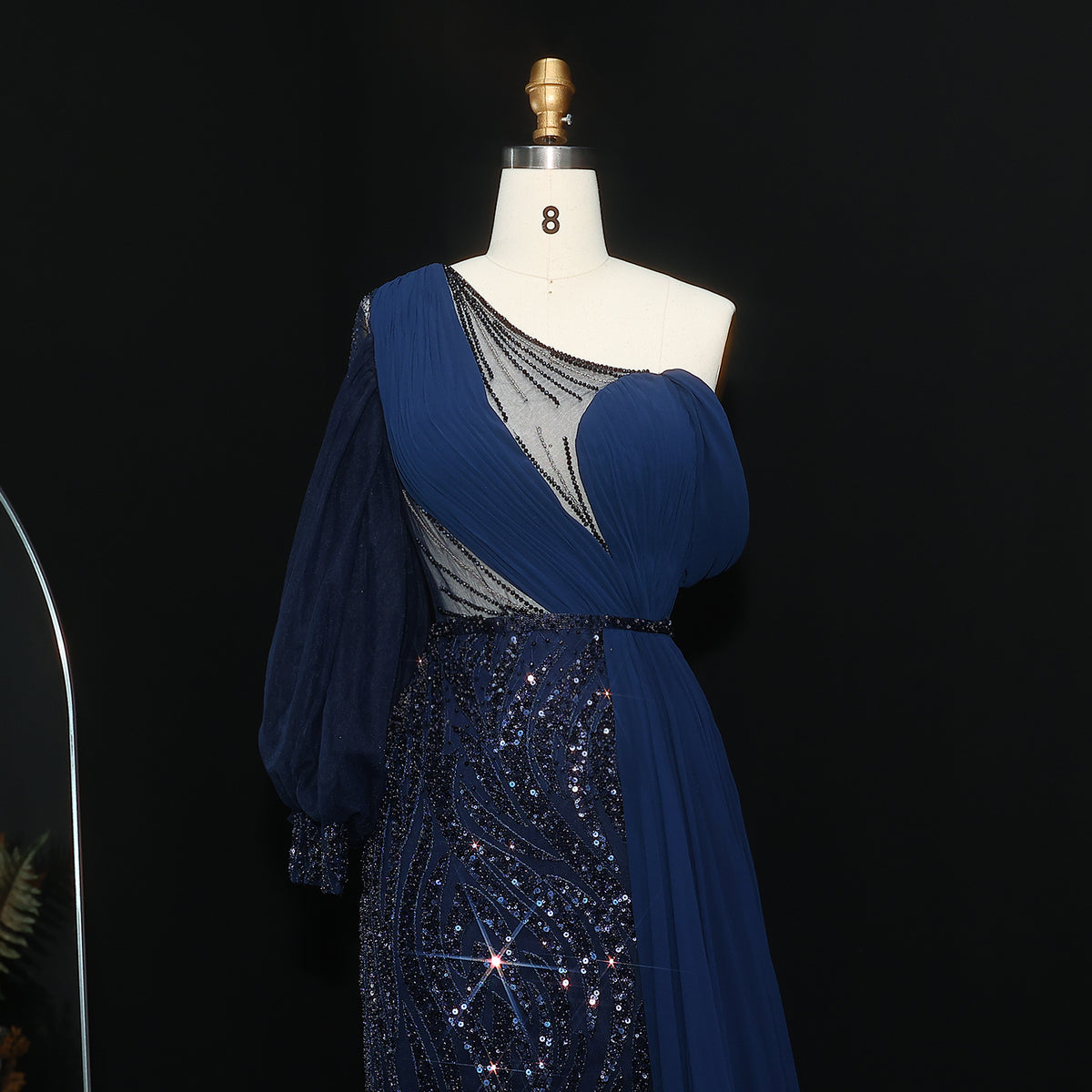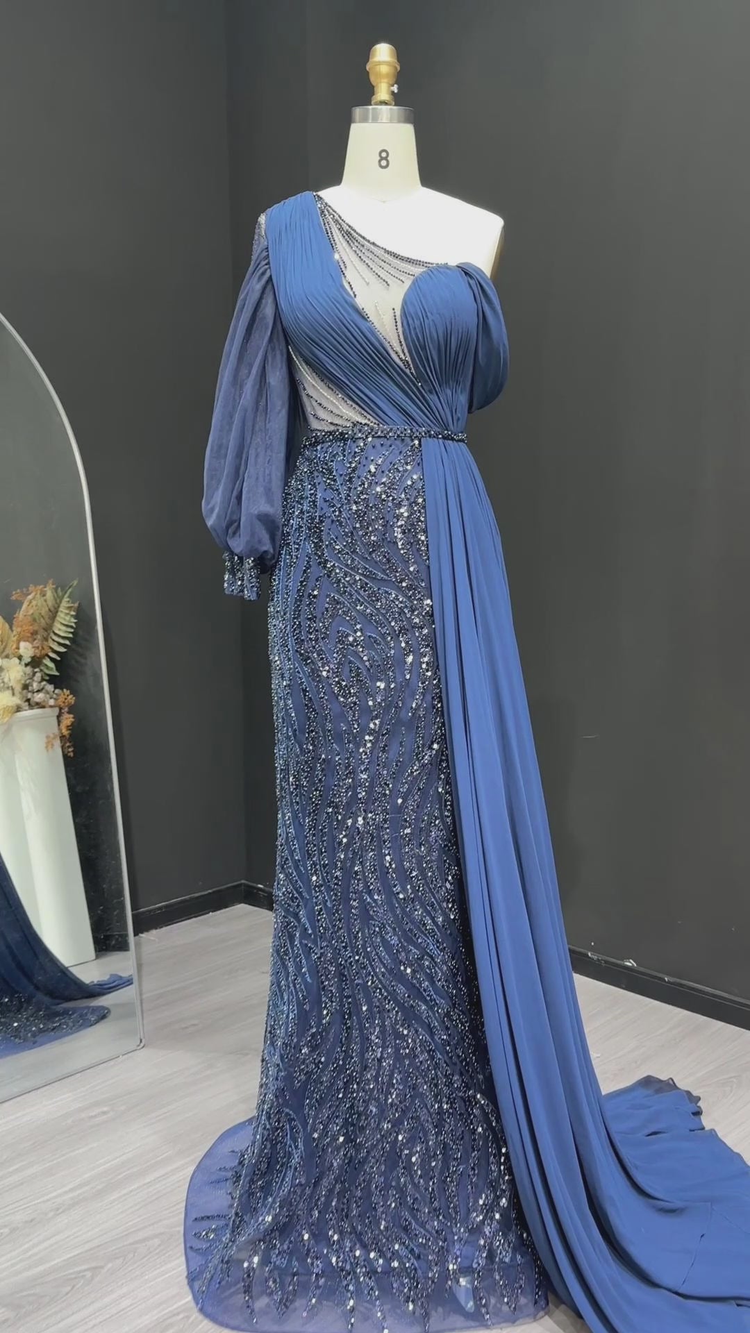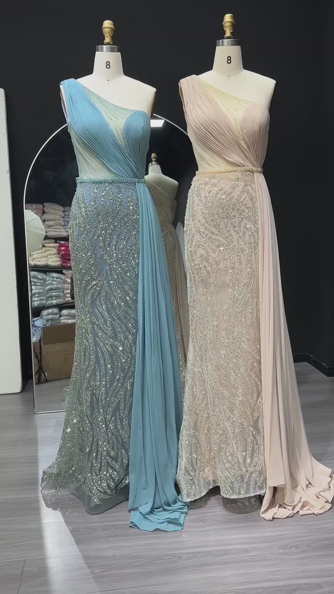 Indulge in luxury with our stunning Beaded Turquoise Blue Mermaid Evening Dress SS007. The intricate beading and bold color create a show-stopping look, while the mermaid silhouette flatters your figure. Perfect for any formal occasion, this dress exudes elegance and sophistication.