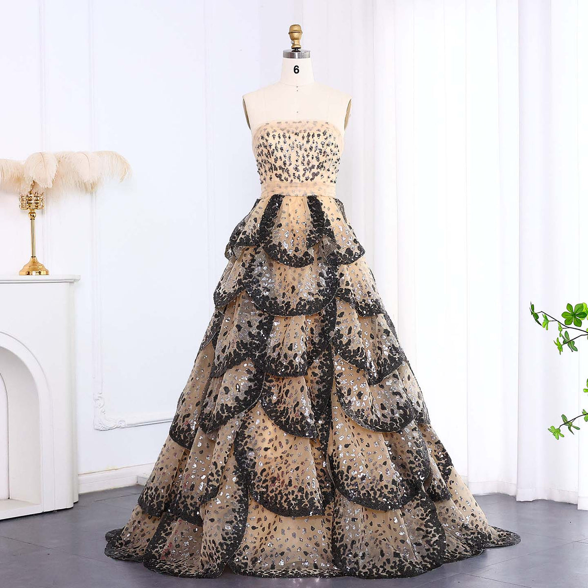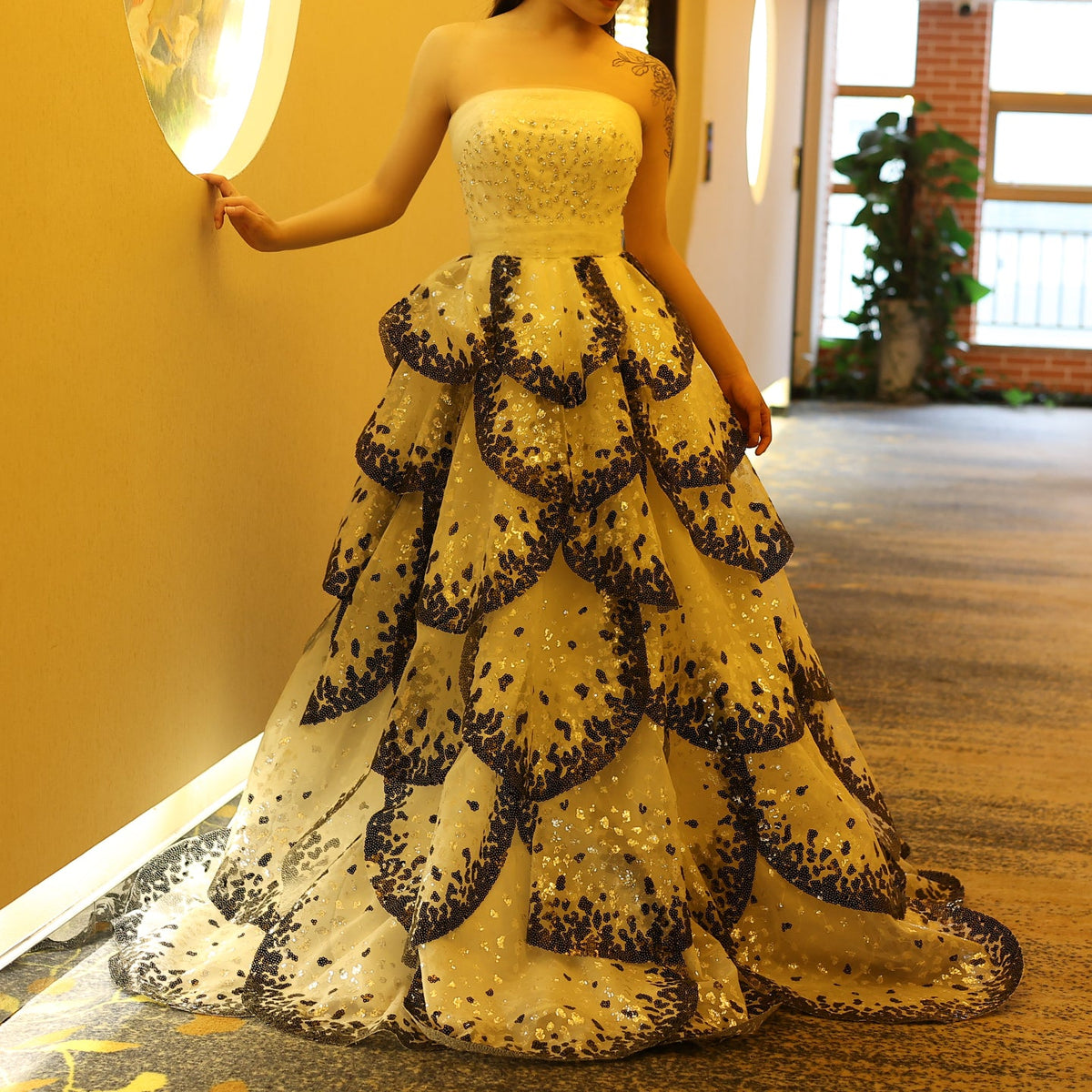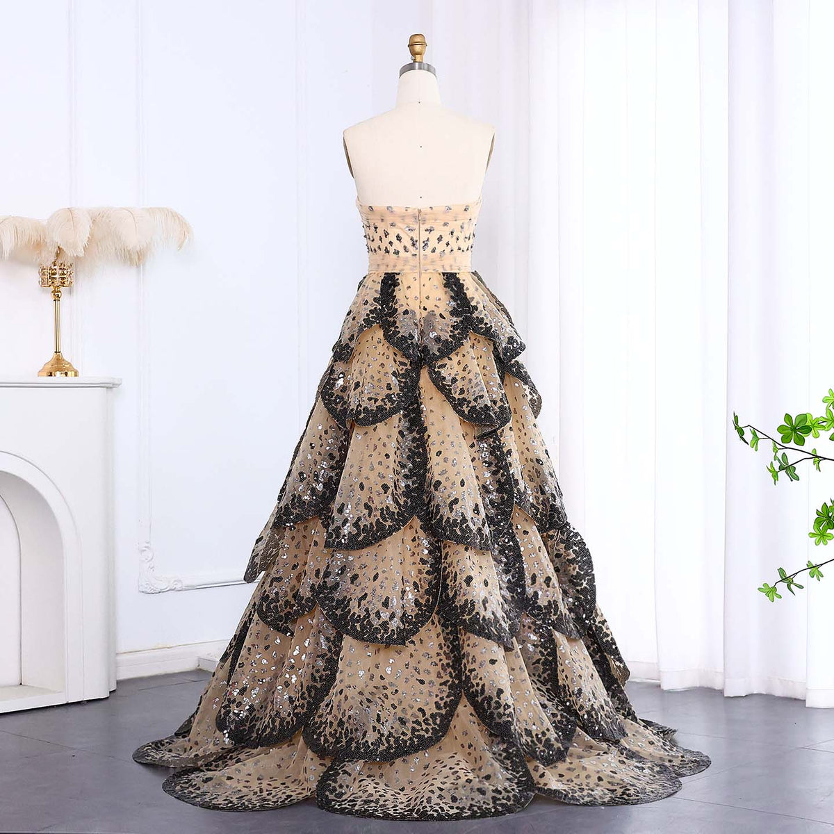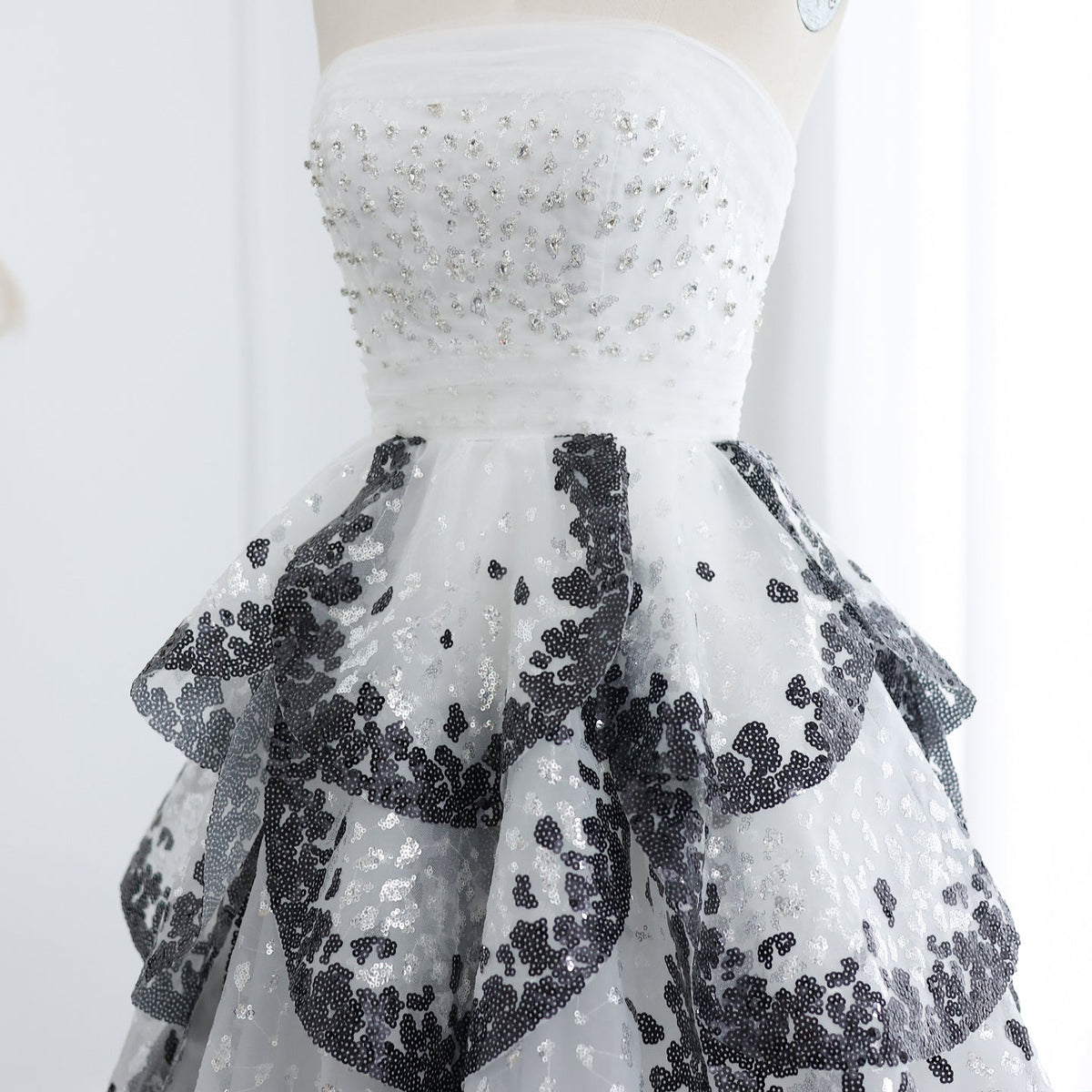 Luxury Black and White Ruffles Strapless Evening Dress SS290