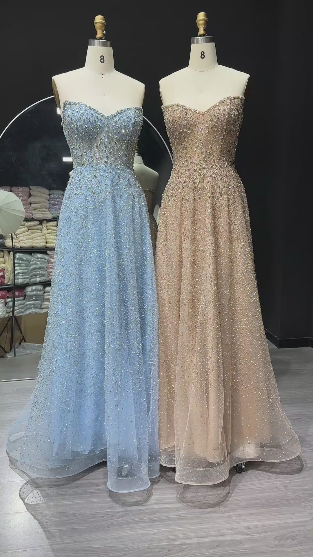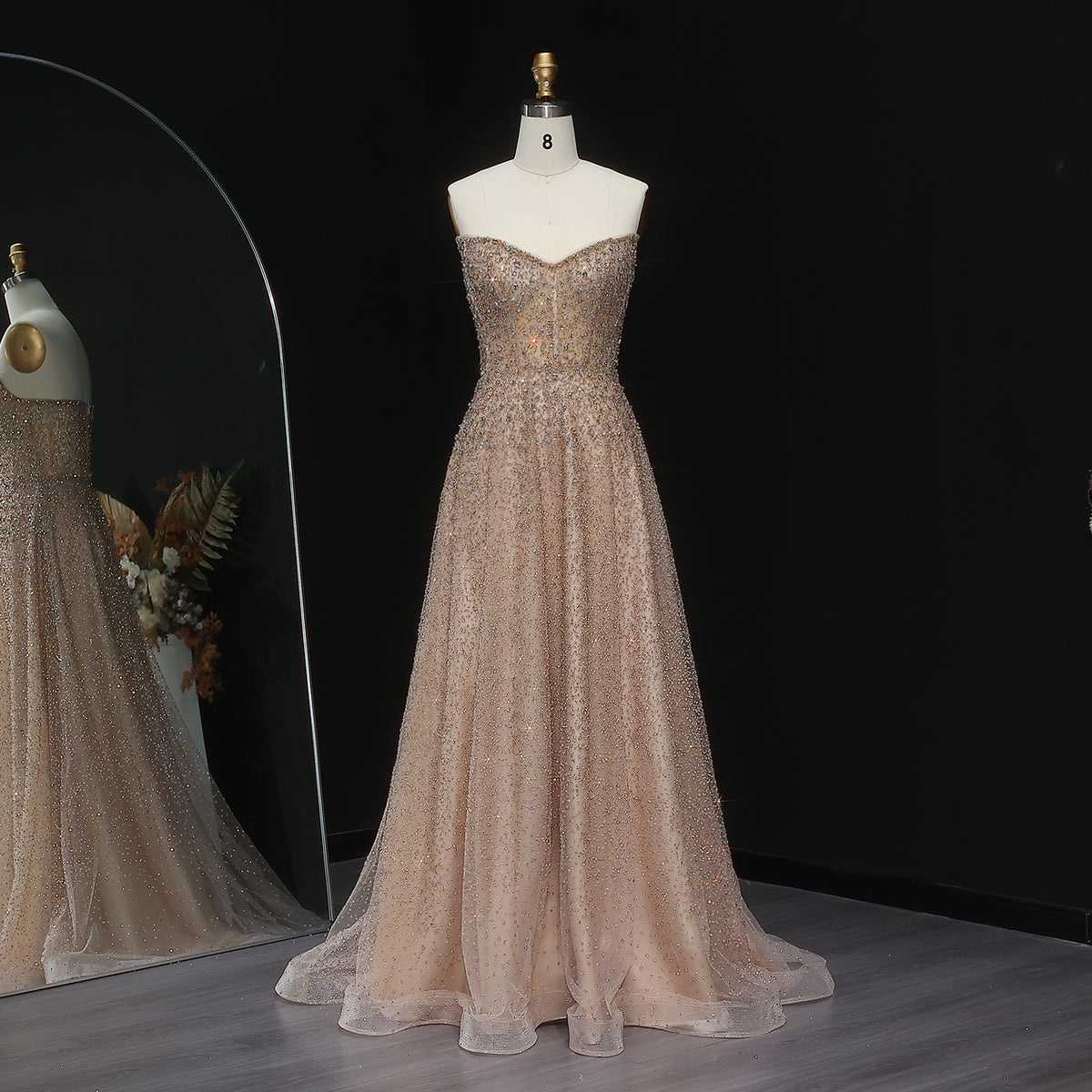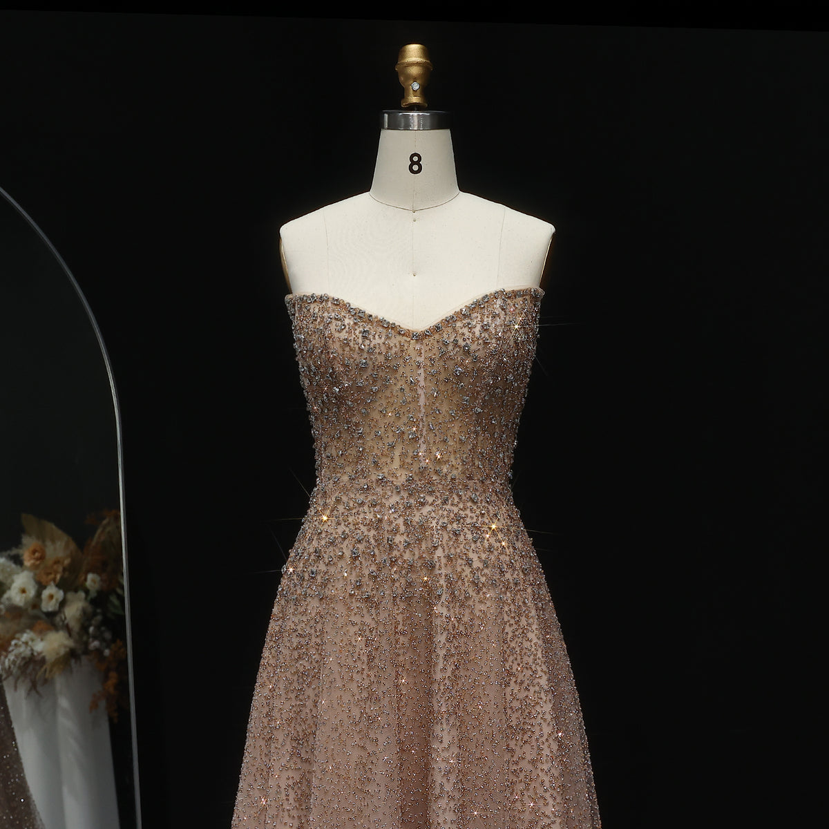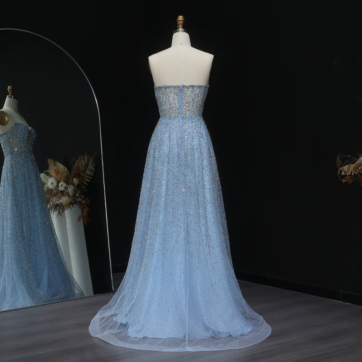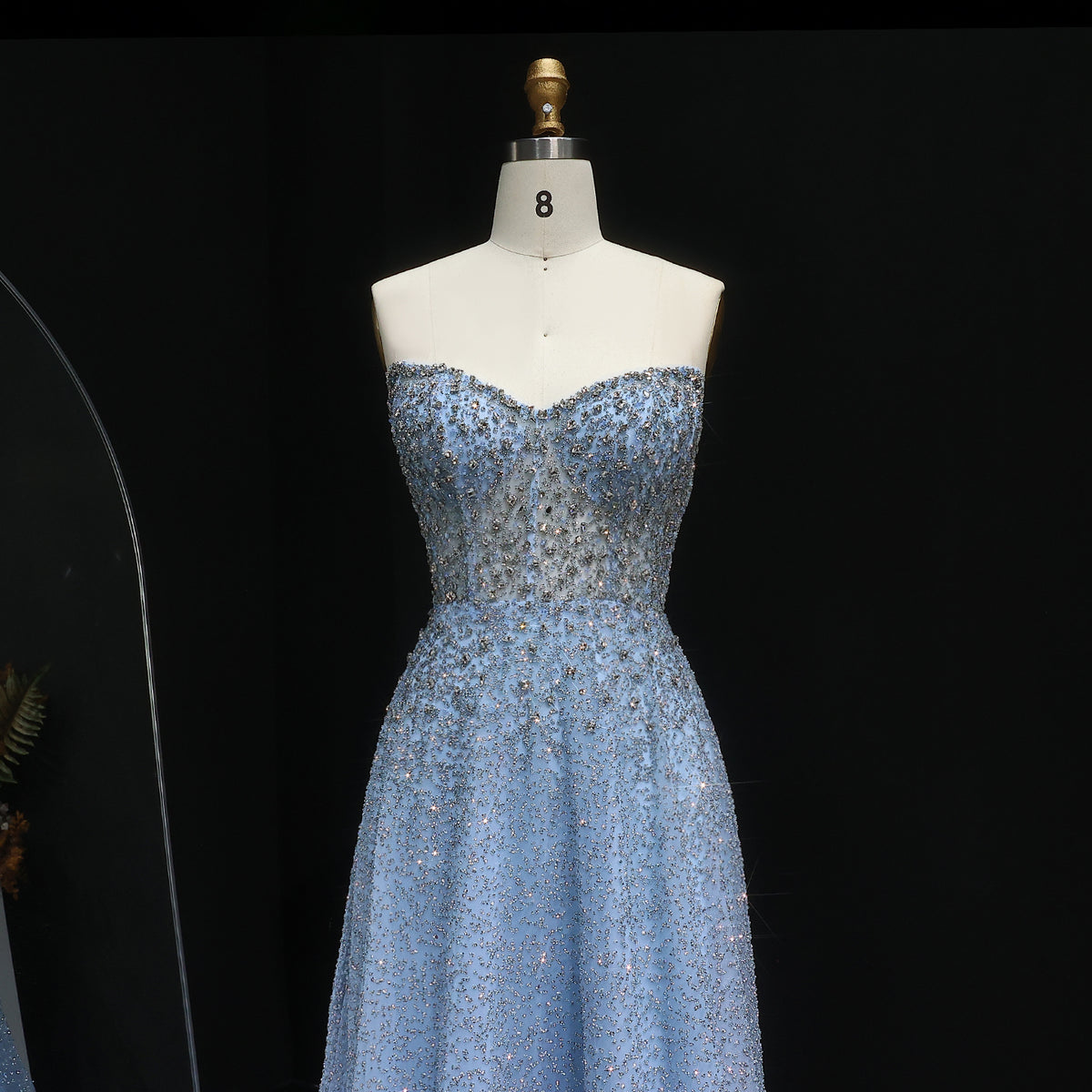 Luxury Crystal Purple Strapless Evening Dress SS699