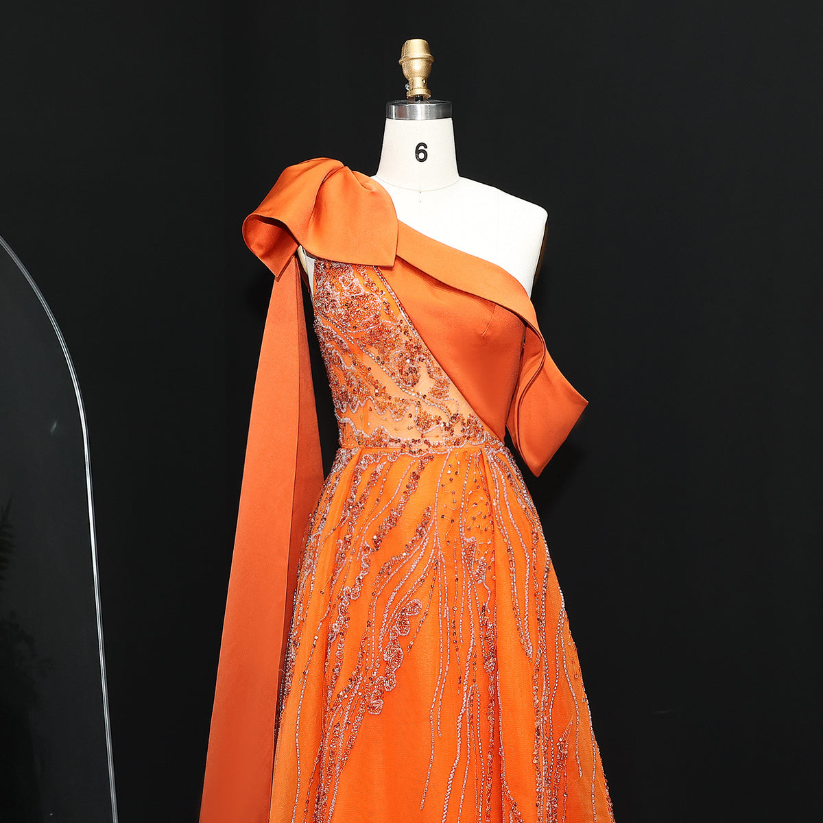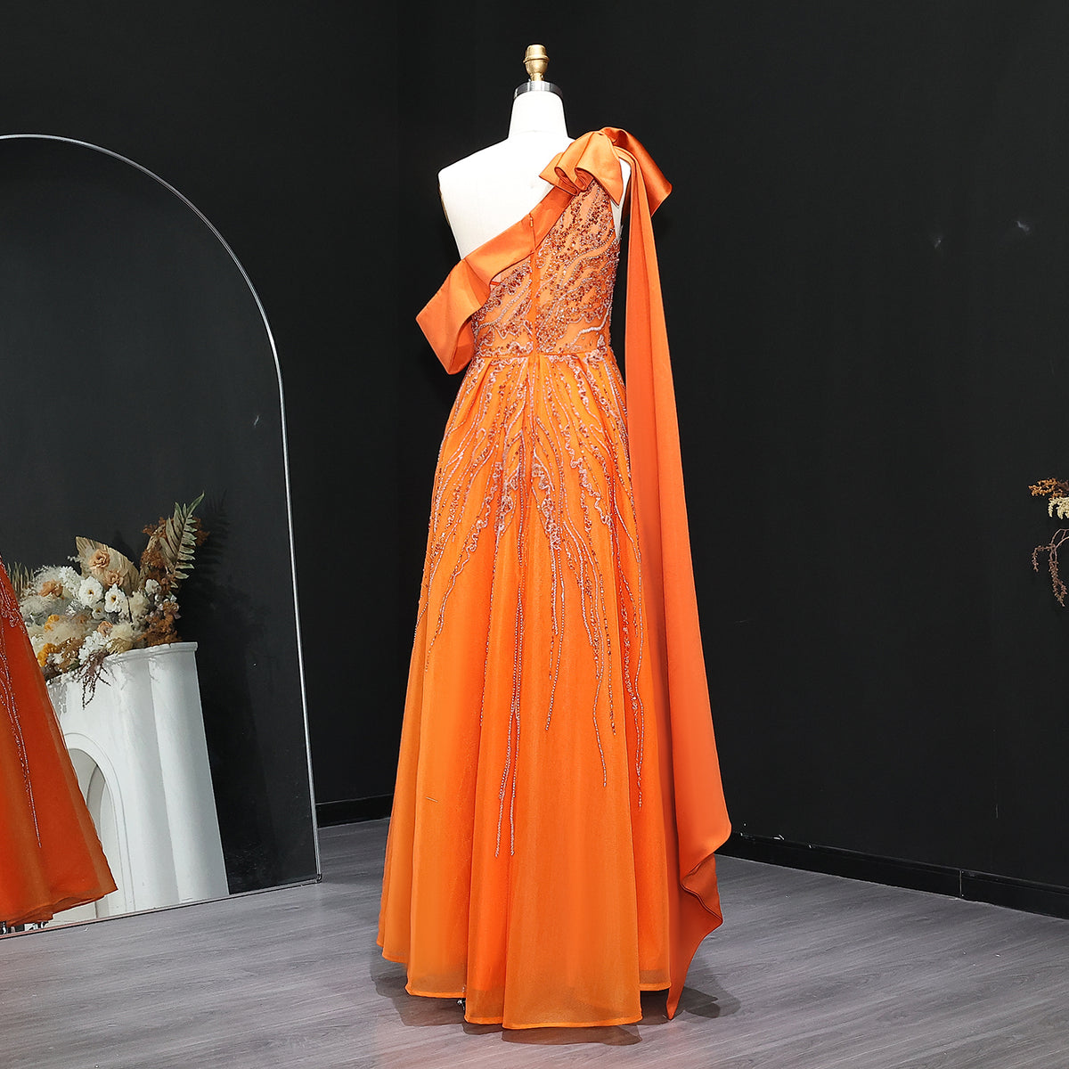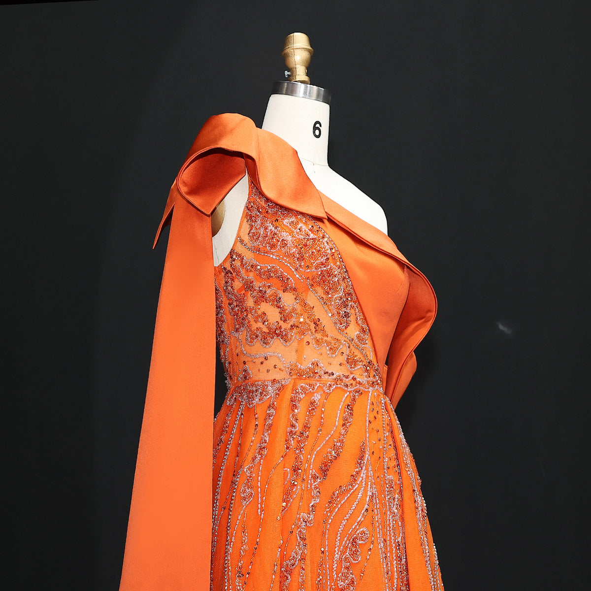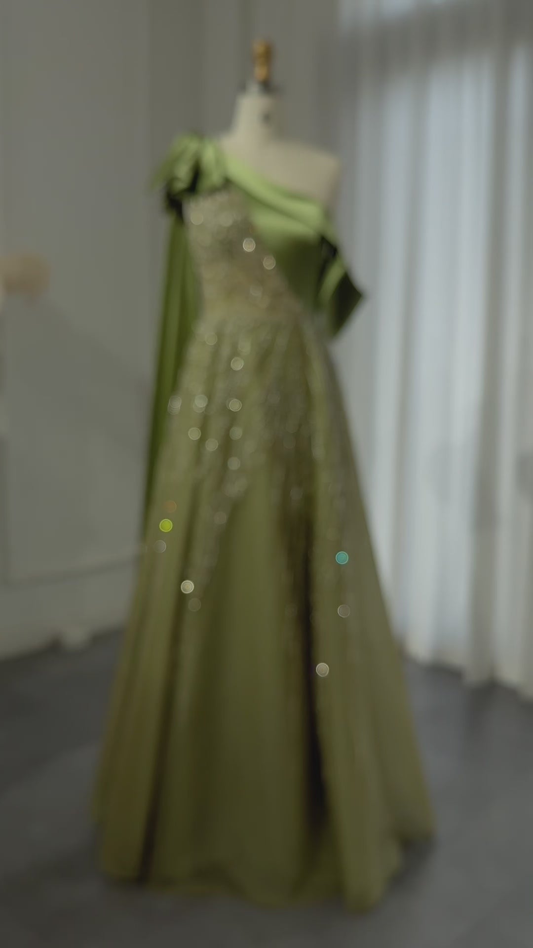 Luxury Olive Green One Shoulder Evening Dress with Cape Sleeves SS323