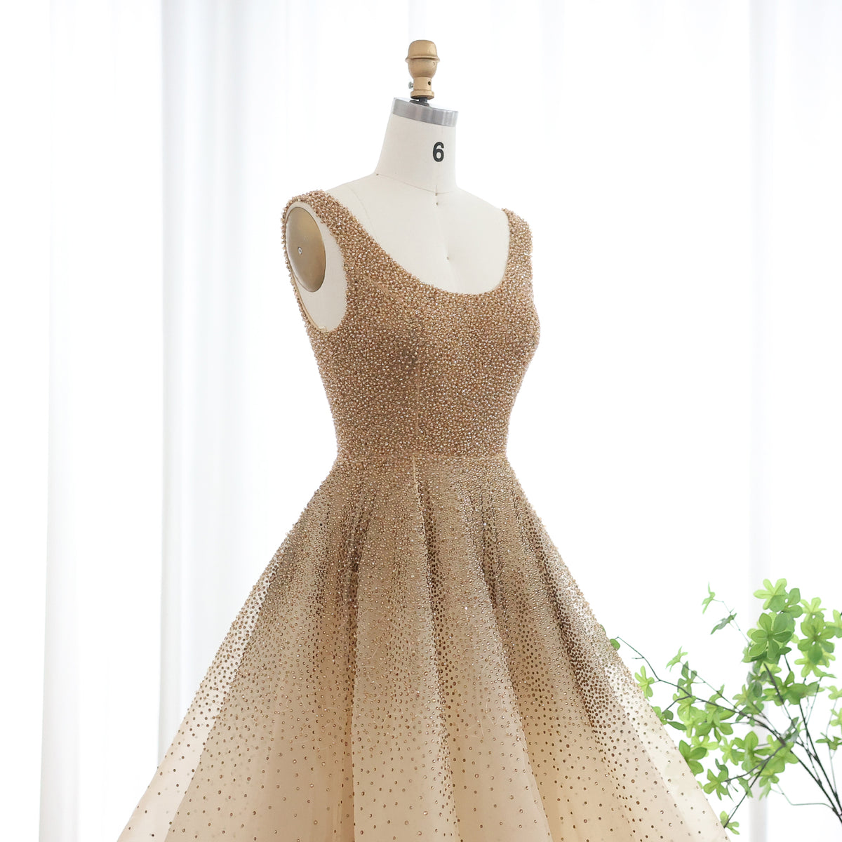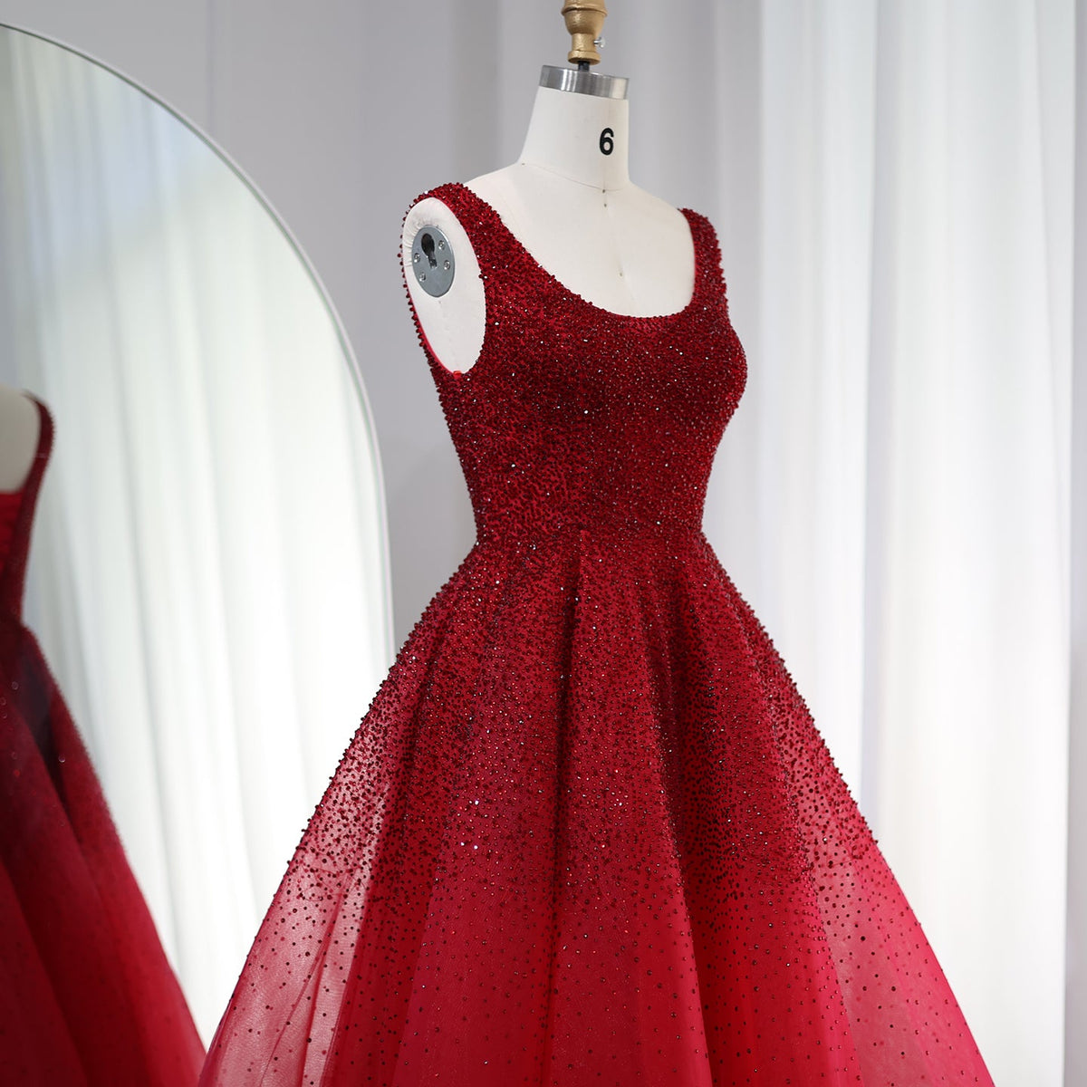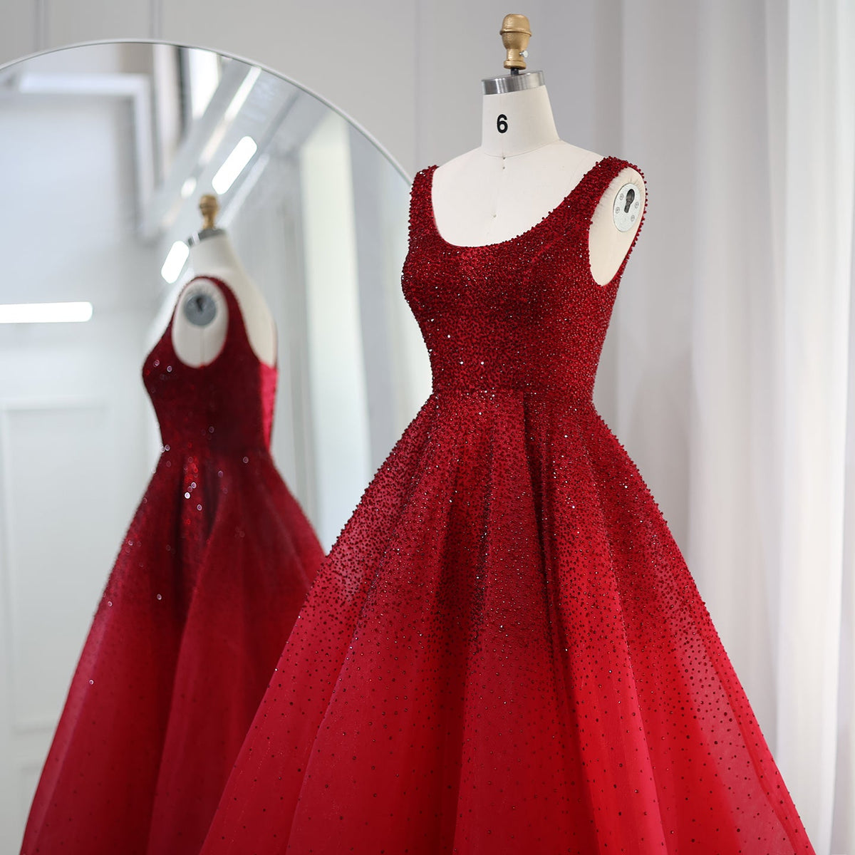 Sparkly Crystal Burgundy A-Line Scoop Neck Evening Dresses SS208