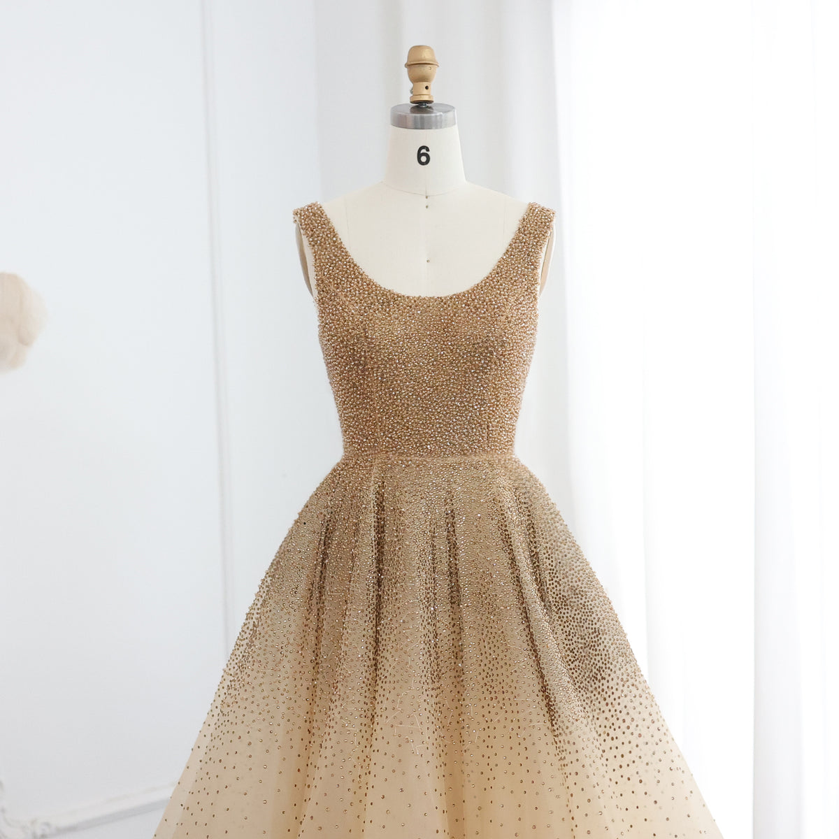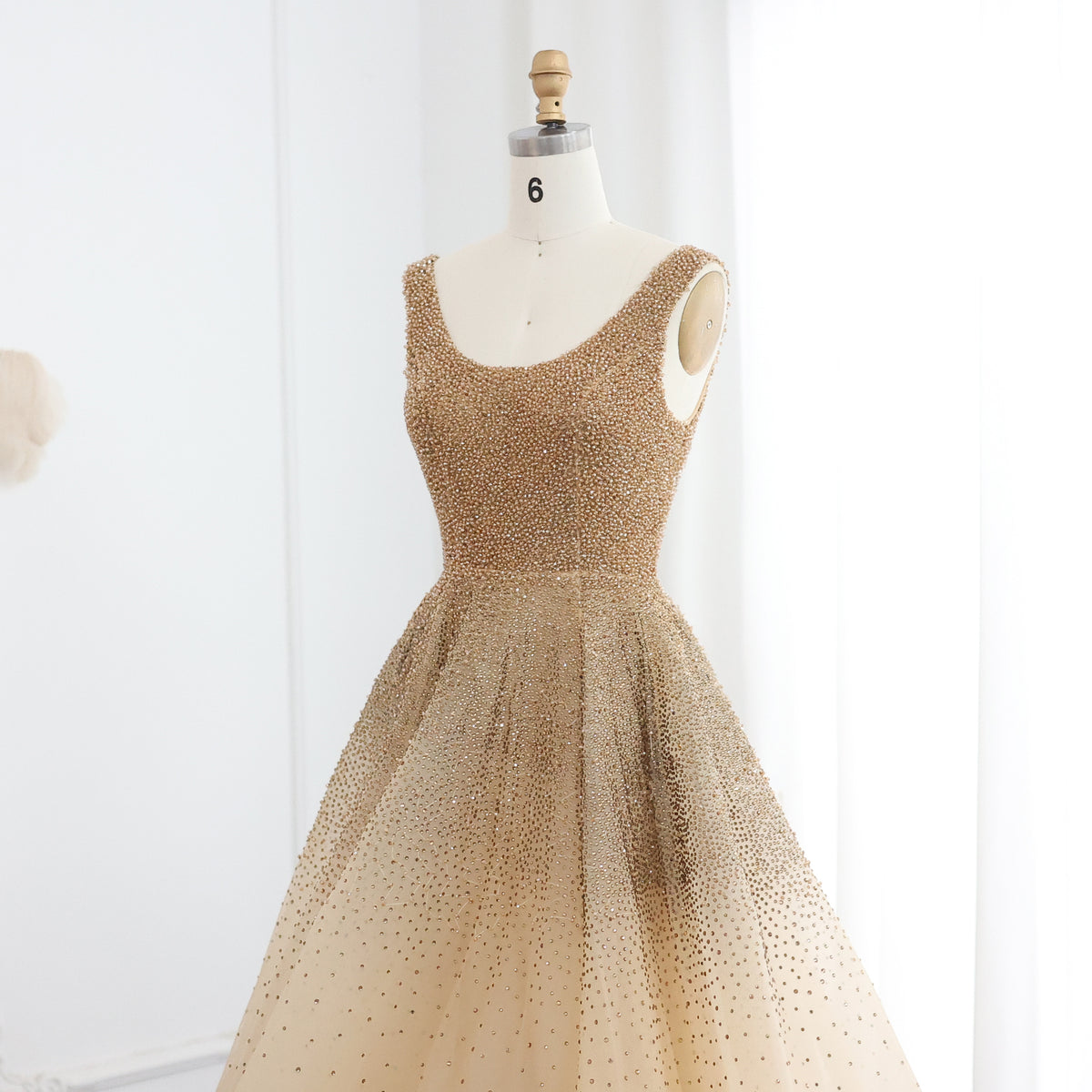 "Stand out in this stunning Sharon Said Crystal Burgundy Evening Dress. From the sparkly crystal beading to the luxurious gold detailing, this ball gown is perfect for formal events like weddings or proms. With its elegant design and high-quality materials, you'll feel like you're walking the red carpet."
