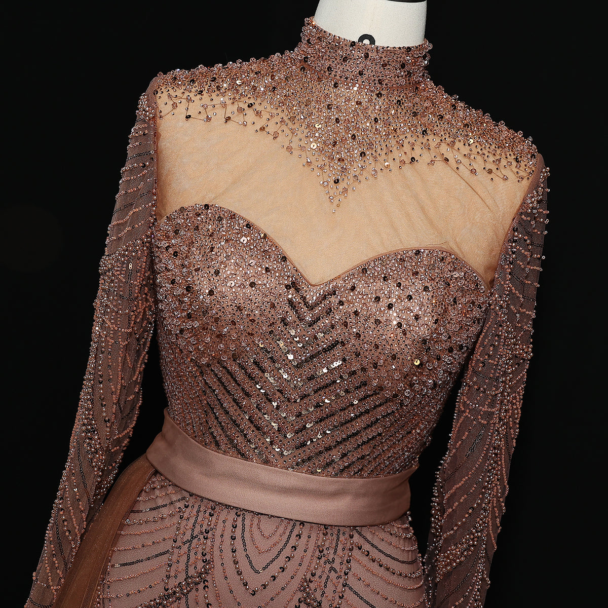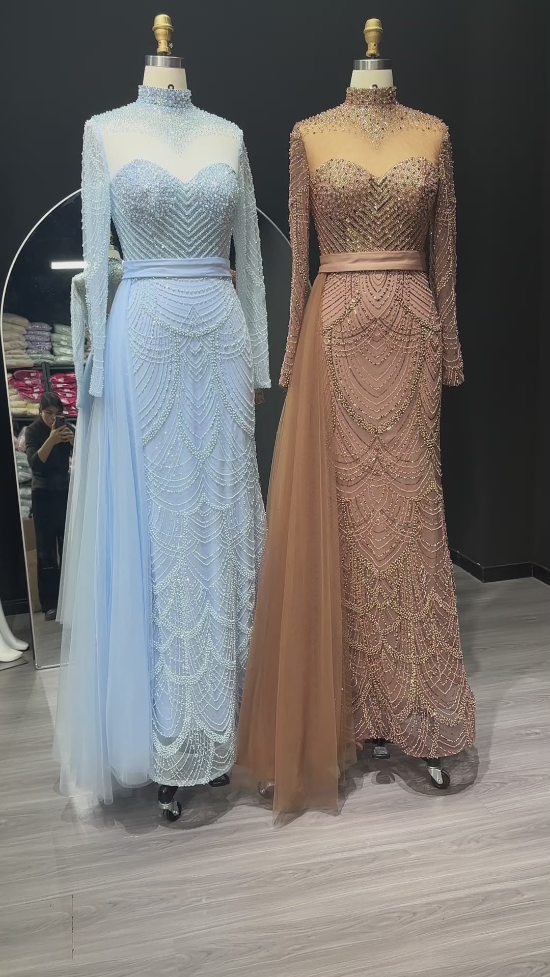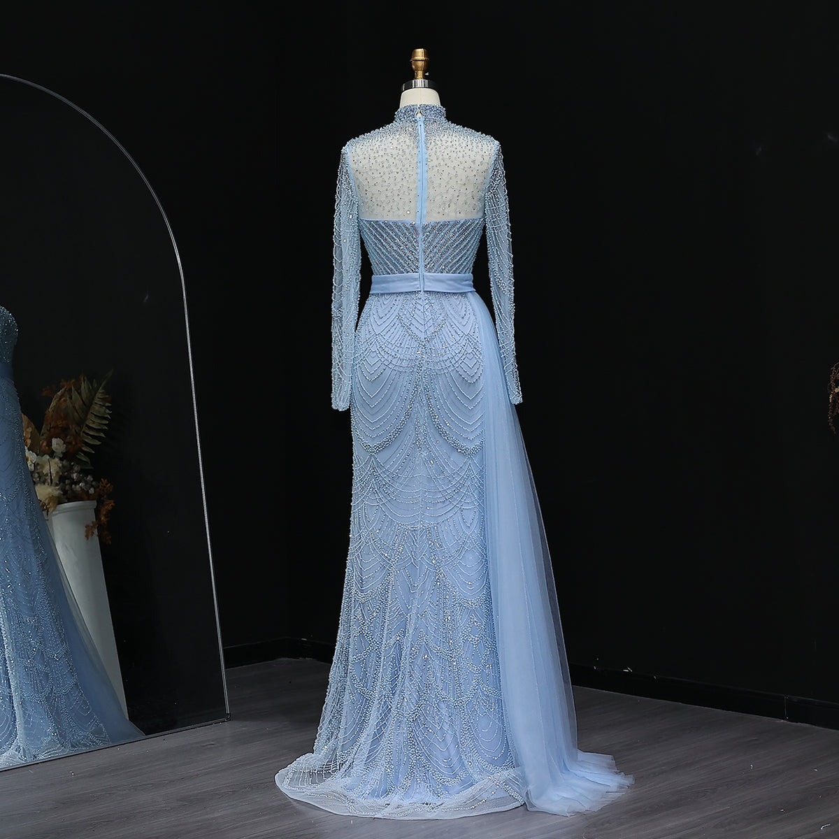 Stunning Beaded Sky Blue Long Sleeves Evening Gown SS015