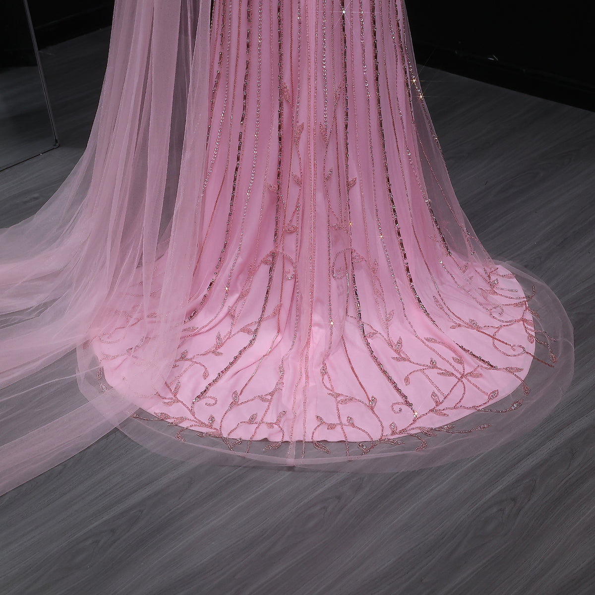 Chic Off Shoulder Blush Pink Evening Gown with Cape Sleeves SS466