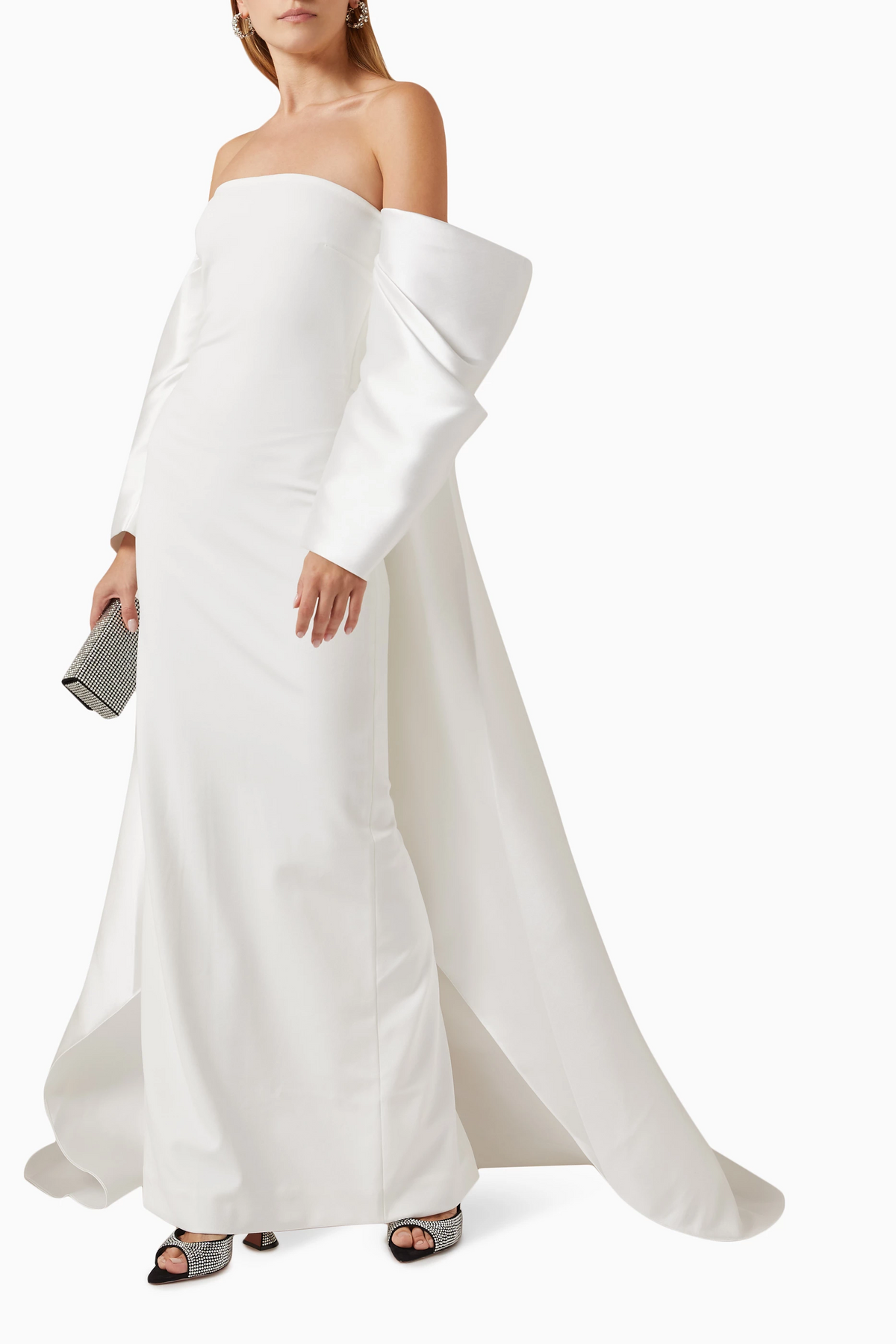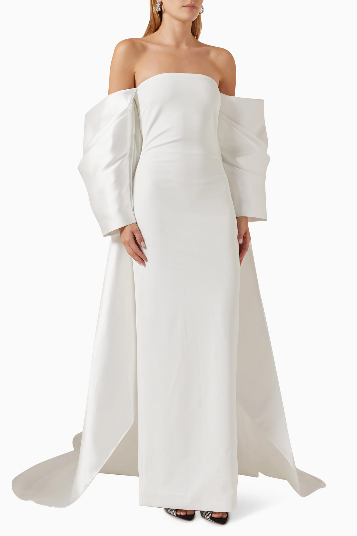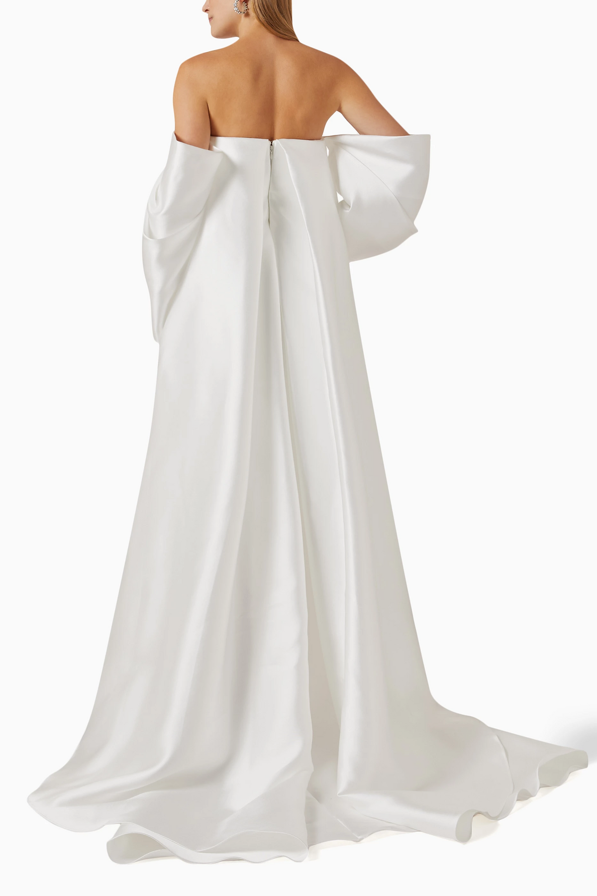 Classic White Strapless Satin Evening Dress with Cape SF399