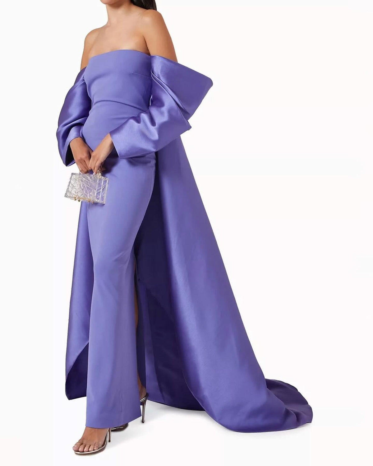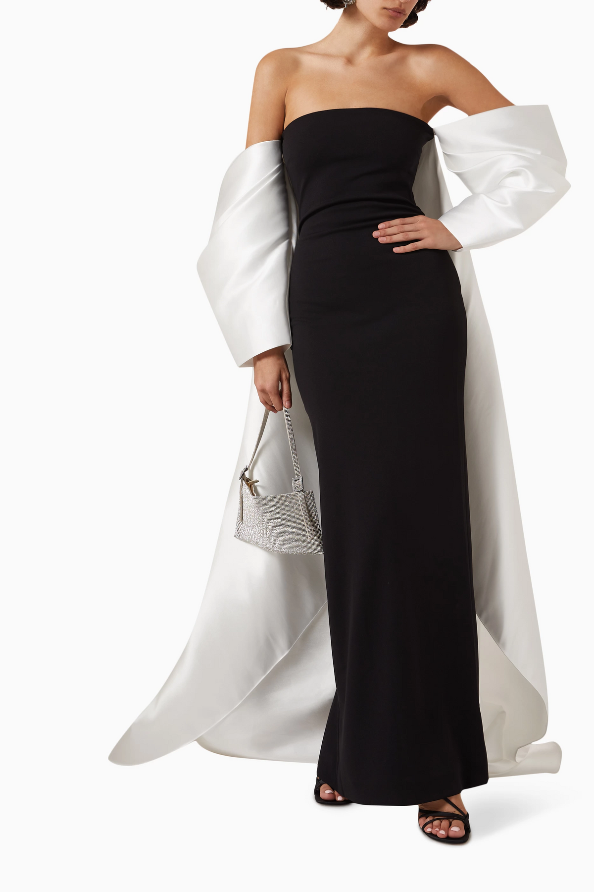 Elevate your style with our Classic White Strapless Satin Evening Dress with Cape SF399. The sleek strapless design and elegant cape add sophistication to any special occasion. Made from high-quality satin, this dress is guaranteed to make a statement. Available in classic white, it's the perfect choice for a timeless look.