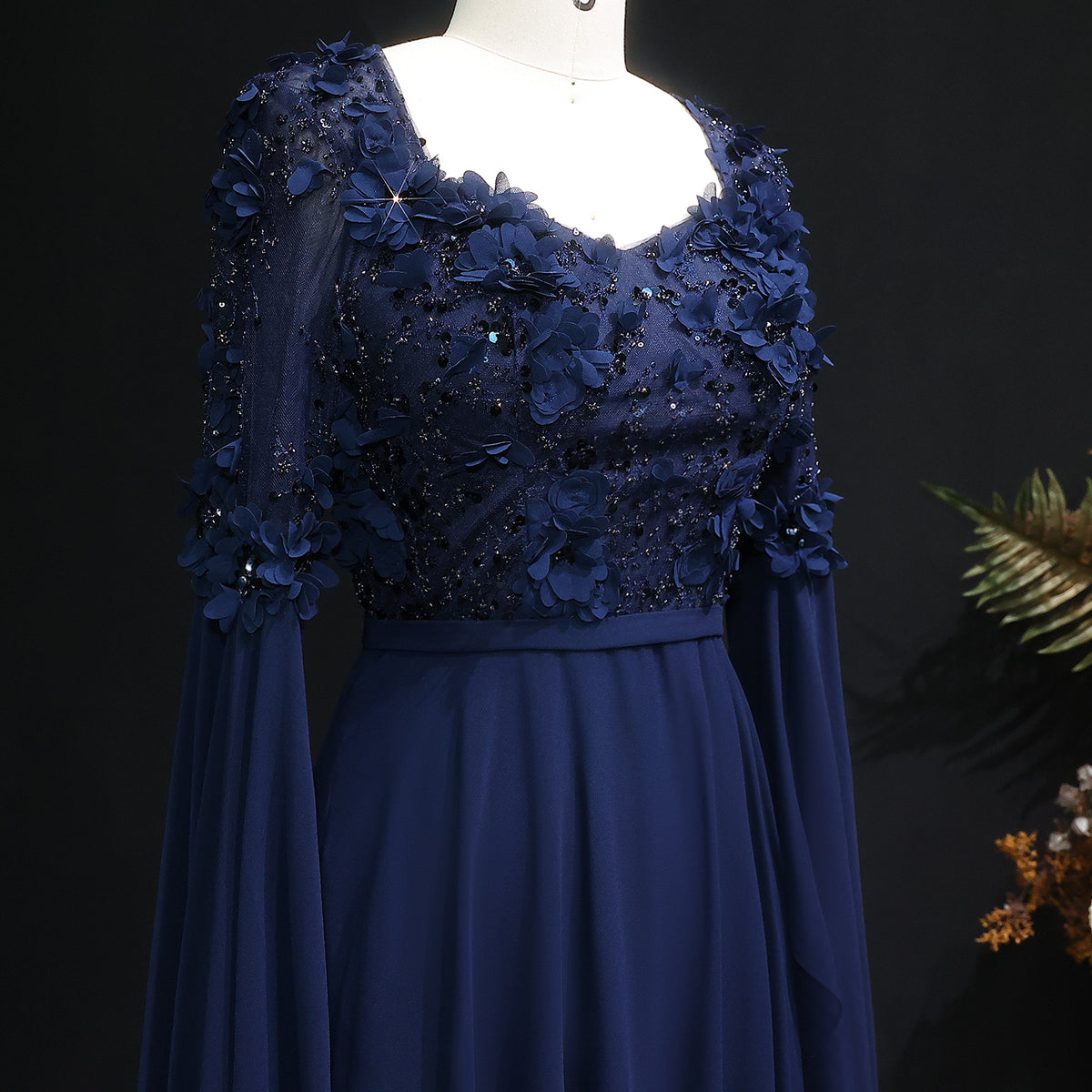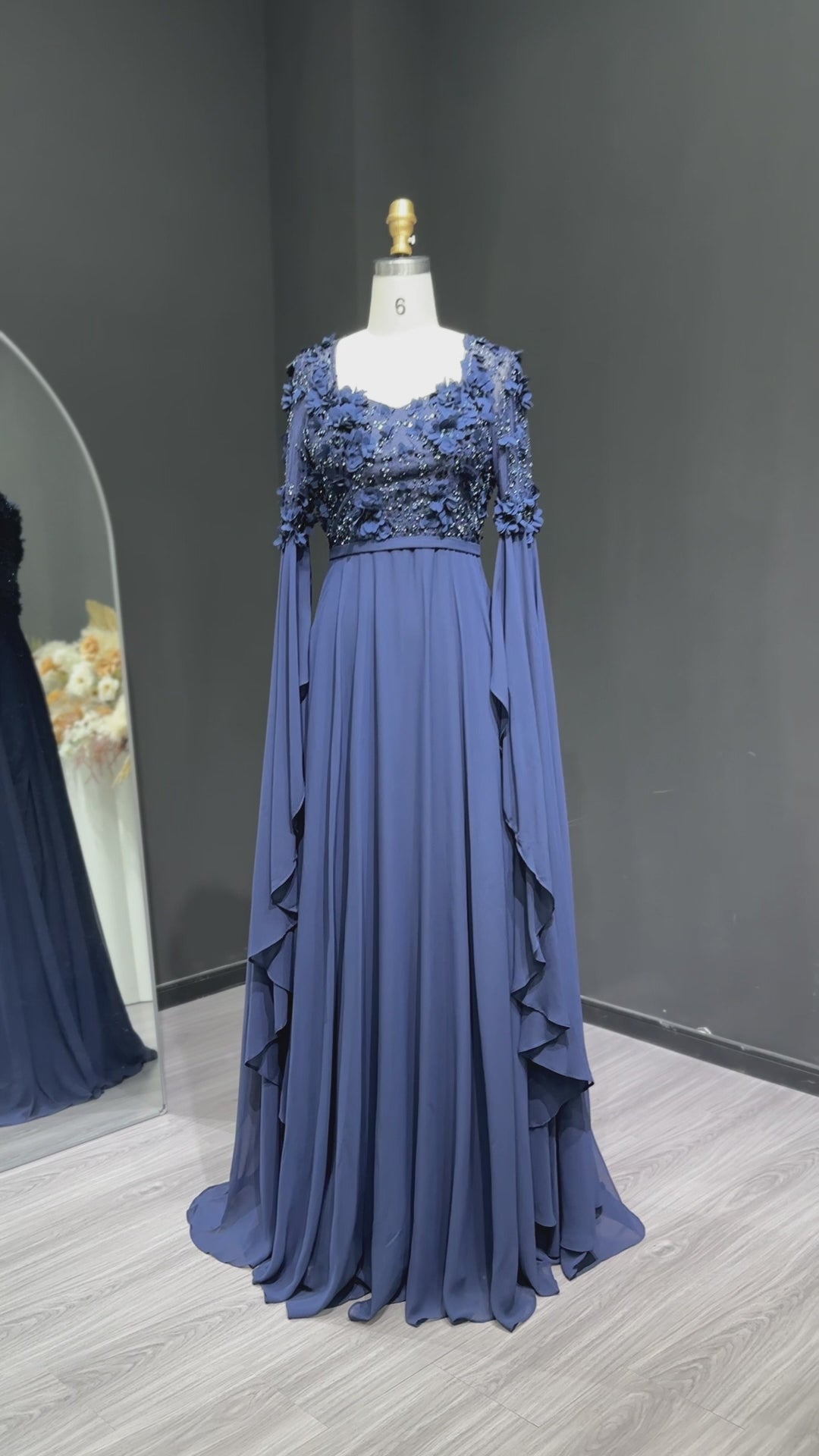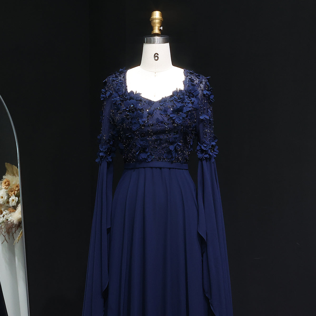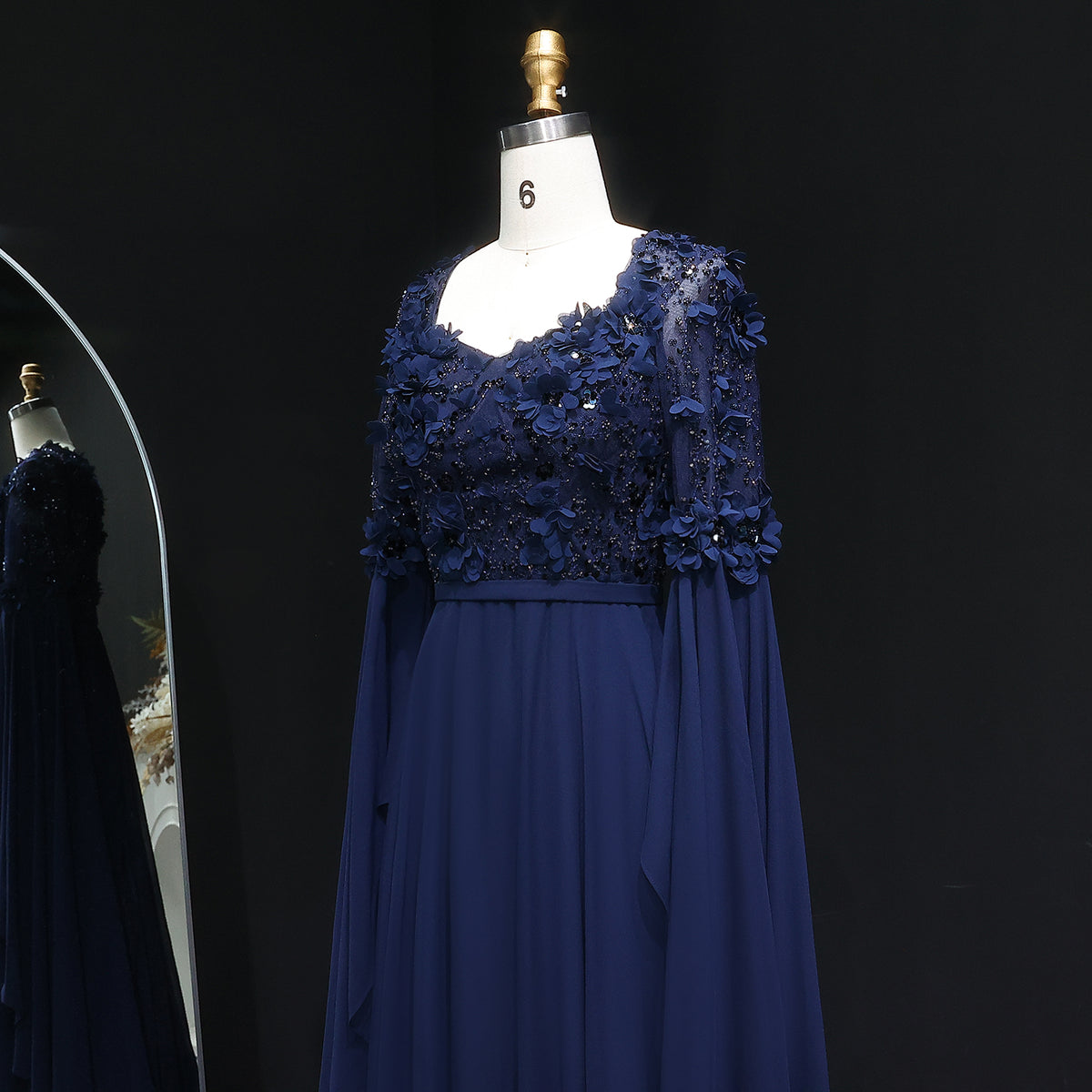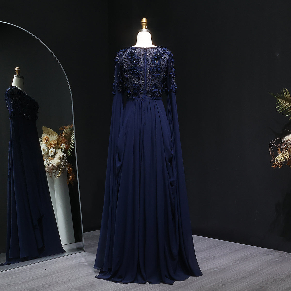 Elegant 3D Flowers Beaded Evening Dress with Cape Sleeves SF353