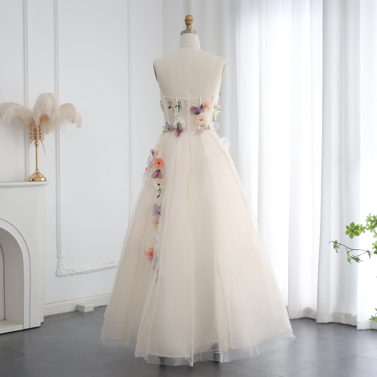 As an industry expert, you'll appreciate the sophisticated design of Sharon Said Elegant 3D Flowers Khaki A-line Evening Dresses. With a sweetheart neckline and midi length, this dress is perfect for weddings or formal events. The 3D flowers add a unique touch, making you stand out in the evening.