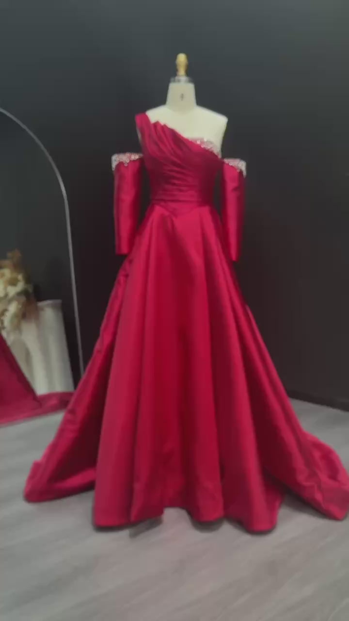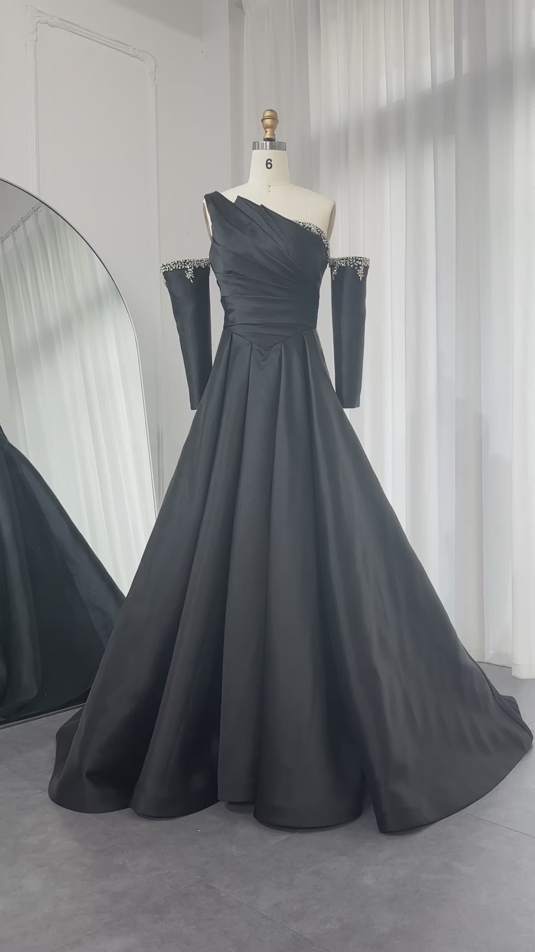 Elegant Black Satin Crystal One Shoulder Evening Dress SF272