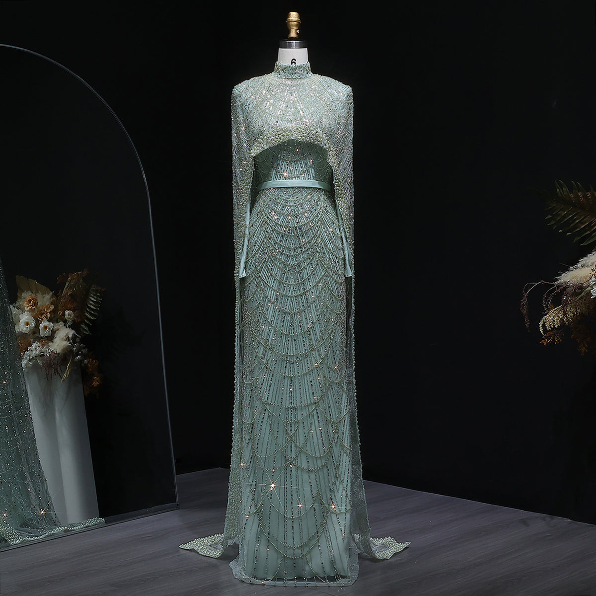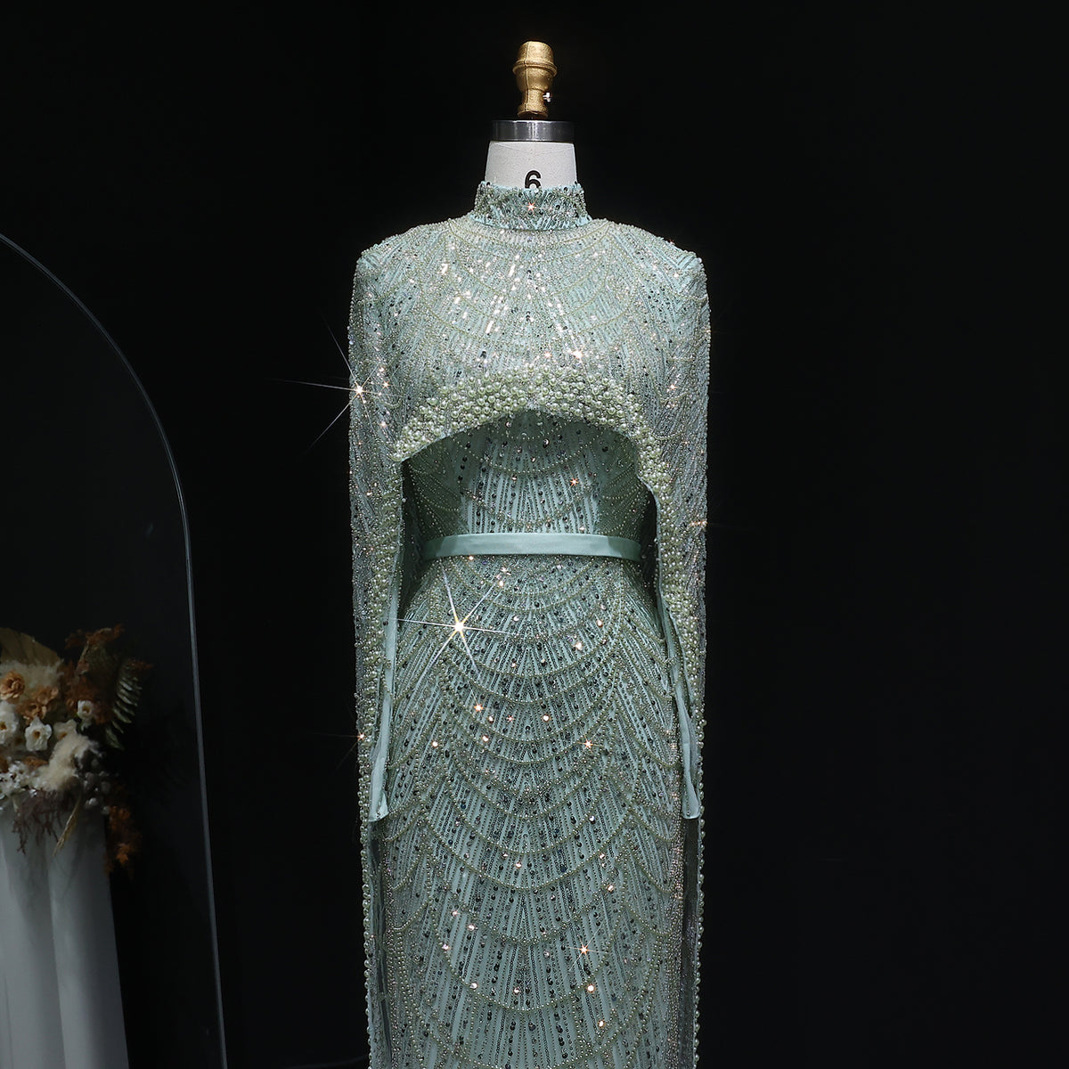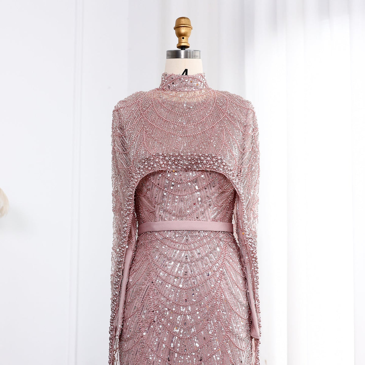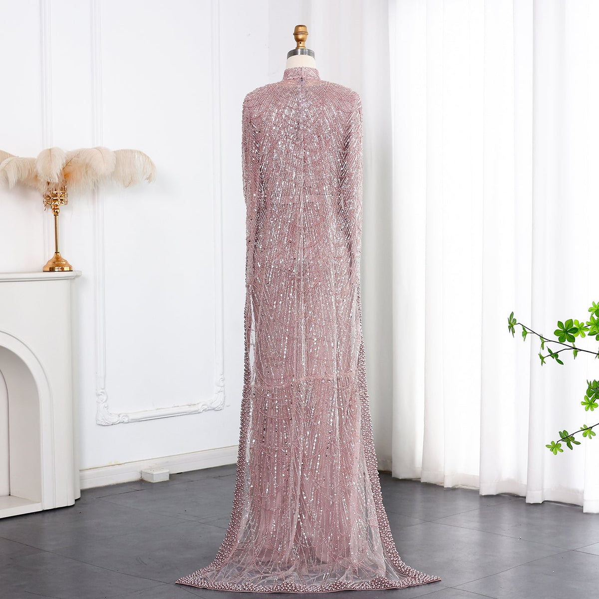 Luxury Long Sleeves Nude Evening Dress with Cape SS369A