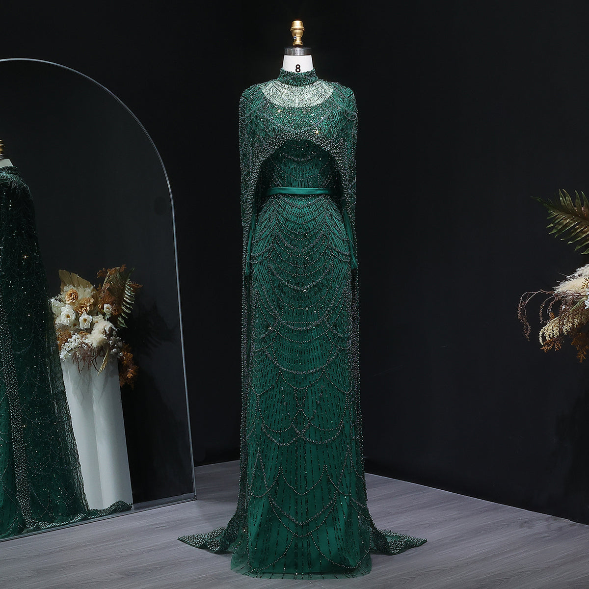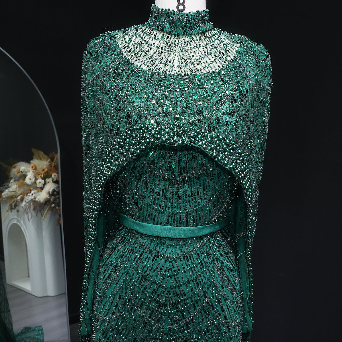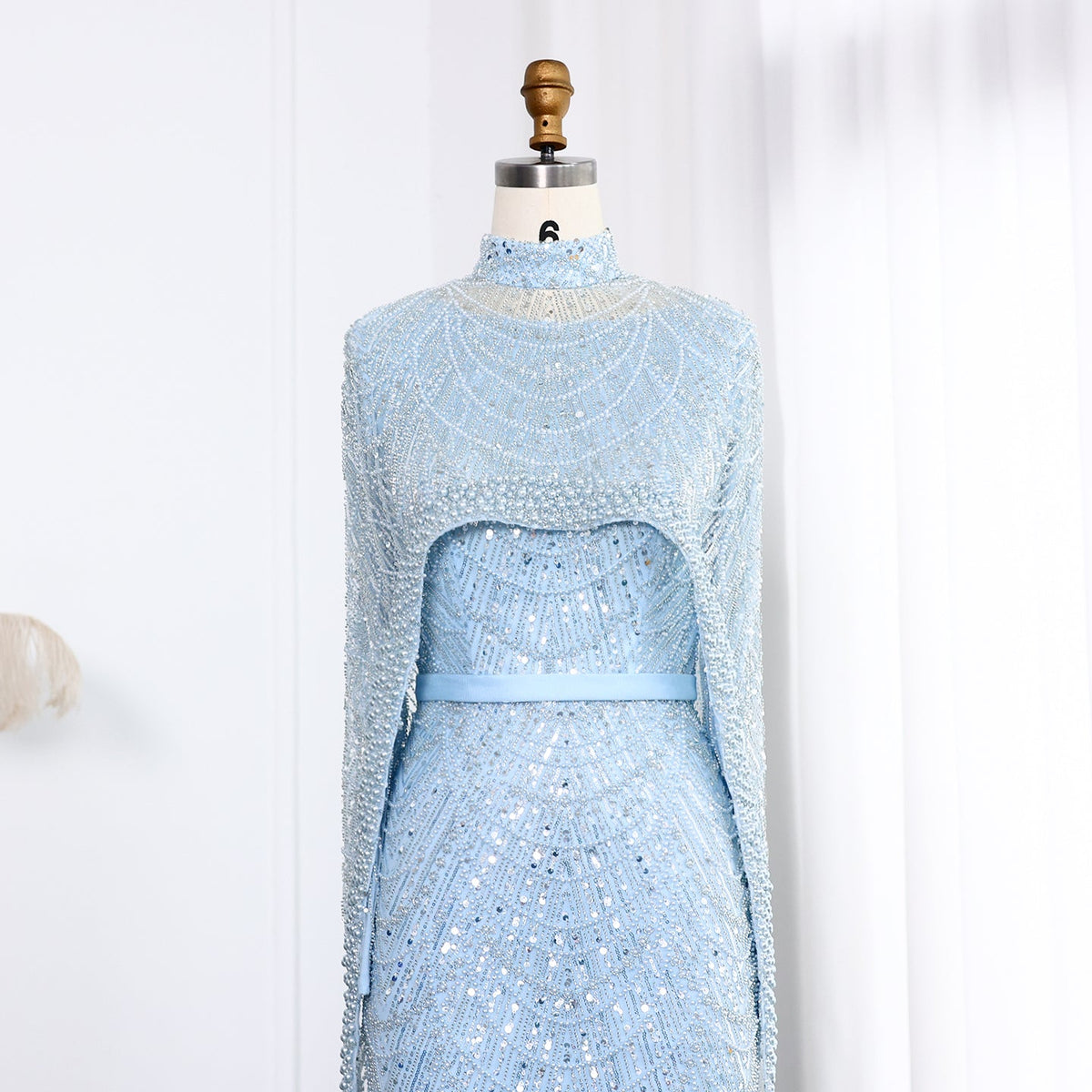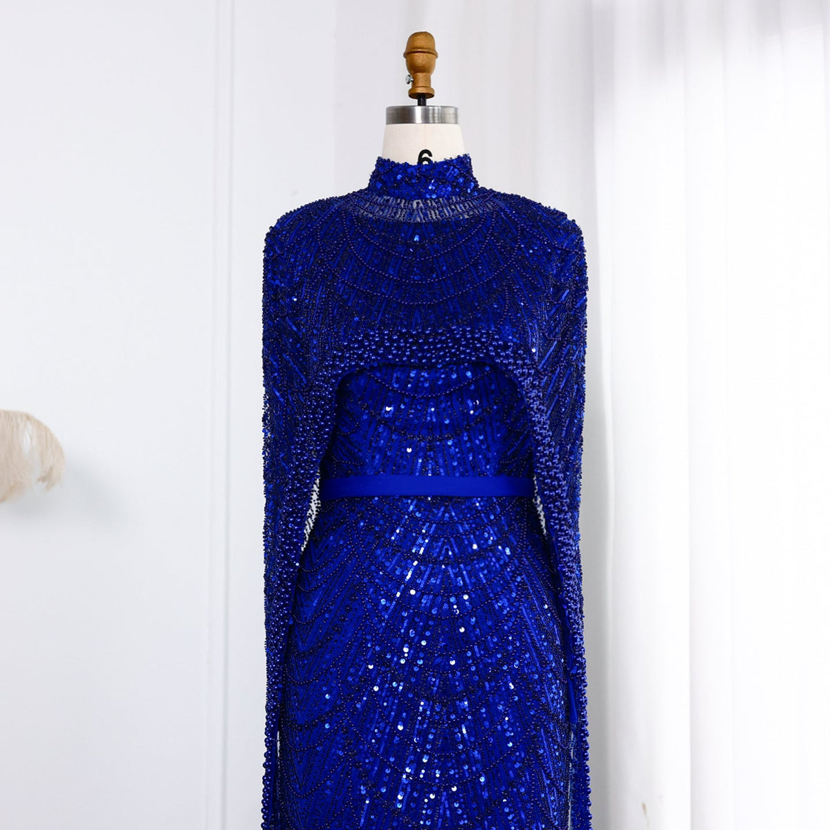 Luxury Long Sleeves Nude Evening Dress with Cape SS369A