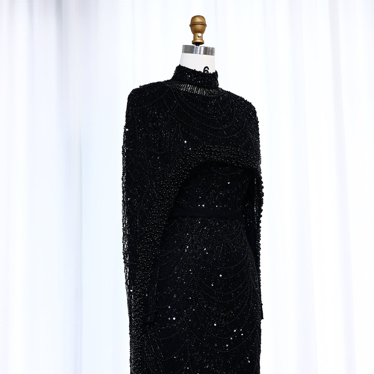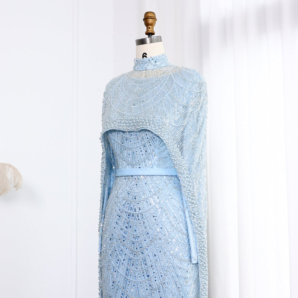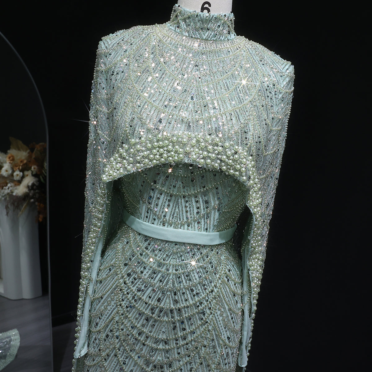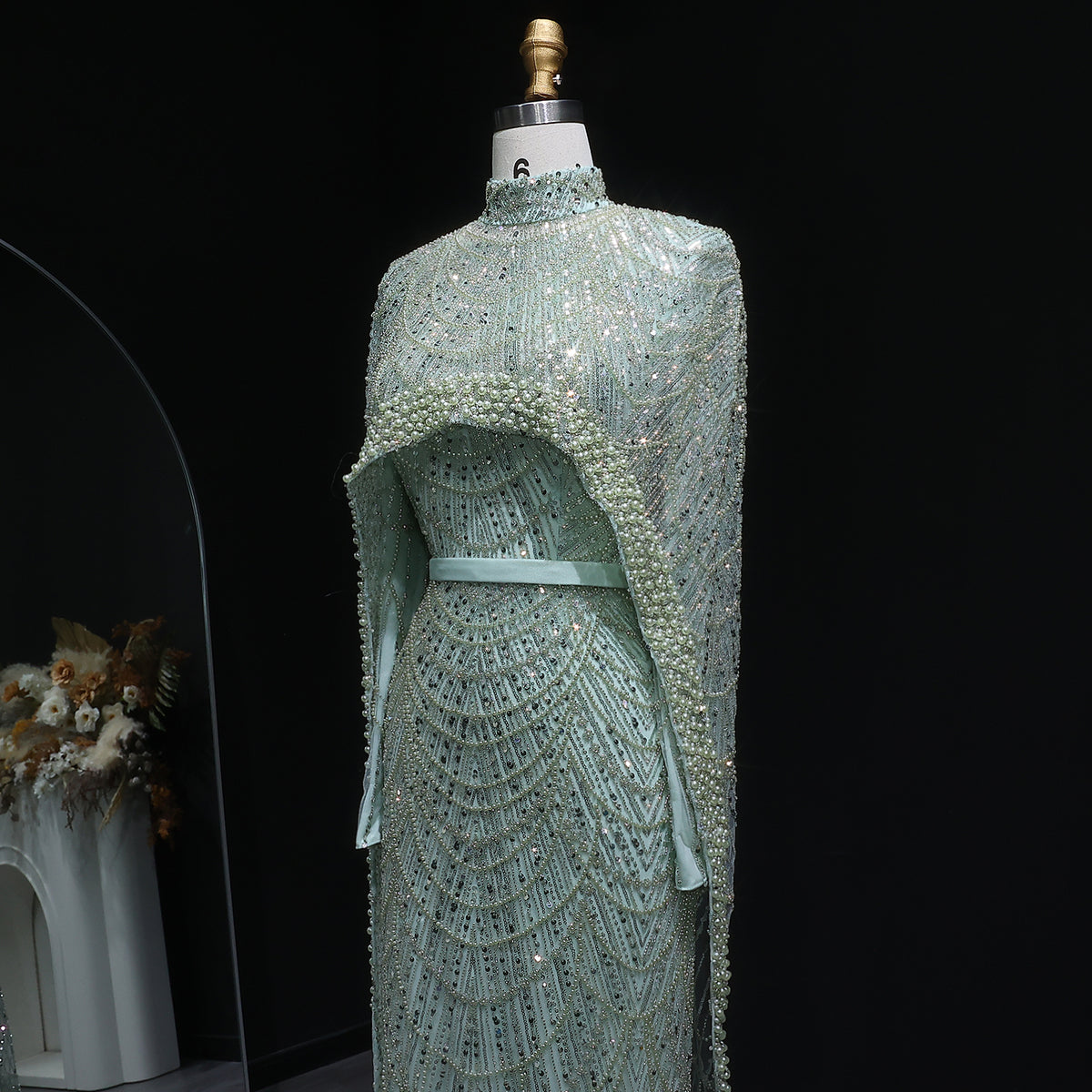Luxury Long Sleeves Nude Evening Dress with Cape SS369A