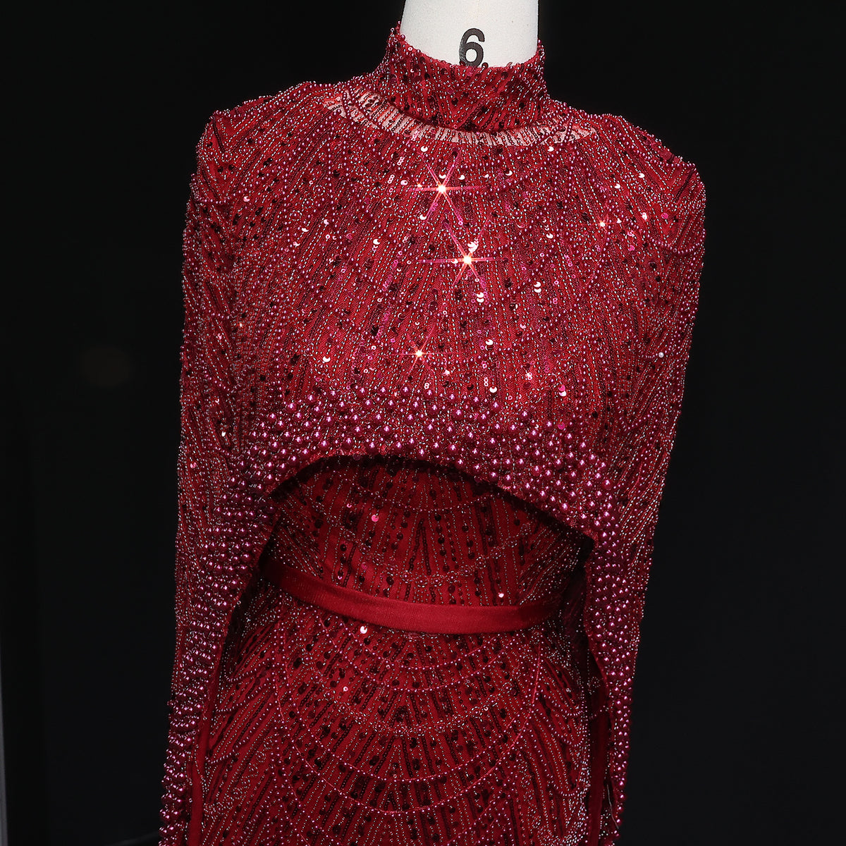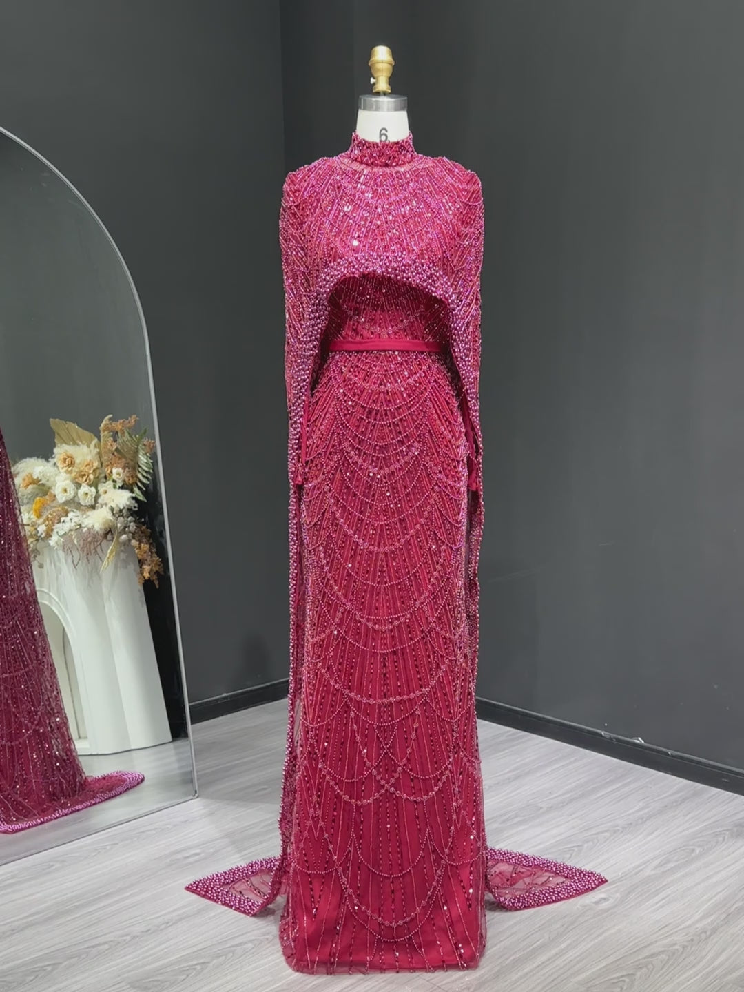 Elevate your evening ensemble with our Luxury Long Sleeves Nude Evening Dress with Cape SS369A. This stunning dress features luxurious long sleeves and a flowing cape, adding elegance and sophistication to any occasion. Make a statement and exude confidence in this timeless piece.