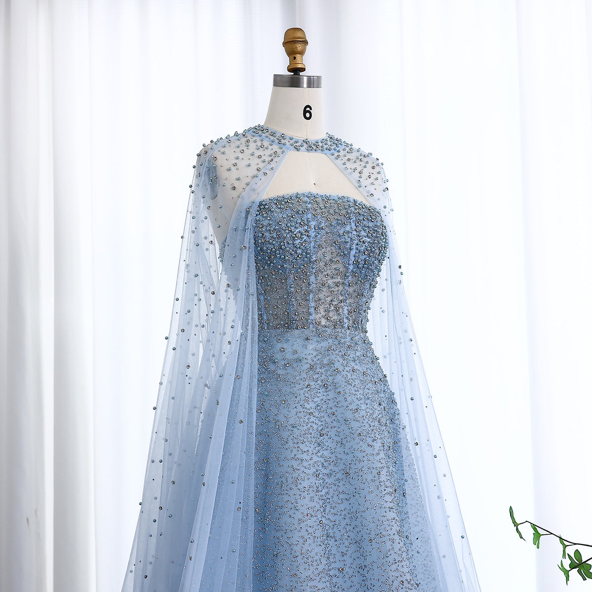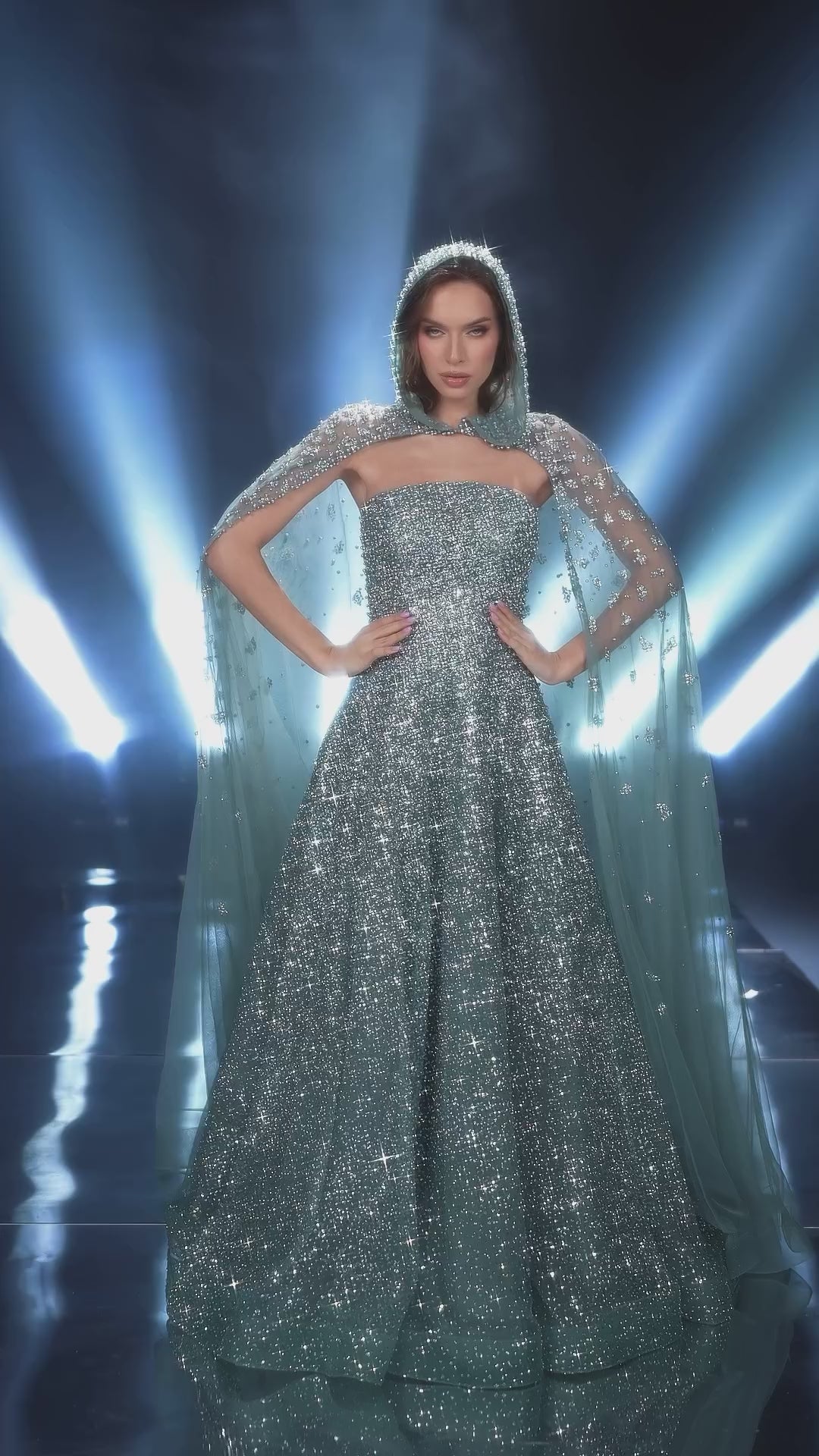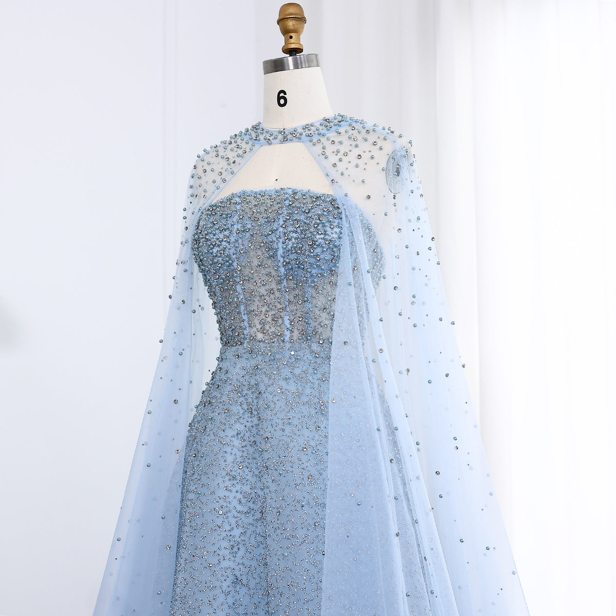 Sparkly Crystal Turquoise Evening Dress with Cape SS651