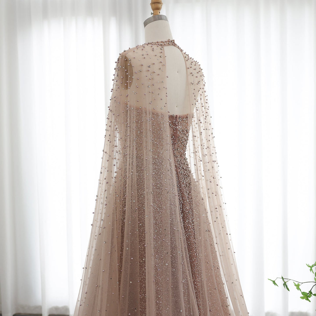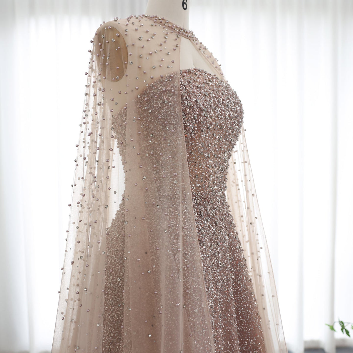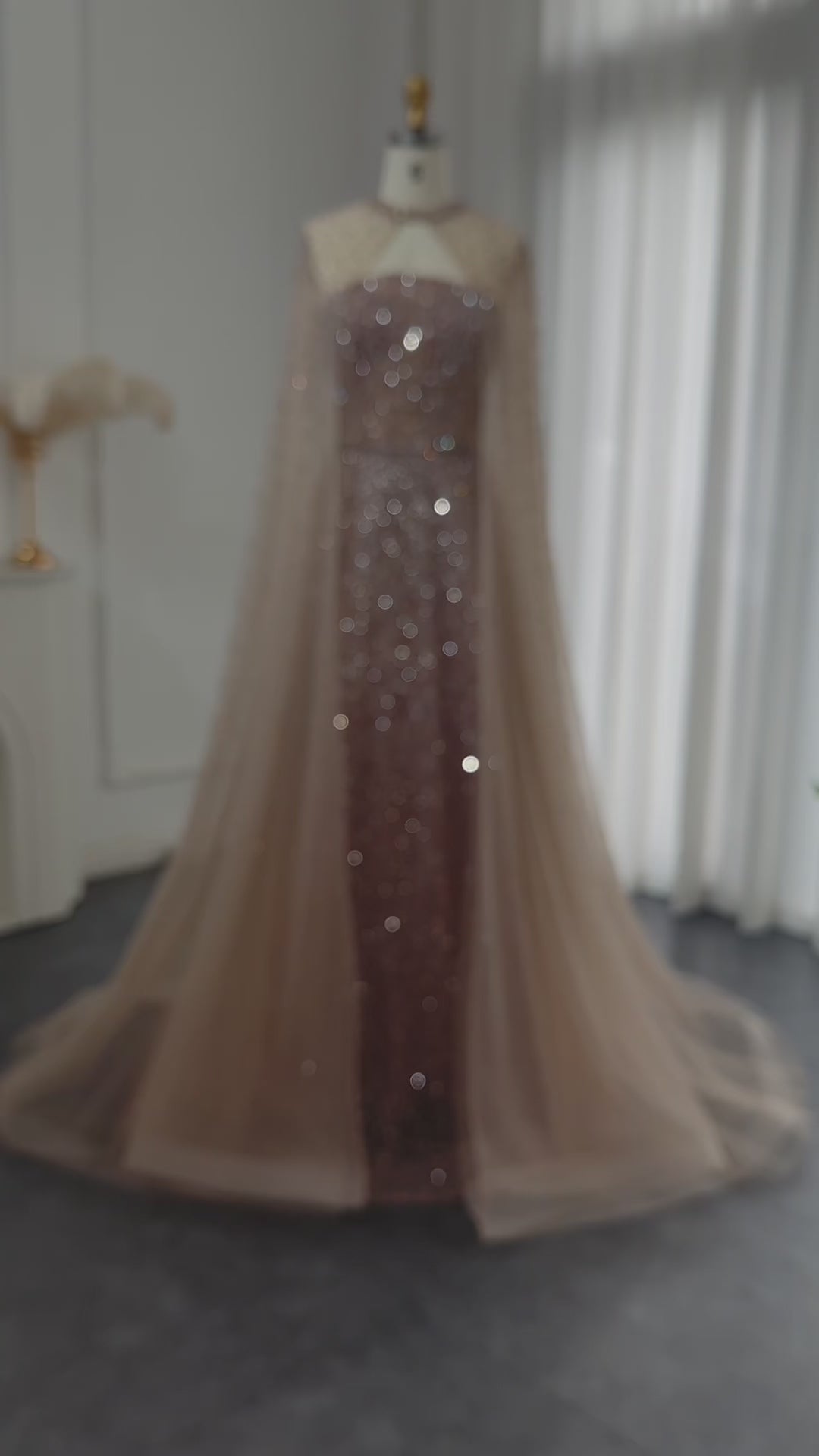 Sparkly Crystal Turquoise Evening Dress with Cape SS651