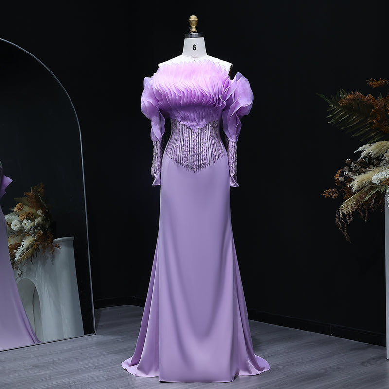 Elegant Beaded Lilac Off Shoulder Evening Dress XD-006