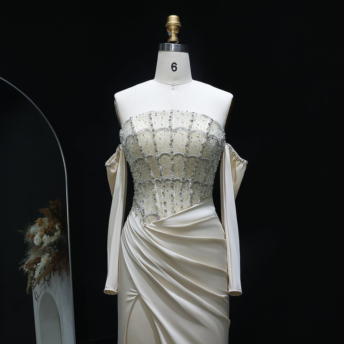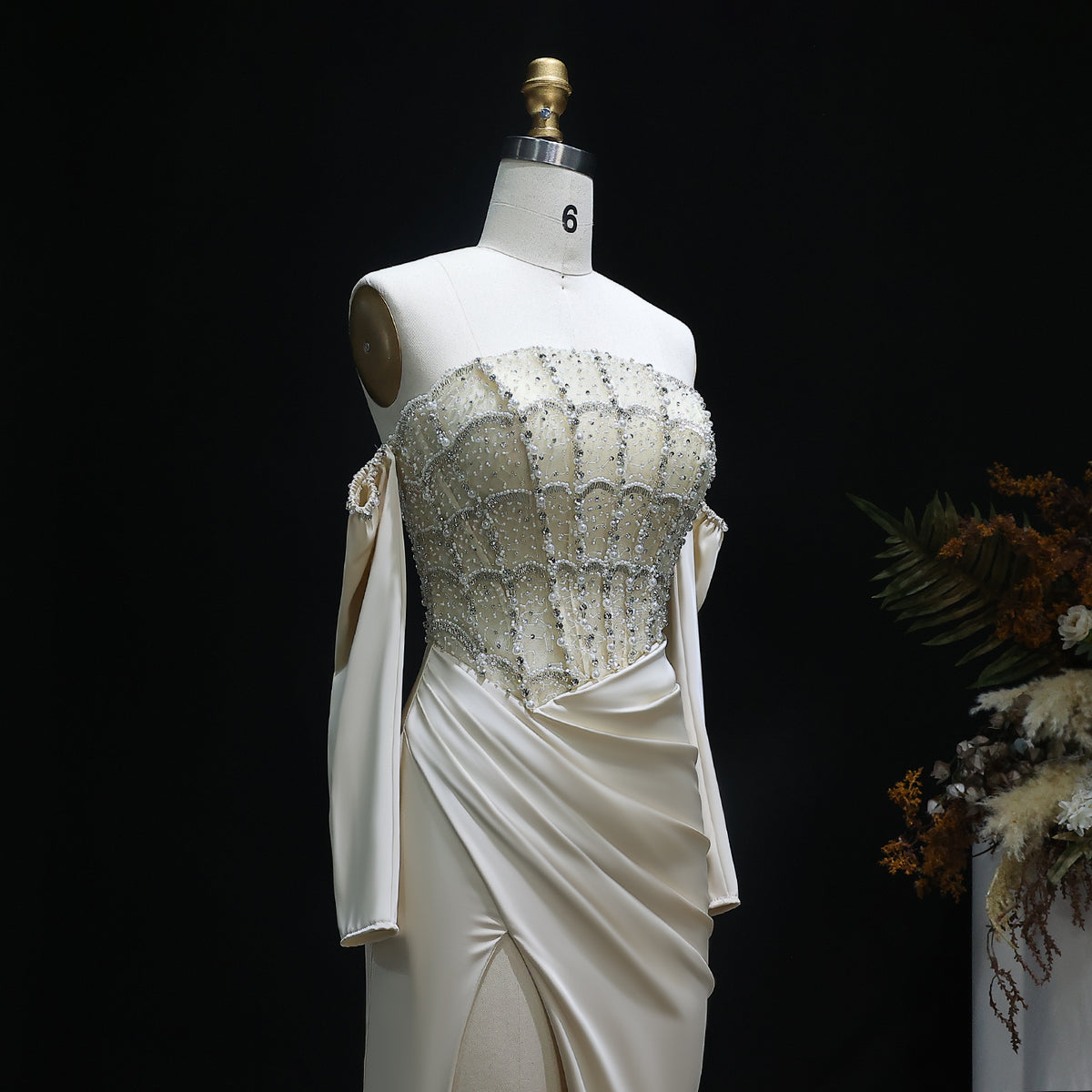 Luxury Mermaid White Evening Dress with High Slit SS416