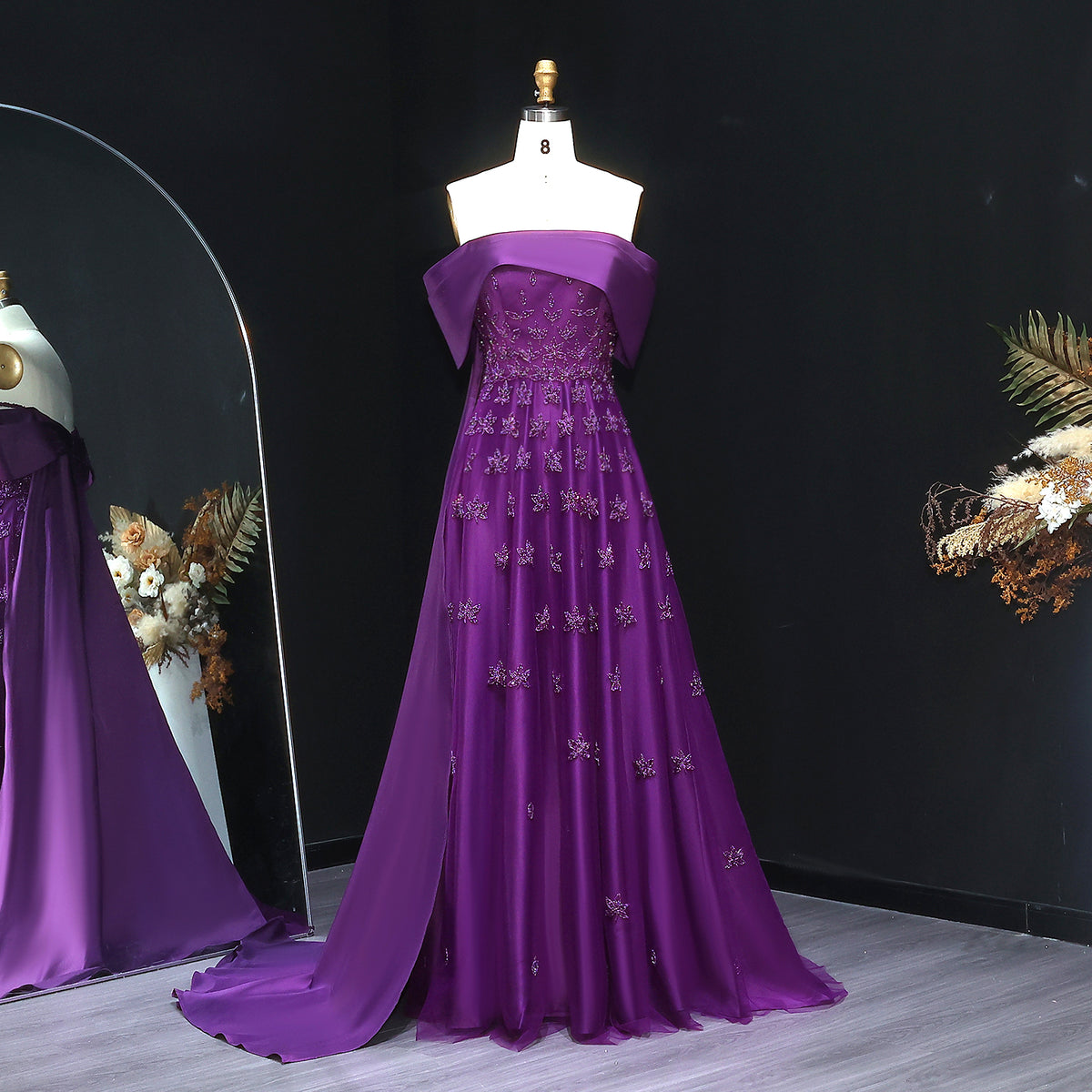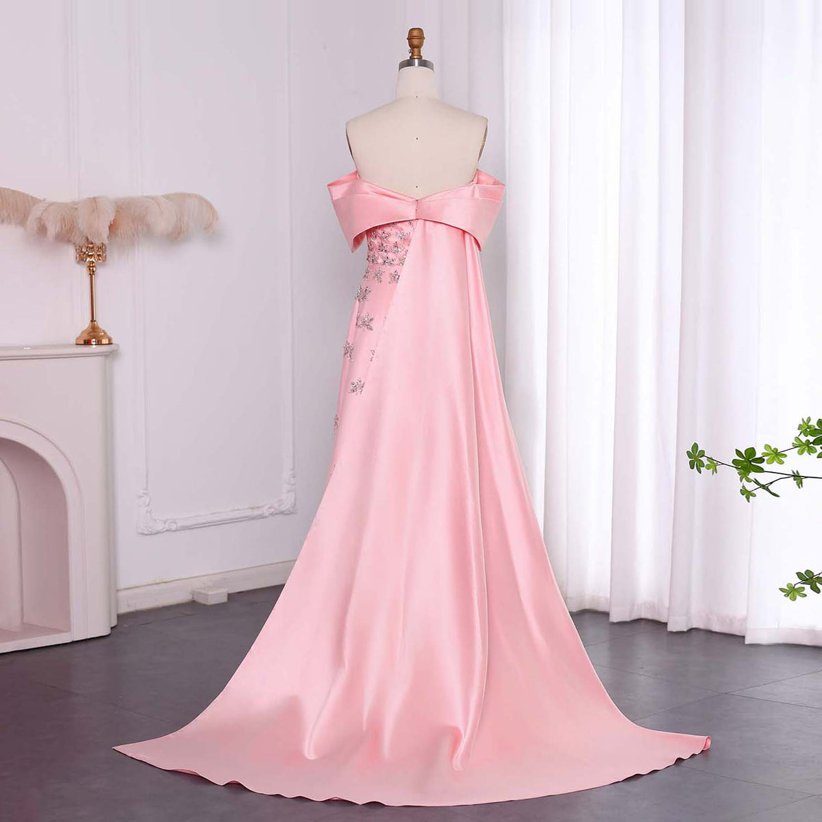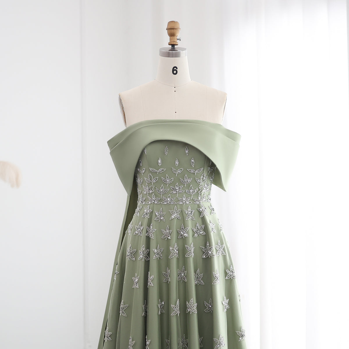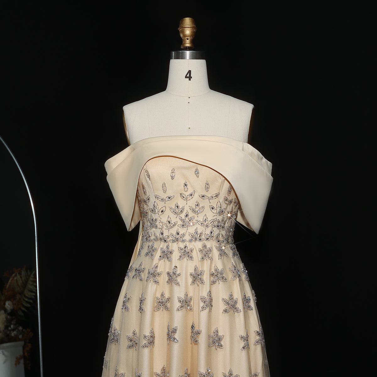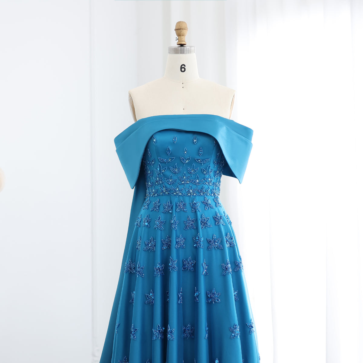 Experience the ultimate in luxury with the Sharon Said Arabic Yellow Satin Evening Dress. The elegant off shoulder design is enhanced by a stunning cape train, adding a touch of drama to any occasion. Perfect for weddings, parties, or any special event, this dress is a guaranteed head-turner.