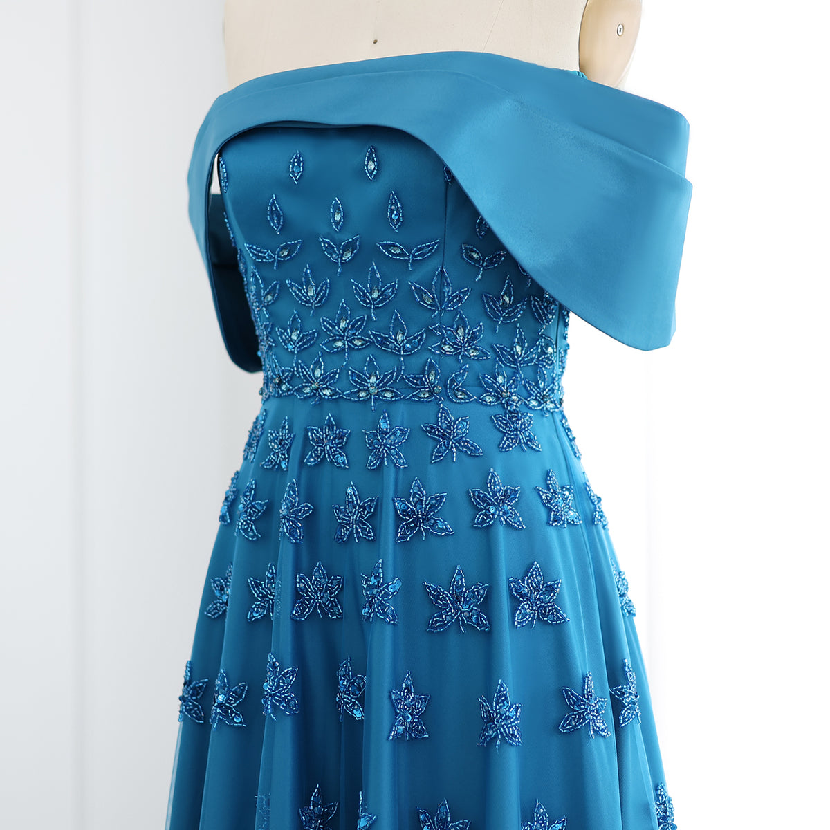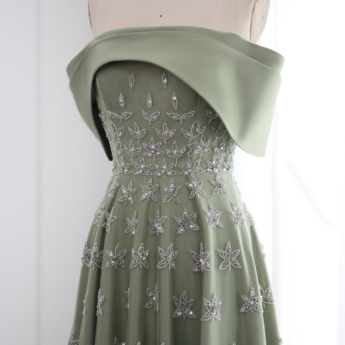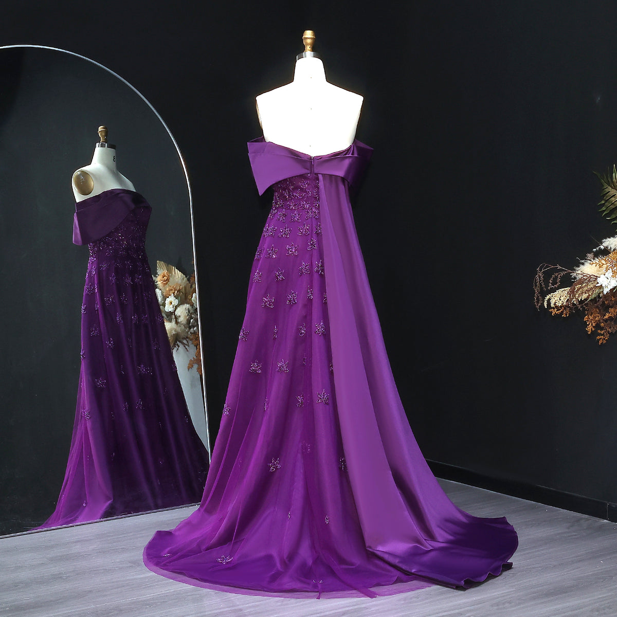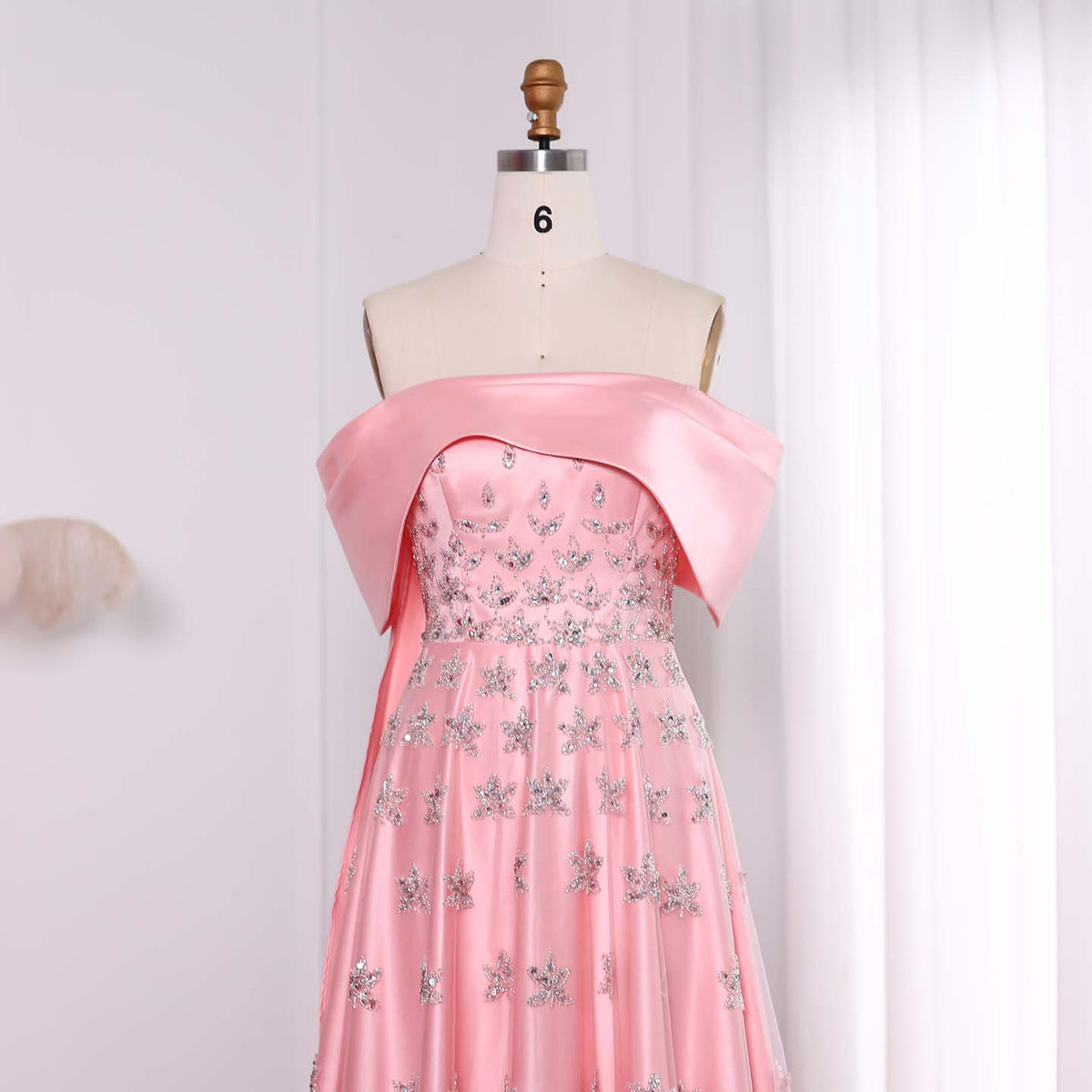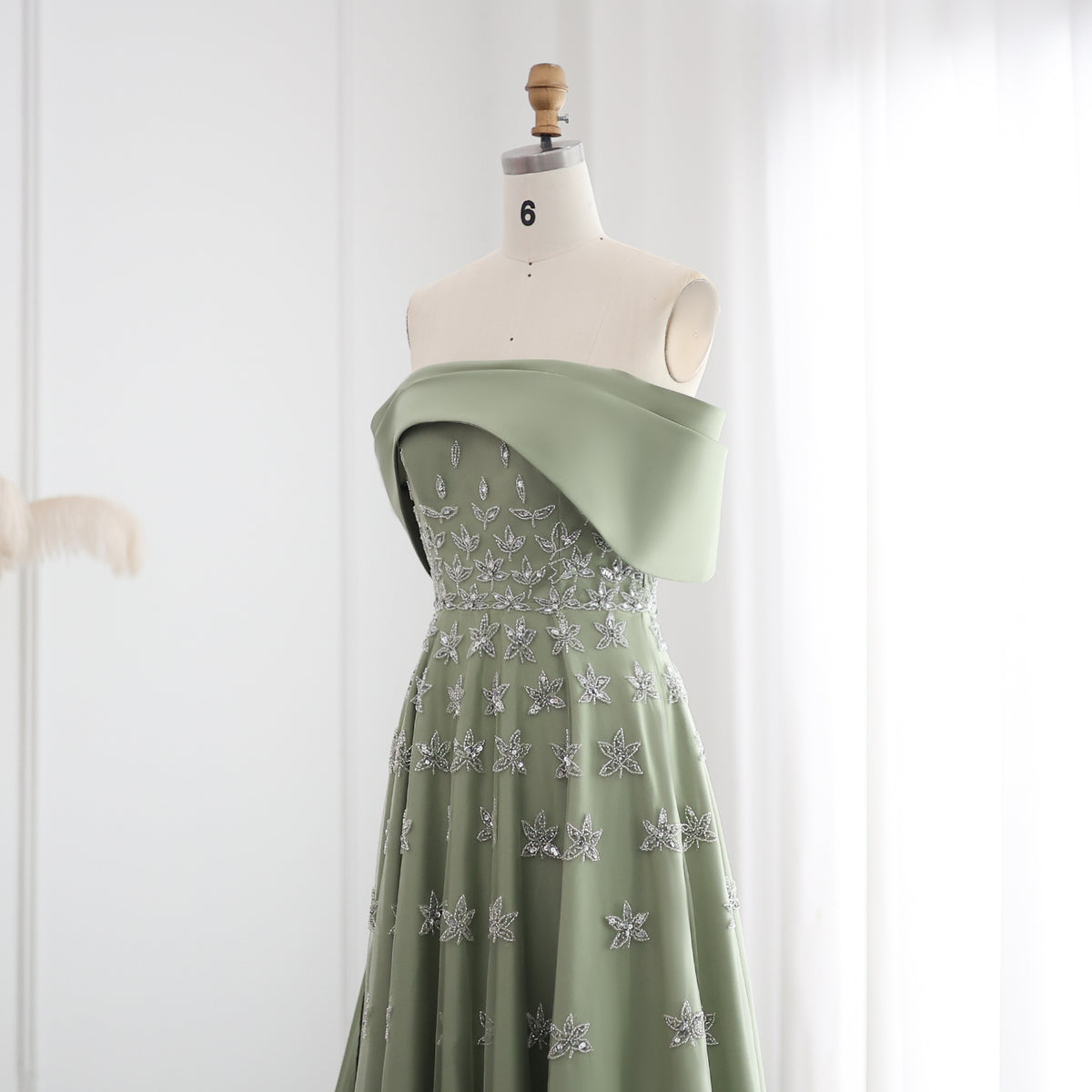Experience the ultimate in luxury with the Sharon Said Arabic Yellow Satin Evening Dress. The elegant off shoulder design is enhanced by a stunning cape train, adding a touch of drama to any occasion. Perfect for weddings, parties, or any special event, this dress is a guaranteed head-turner.