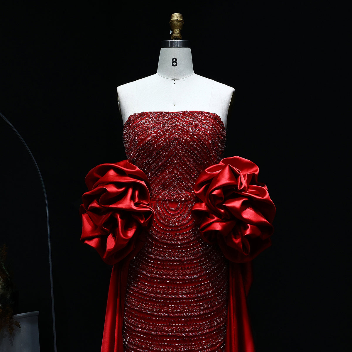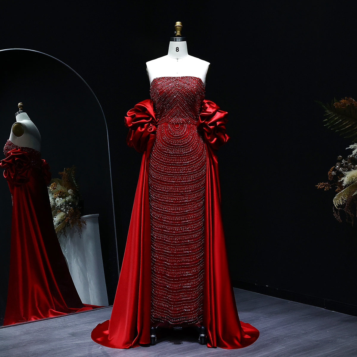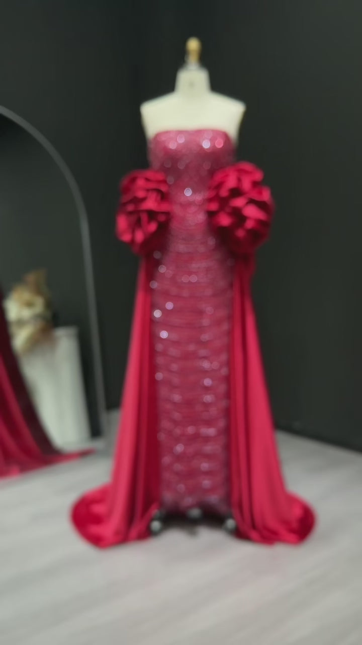 Elevate your style with Sharon Said's Luxury Arabic Dusty Rose Evening Dress. The elegant strapless midi design is complemented by a detachable cape, perfect for any special occasion. Made with high-quality fabric, this dress exudes luxury and sophistication. Perfect for weddings and formal events.