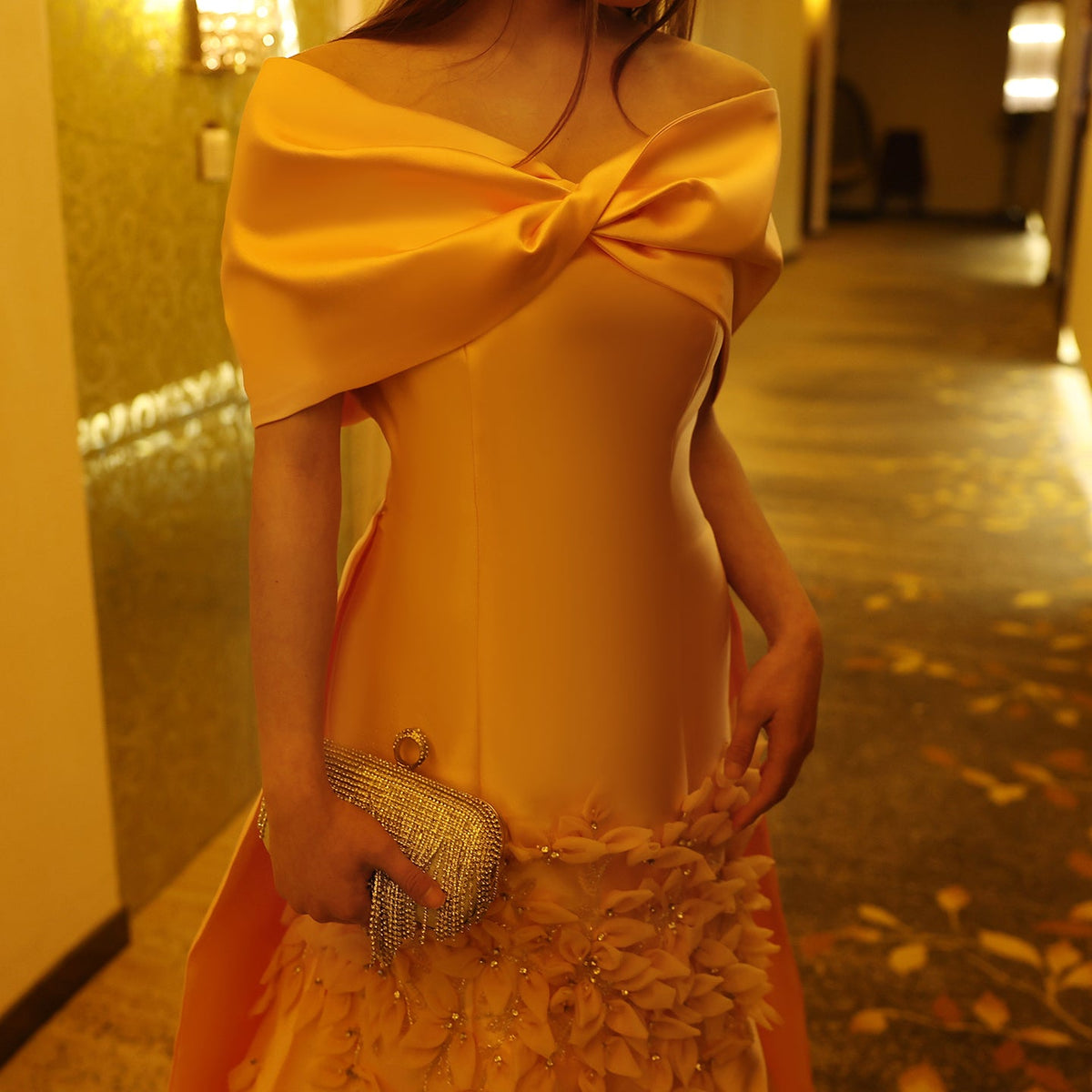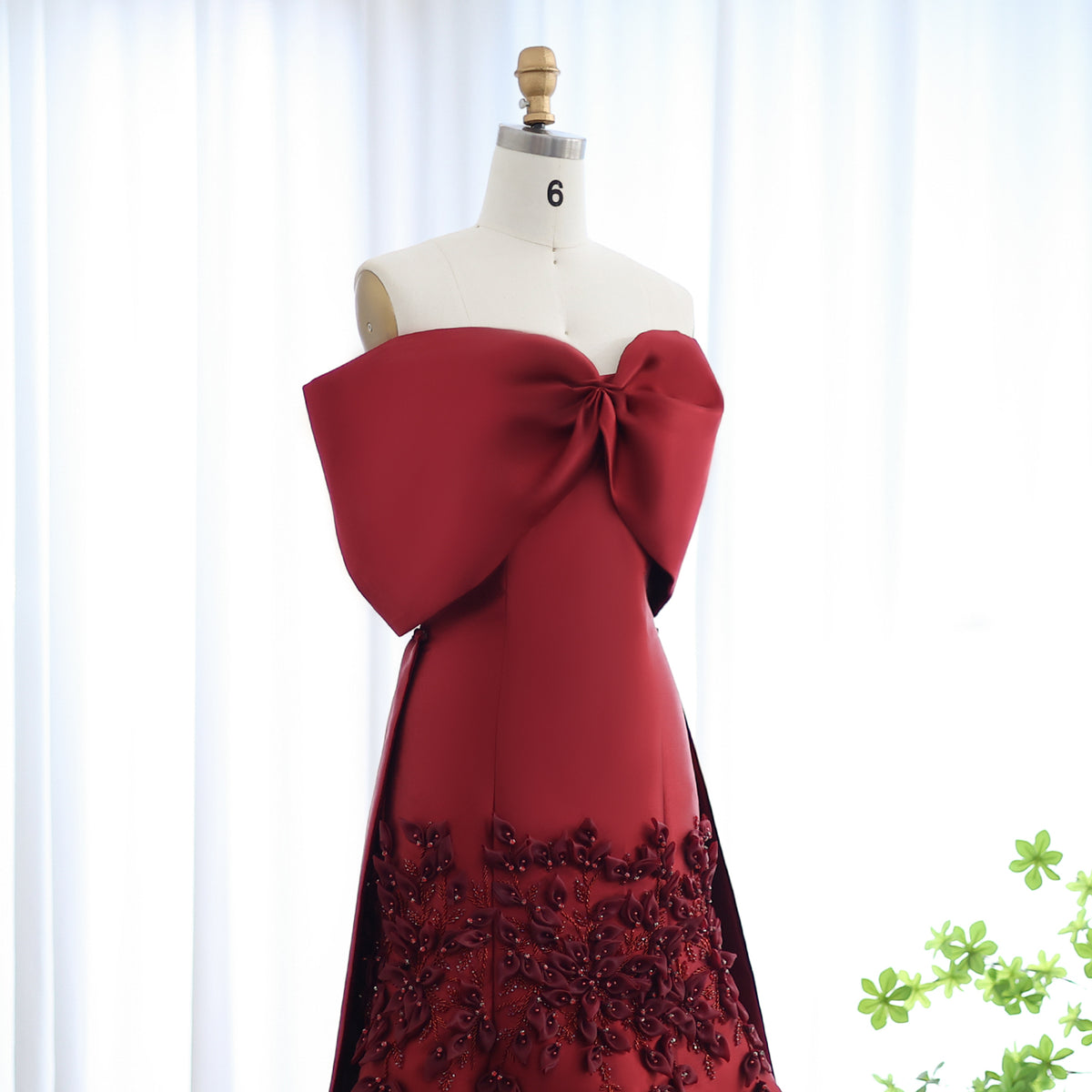 Experience luxury and elegance with Sharon Said's 3D Flowers Blush Pink Satin Mermaid Evening Dress. The off-shoulder design and intricate 3D floral details add a touch of femininity, while the mermaid silhouette creates a flattering look. Perfect for weddings, proms, or any special occasion.