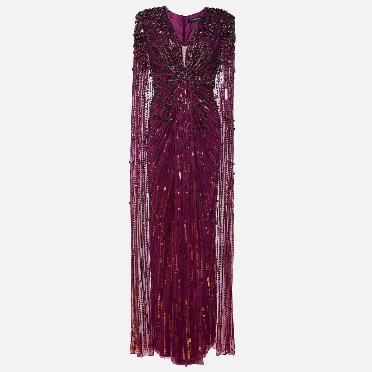 Experience elegance and style in our Sharon Said Luxury Dubai evening dress. The sage green color, fuchsia crystal and gold accents, and attached cape bring sophistication to any formal event. Made for the fashion-conscious woman seeking a unique and stunning look. Elevate your wardrobe with our SS399 design.