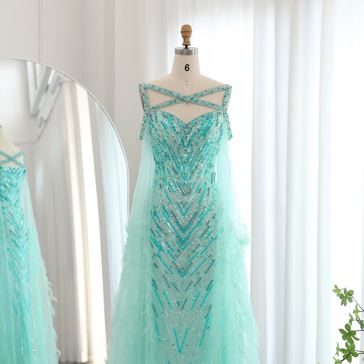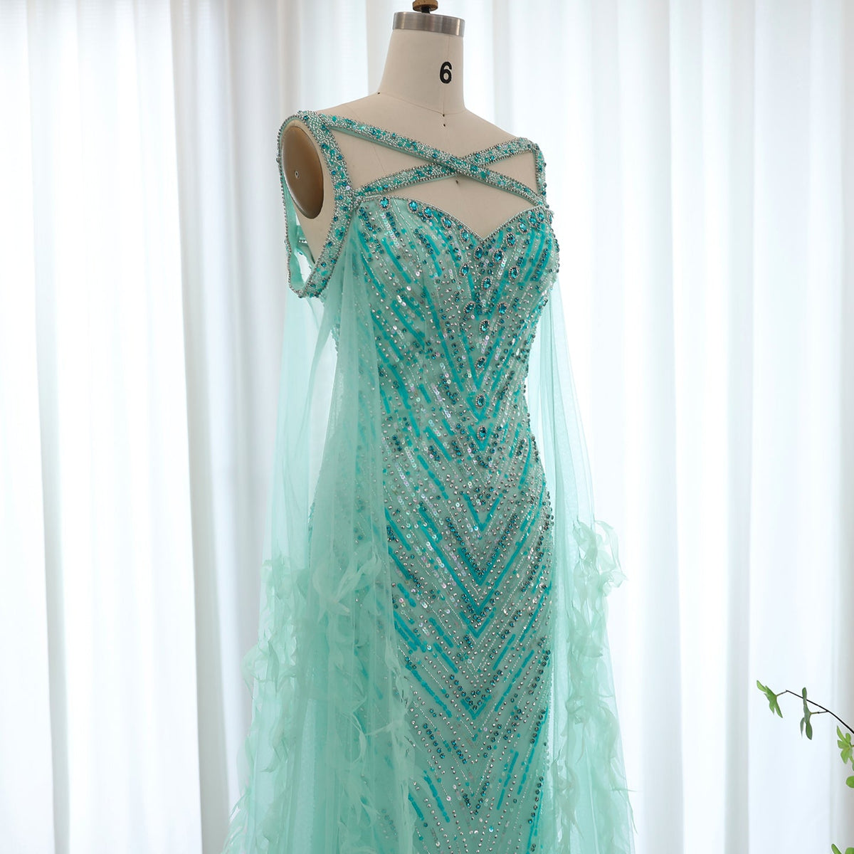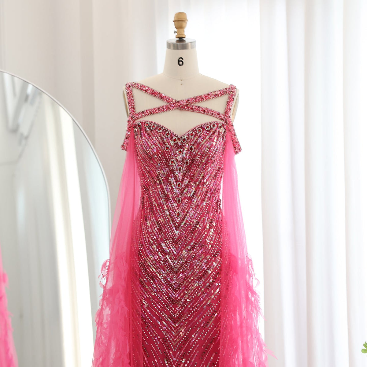 Indulge in luxury with the Sharon Said Arabic Fuchsia Mermaid Dubai Evening Dress. Designed with cape sleeves and crystal detailing, this dress exudes elegance. Perfect for weddings and parties, it will make you feel like a mermaid with its mermaid silhouette. Elevate your style with this stunning dress.