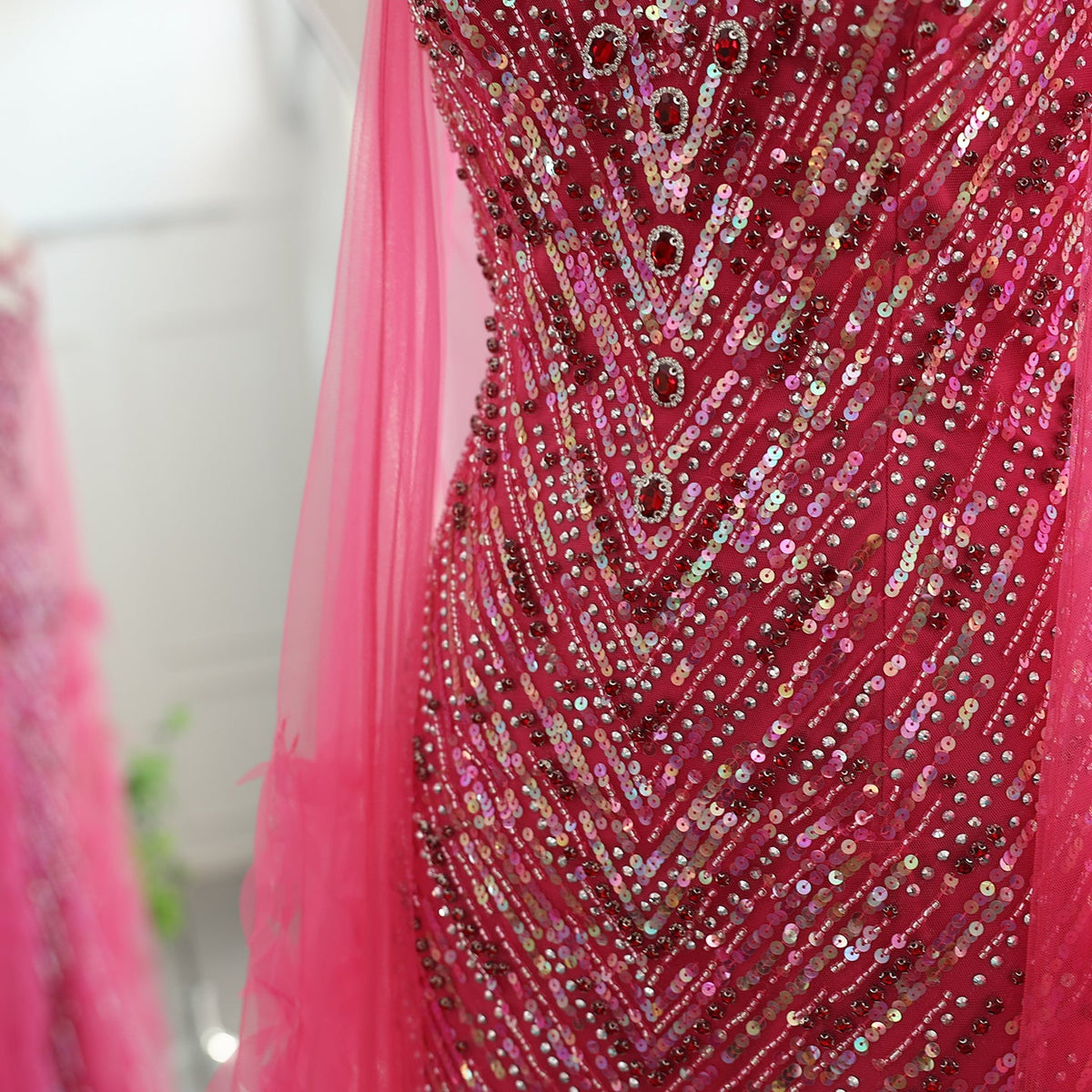 Luxury Crystal Fuchsia Evening Dress with Cape Sleeves SS468